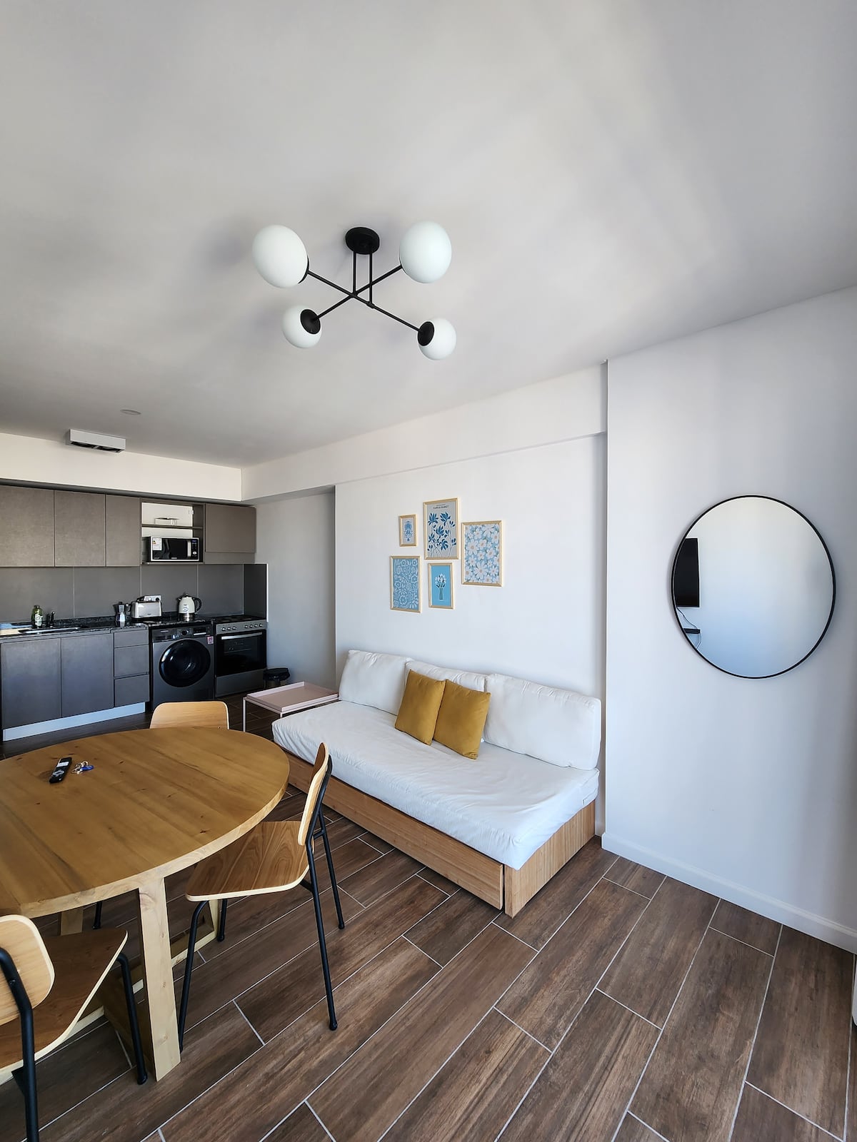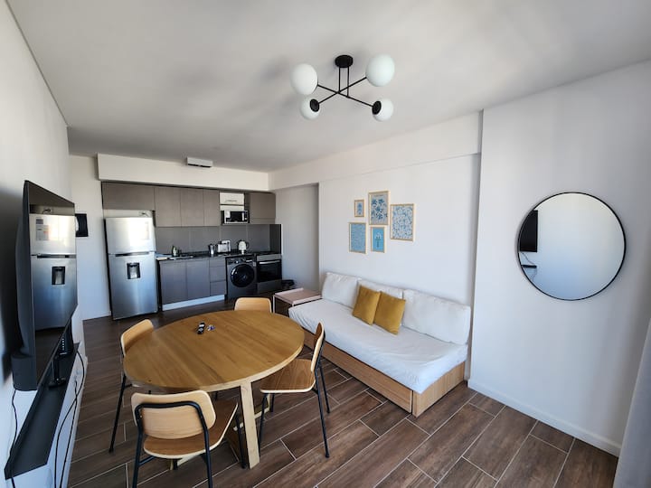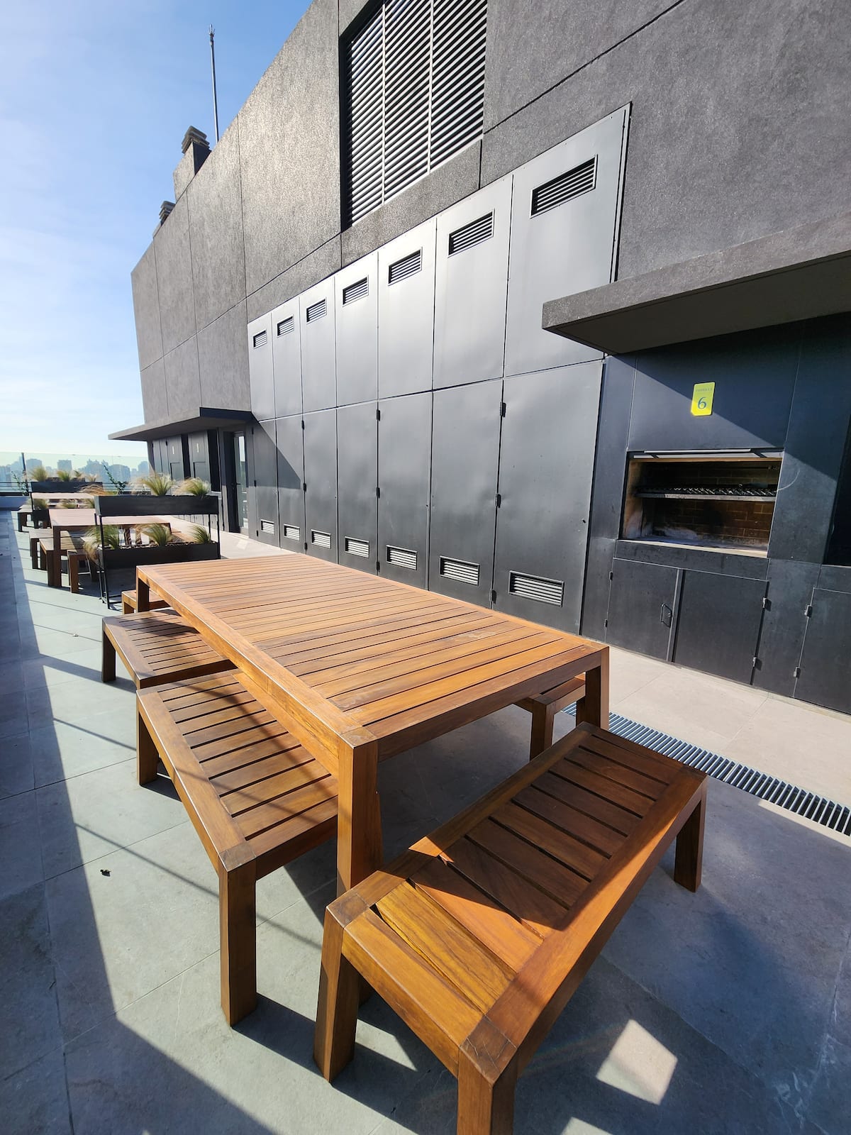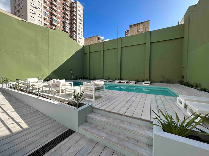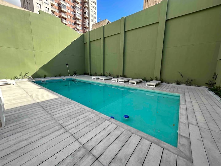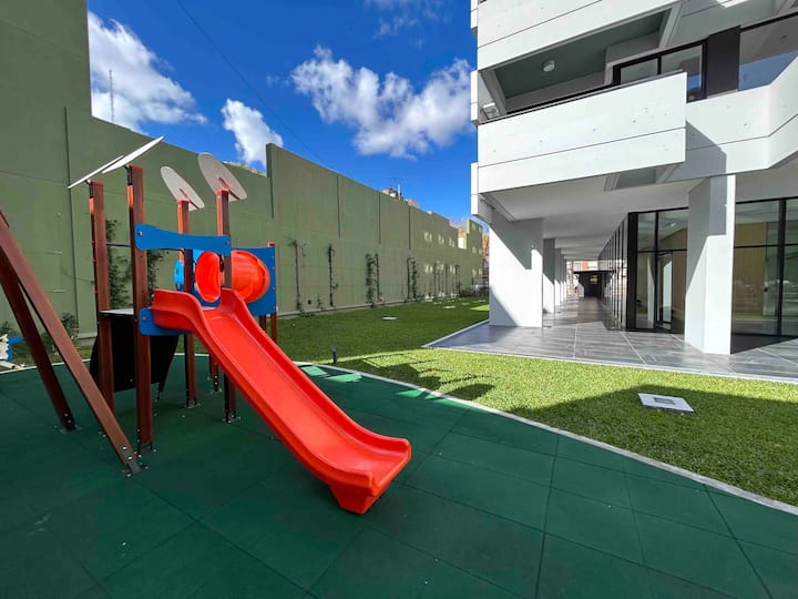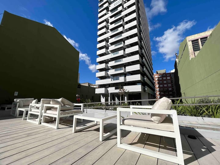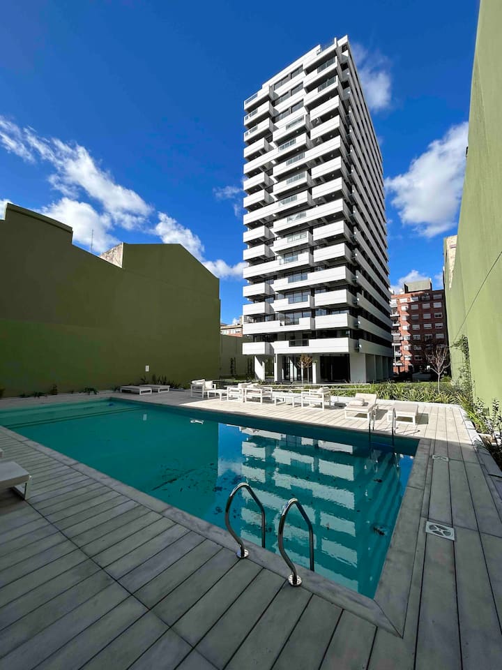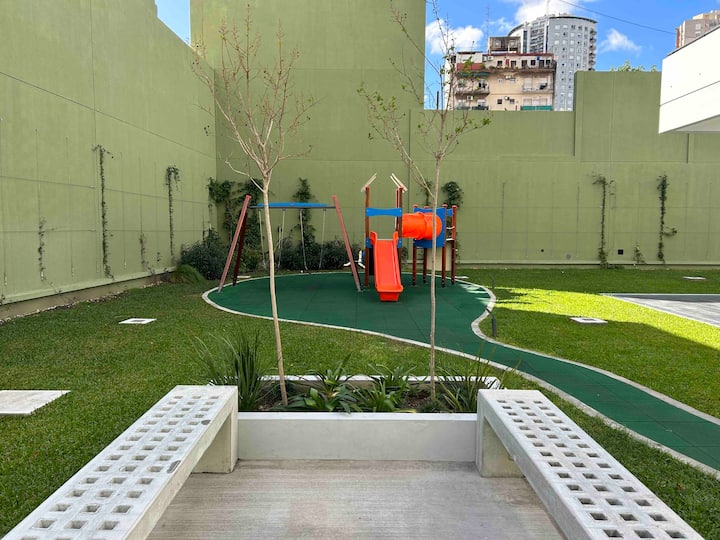 Departamento en San Cristóbal en una torre nueva con seguridad 24 horas. Se ubica a 2 cuadras de la estación Urquiza del Subte. El edificio cuenta con pileta, gimnasio y espacio de juego para niños.