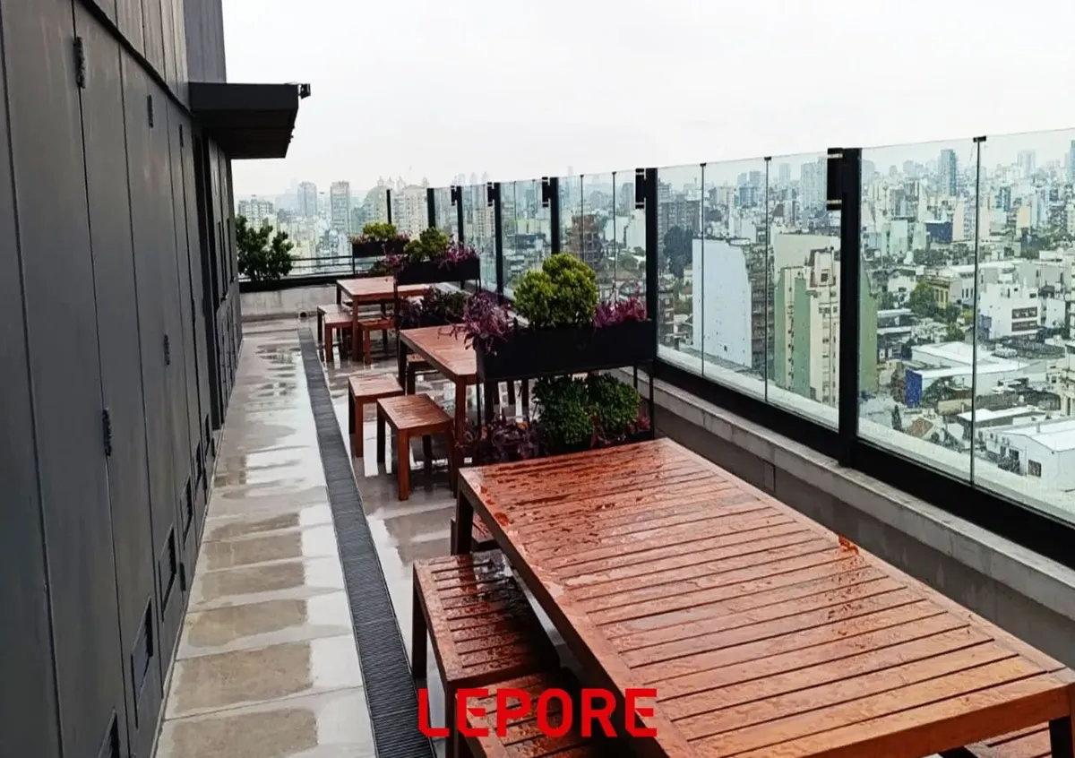 Departamento de 2 ambientes en alquiler en San Cristóbal, en un edificio con amenities. La unidad cuenta con living-comedor, cocina integrada, dormitorio con placard, baño completo y balcón al frente. El edificio dispone de piscina, jardín con plaza de juegos, terraza con vista panorámica y sector parrillas.