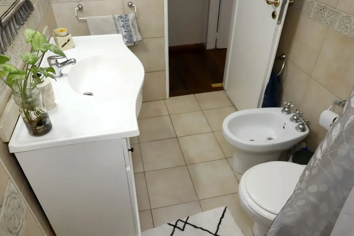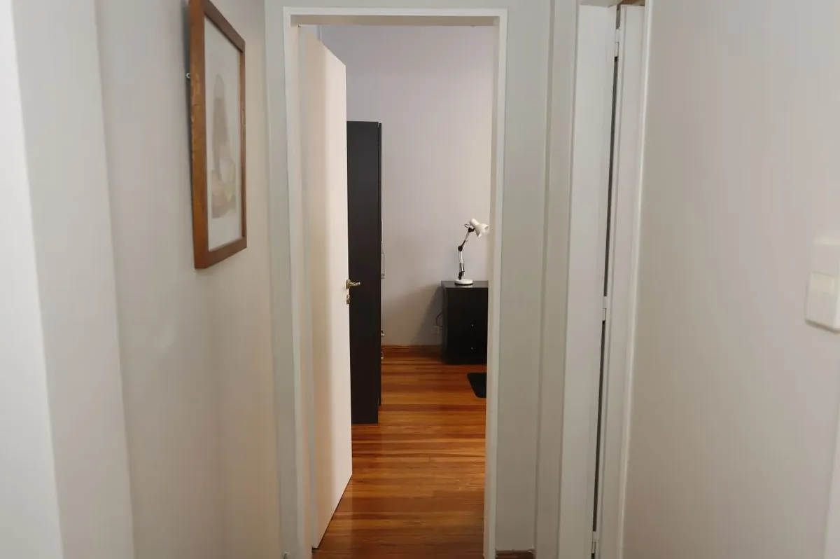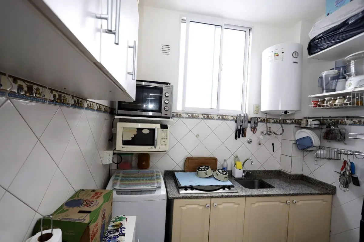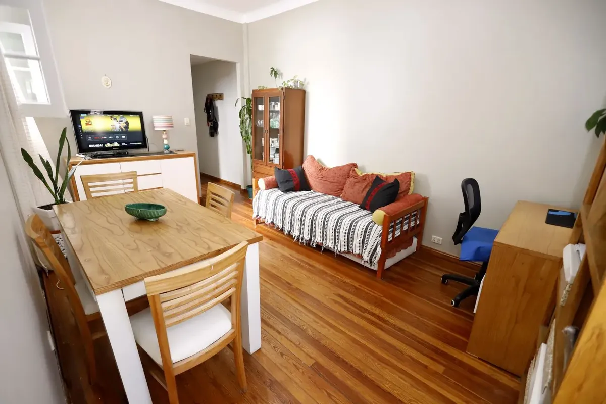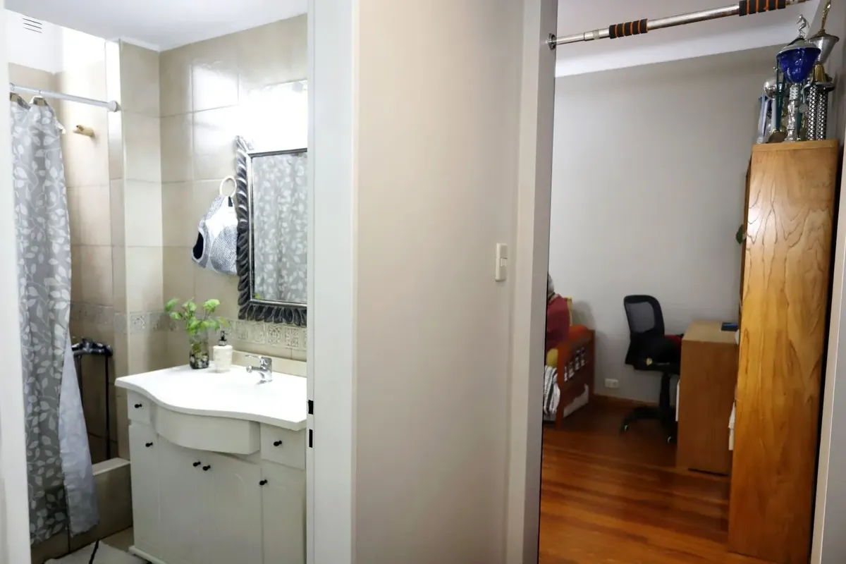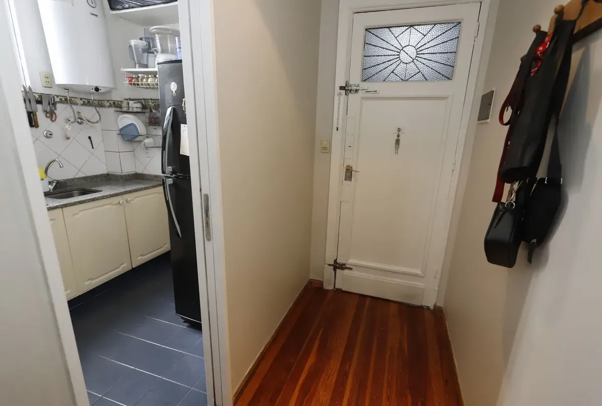 Квартира в San Cristóbal на 4-м этаже, окна во двор (contrafrente). Планировка «2 ambientes»: жилая комната, отдельная кухня, спальня и 1 ванная; без мебели, в состоянии после обновления/готова к заселению. Отдельная кухня с встроенной зоной для стирки (lavadero integrado). В здании есть лифт; коммунальные платежи здания в октябре составляют $64.000.