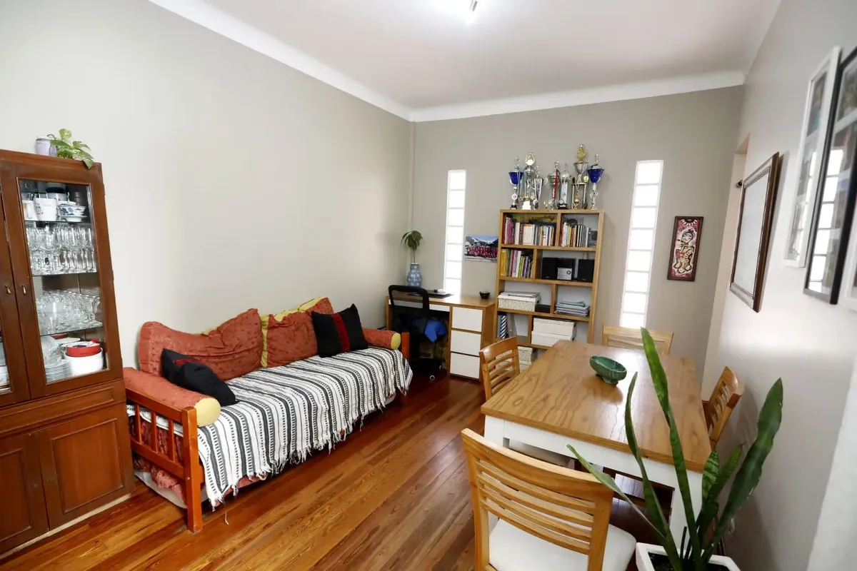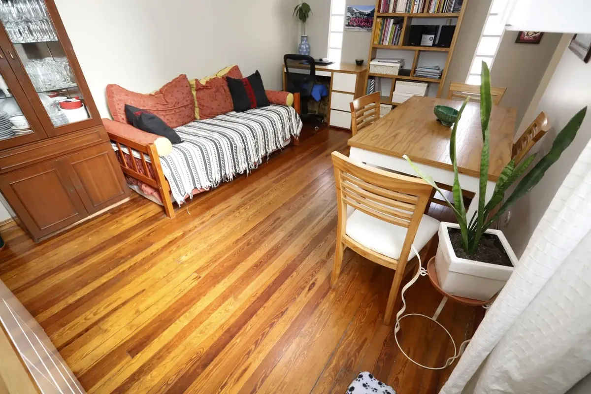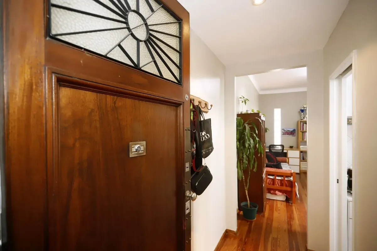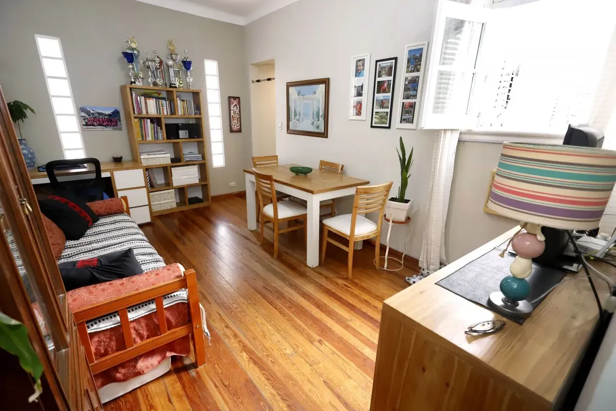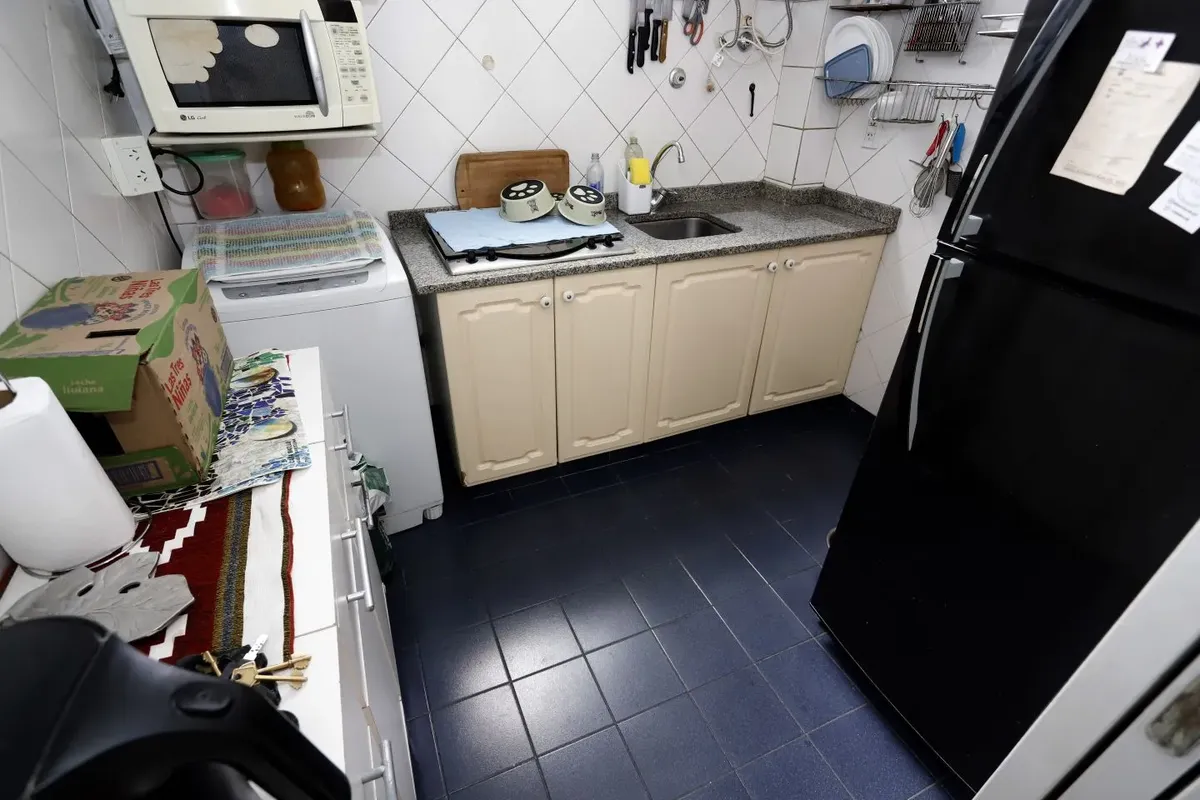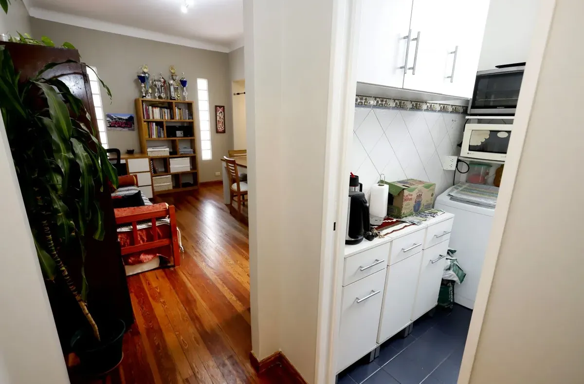 Квартира в San Cristóbal на 4-м этаже, окна во двор (contrafrente). Планировка «2 ambientes»: жилая комната, отдельная кухня, спальня и 1 ванная; без мебели, в состоянии после обновления/готова к заселению. Отдельная кухня с встроенной зоной для стирки (lavadero integrado). В здании есть лифт; коммунальные платежи здания в октябре составляют $64.000.