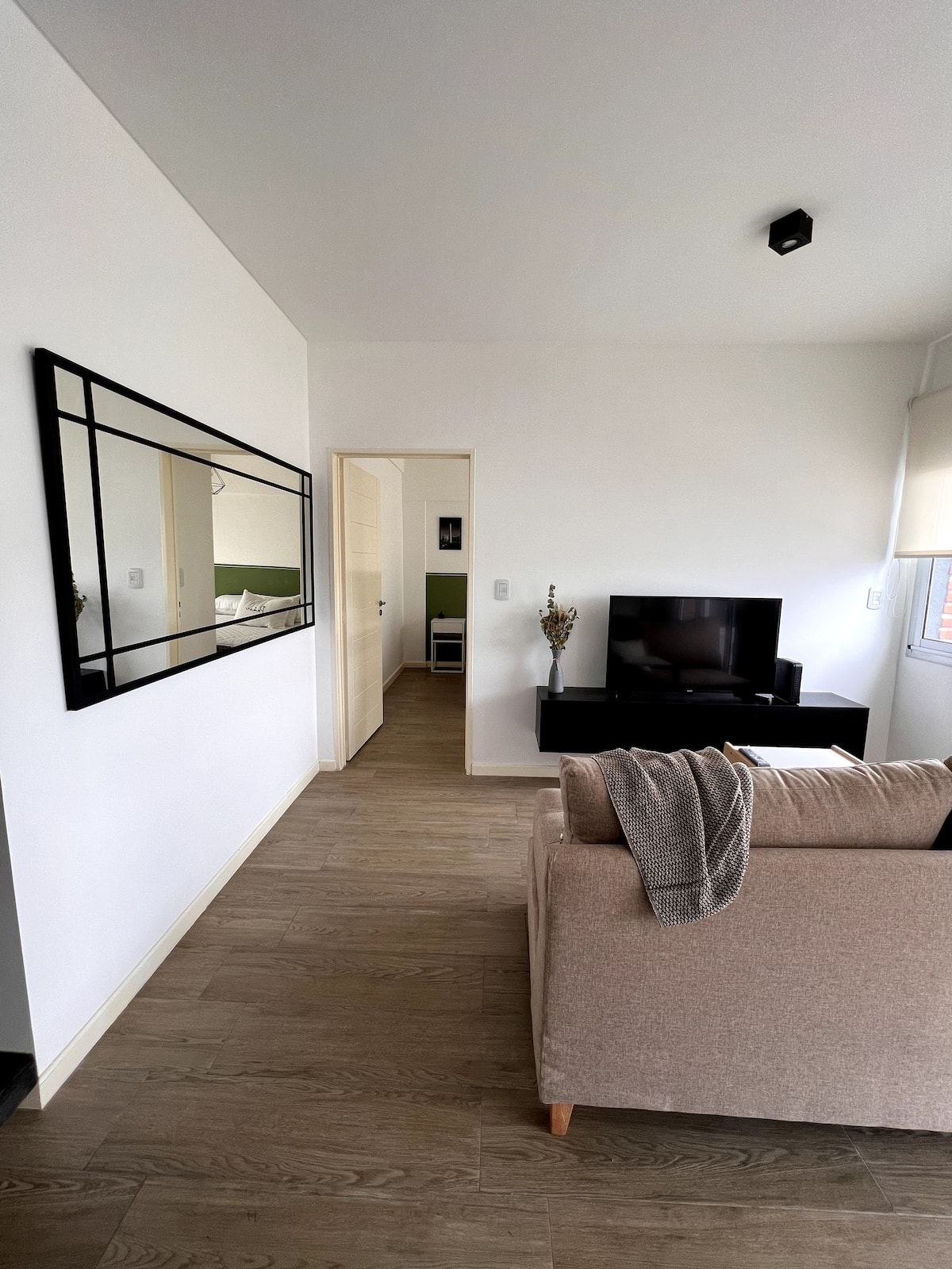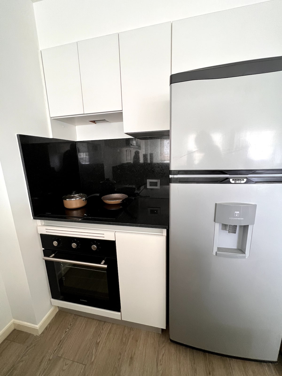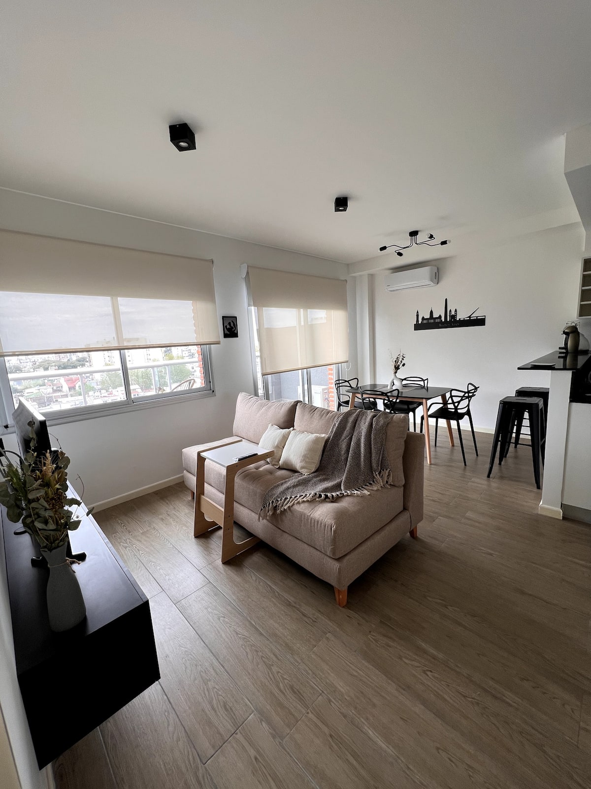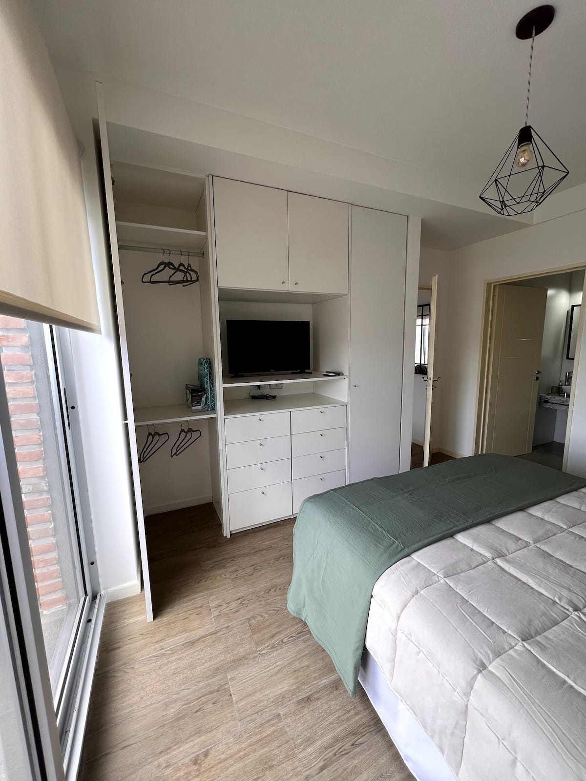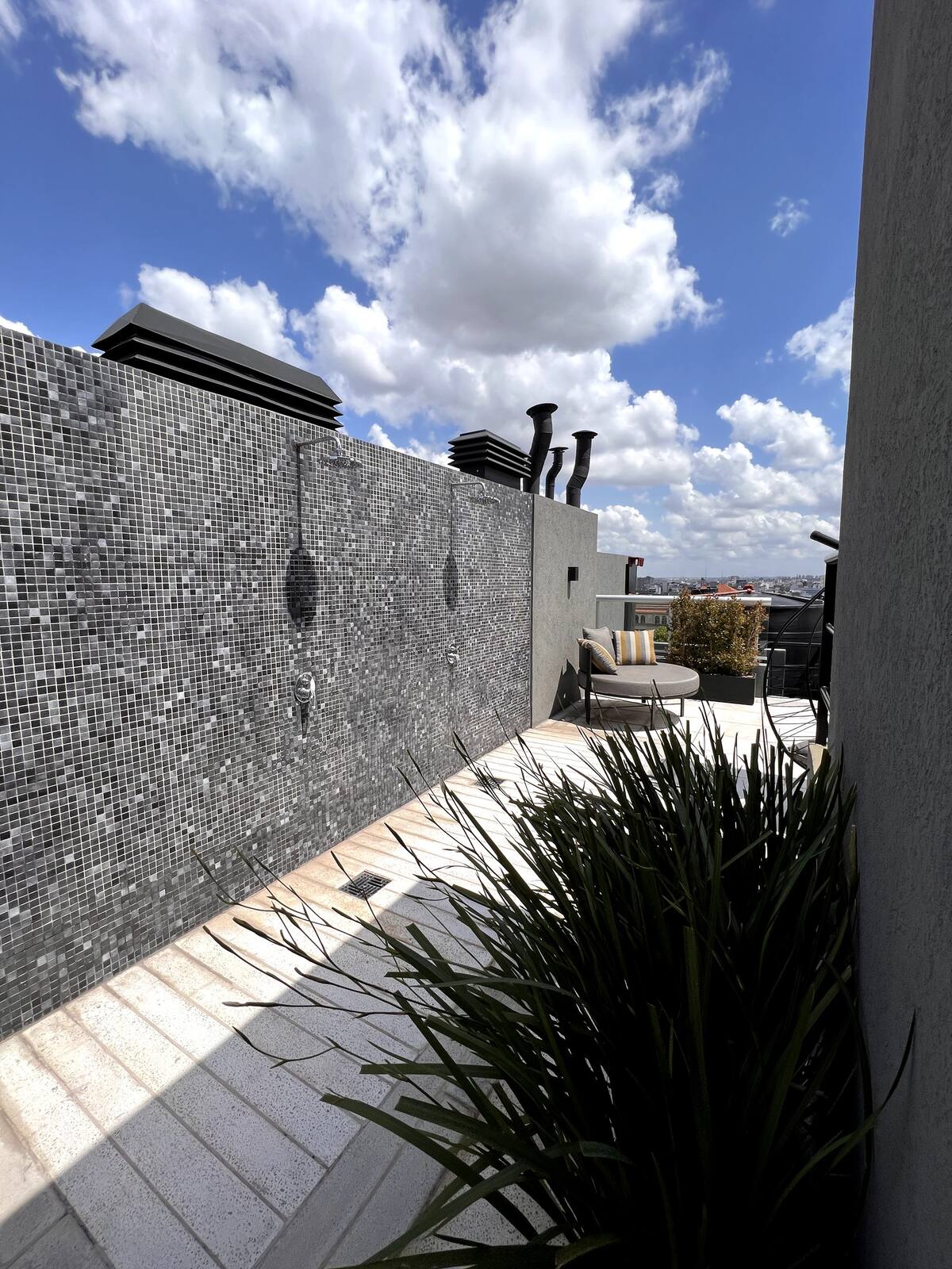 Квартира в San Cristóbal с мебелью и оборудованием: 1 комната с кроватью queen-size и ванной комнатой в suite, также есть зона кухни-гостиной-столовой и туалетный столик. Площадь не указана, в описании фигурирует большой балкон. В квартире есть Wi‑Fi, микроволновая печь, электрический гриль/духовка (hopper), капсульная кофемашина и тостер, а также постельное бельё и полотенца; утюг и гладильная доска, фен, сейф. В здании новая часть на первом уровне, есть лифт; прачечная в полуподвальном помещен