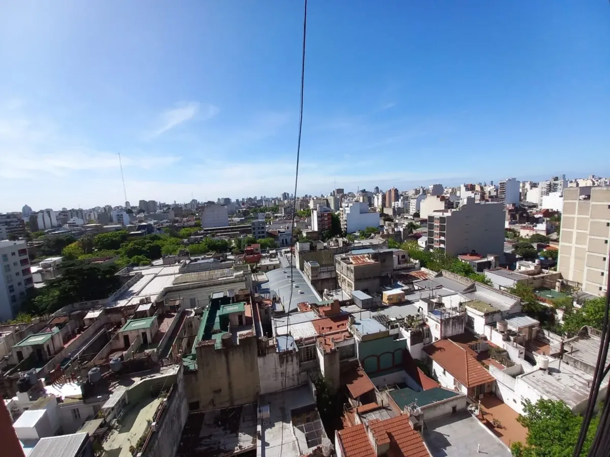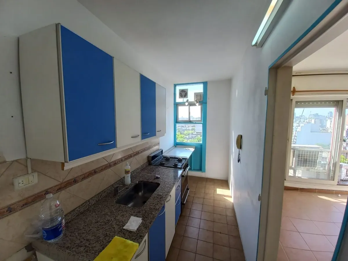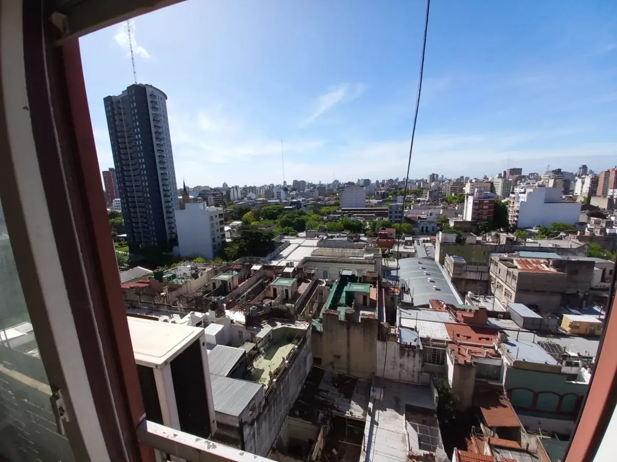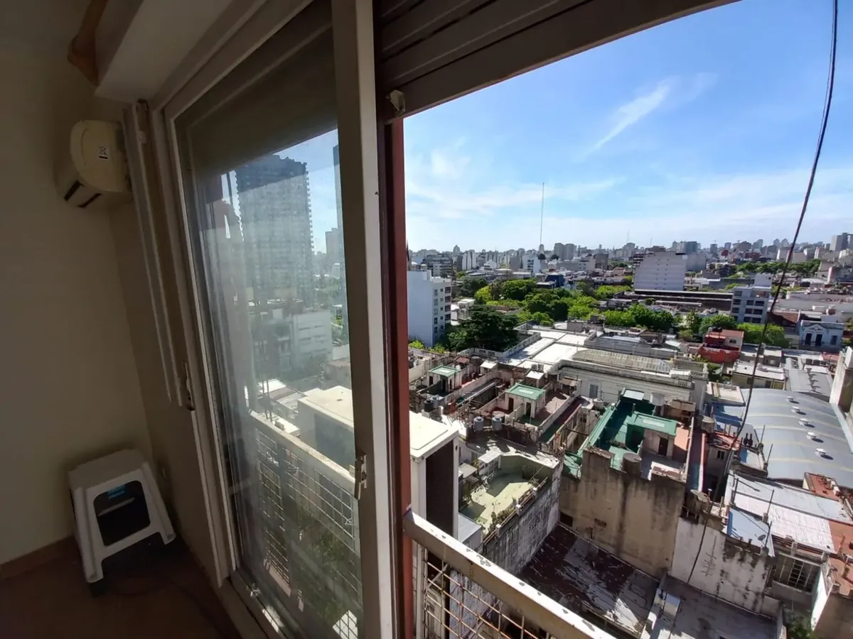Departamento monoambiente en San Cristóbal, en piso alto. Cuenta con baño completo con espacio y conexión para lavarropas. Tiene cocina completa con bajo y alacena mesada, living-comedor divisible con aire acondicionado. Requiere caución.