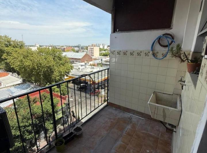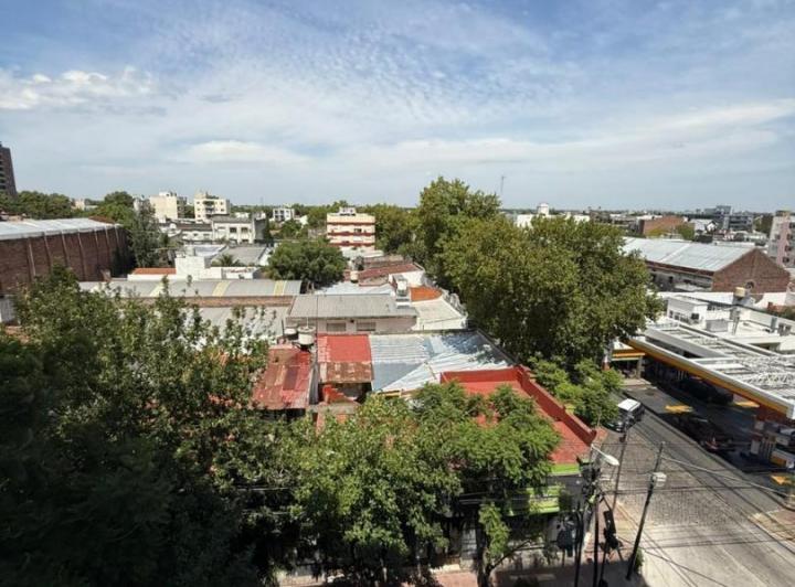 Departamento de 2 ambientes en alquiler, ubicado en Perón al 400, con vista desde un 5º piso y balcón al frente. Cuenta con living comedor con salida a balcón, cocina independiente con ventana, mesada, bajo mesada y alacena. Dispone de 1 dormitorio con placard, baño completo con ducha y placard adicional en el pasillo. Tiene aire acondicionado frío/calor, calefón y estufas nuevas. Recién pintado.