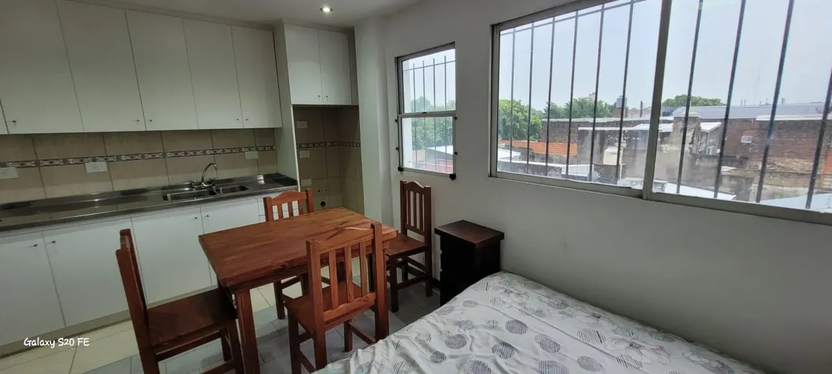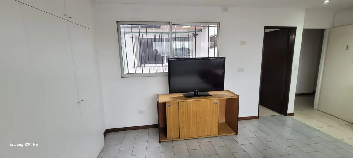 Temporary rental: one-room apartment with 28 m² in San Fernando. Semi-furnished with a 2-person bed, built-in wardrobe and a split air-conditioning unit (heating and cooling), plus a table with 4 chairs. The rental does not include a fridge, TV or washing machine. The building has monitored surveillance, security 24 hours a day, a doorman, and an elevator. Pets are not accepted.