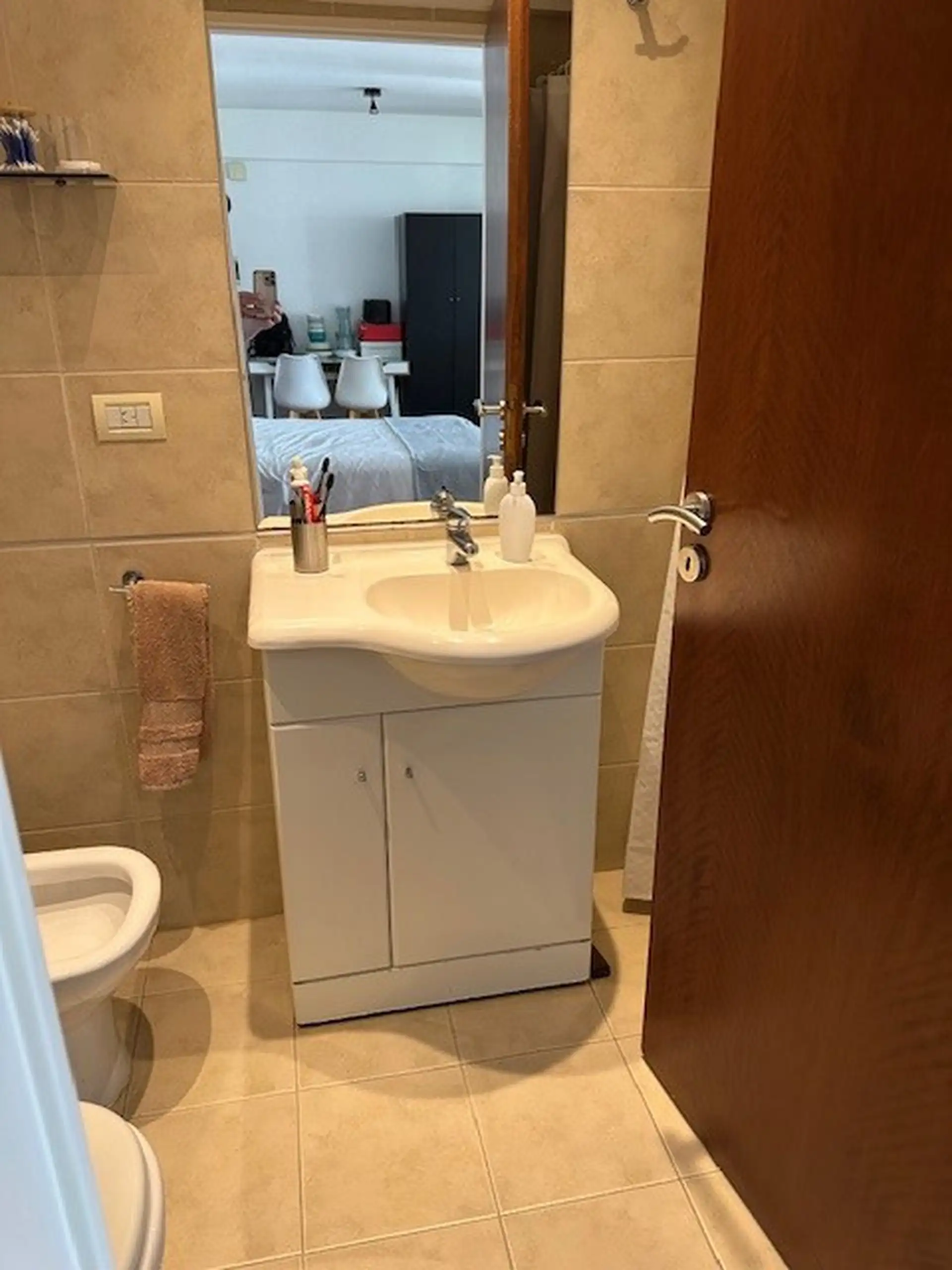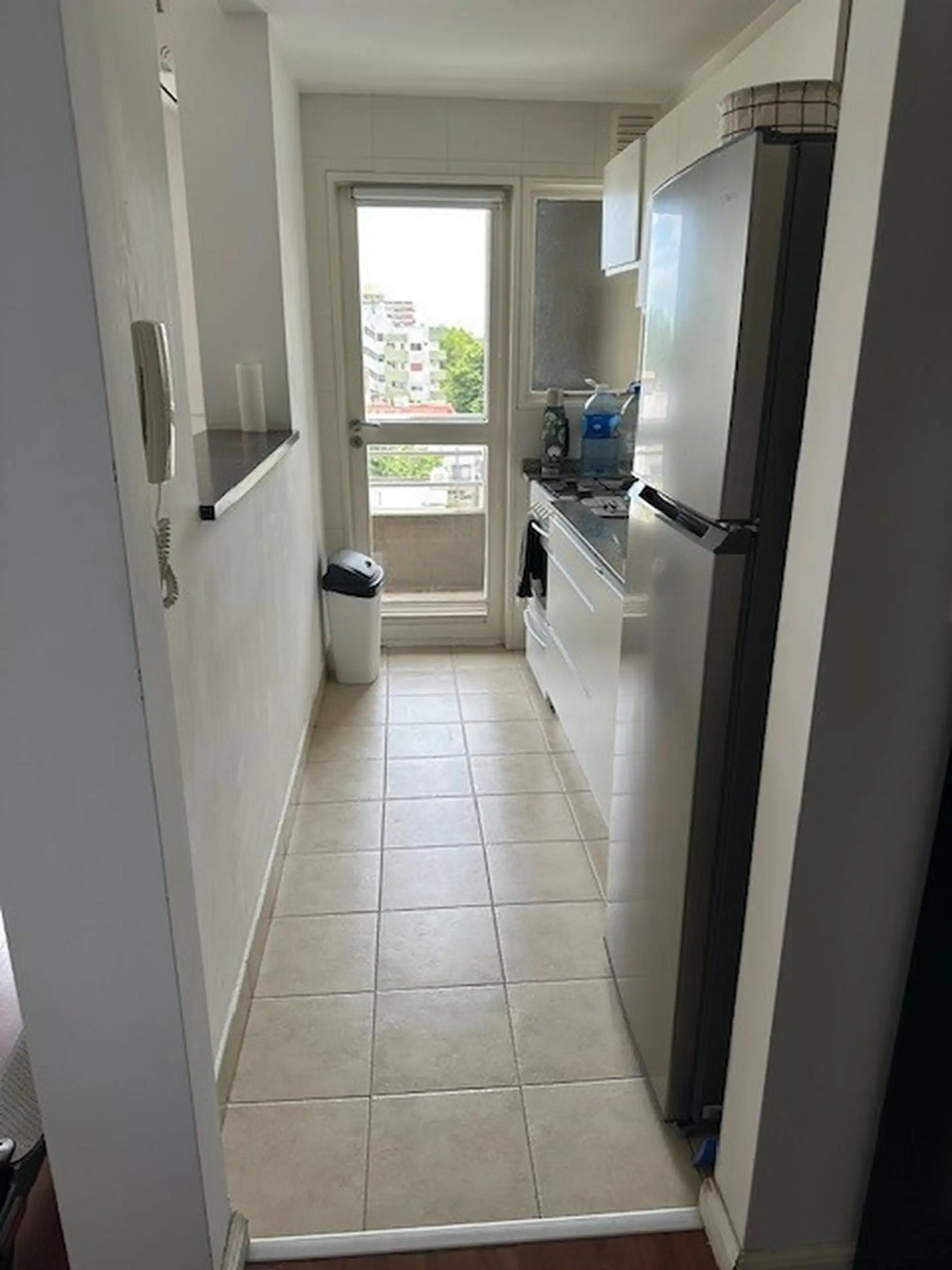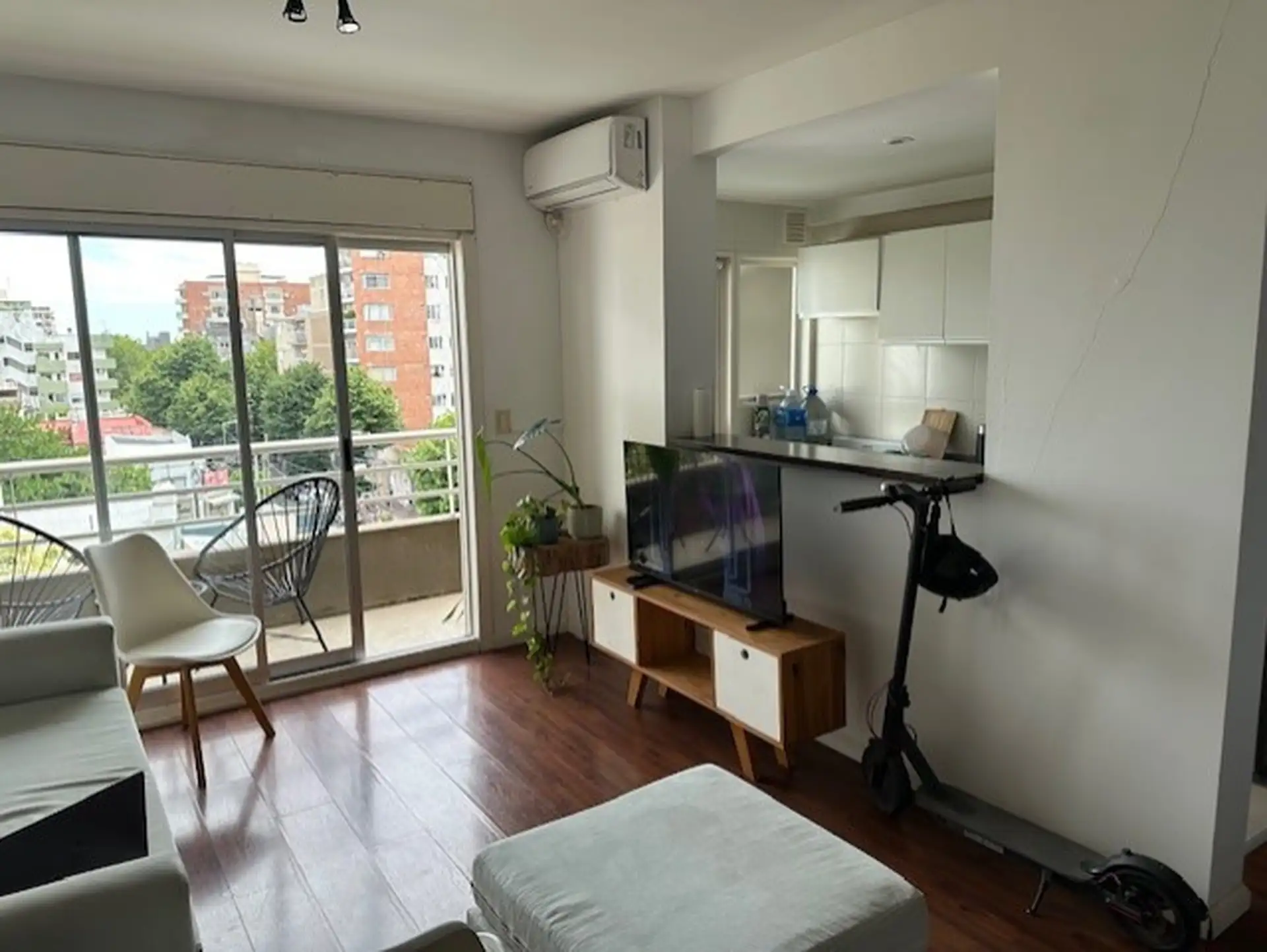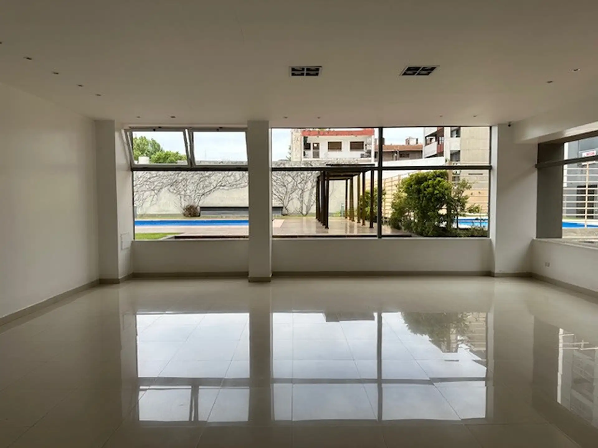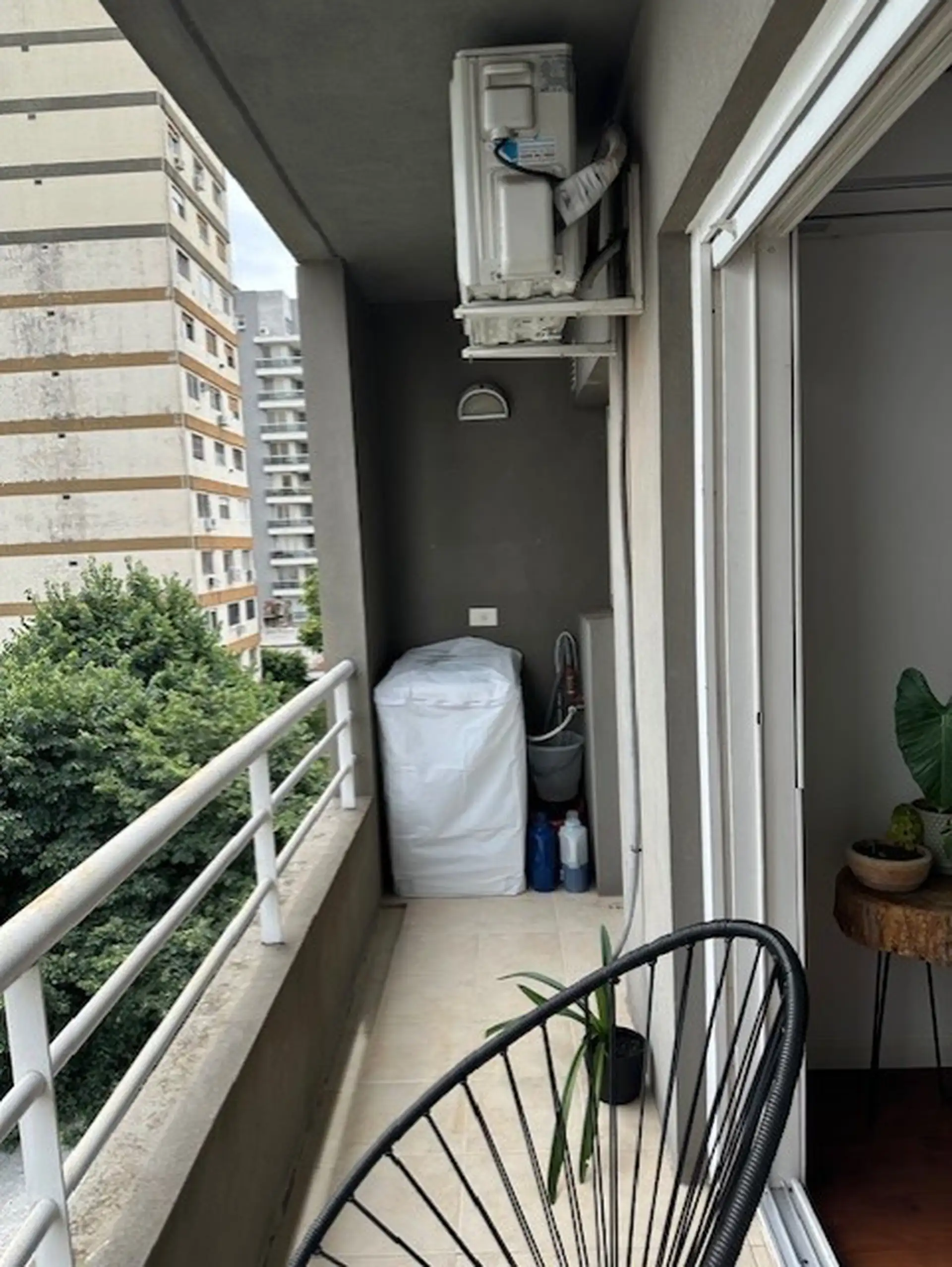 Departamento monoambiente en alquiler en San Fernando, con piso de madera y balcón. Cuenta con calefacción por loza radiante central, agua caliente por calefón y lavadero separado. Tiene cocina con bajo mesada y alacena, barra desayunadora que separa el ambiente, y baño completo con bañera y vanitory. El edificio ofrece pileta de natación, seguridad 24 horas y hall de recepción. Se desocupa a fines de diciembre.