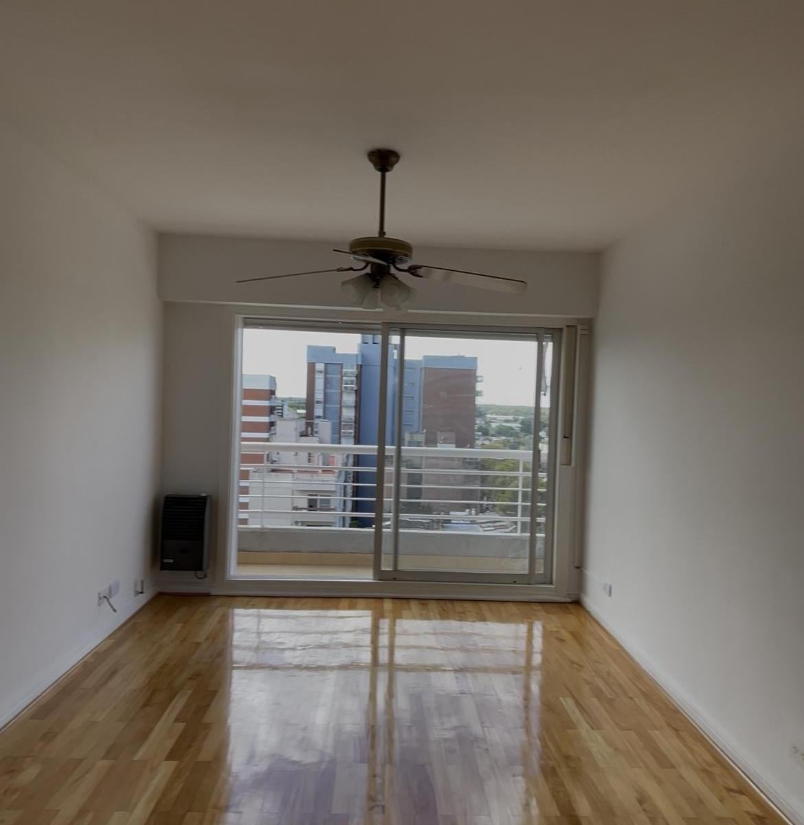 Departamento de 2 ambientes en el piso 10, con vista abierta al río y a la ciudad. Cuenta con living-comedor con piso de parquet restaurado, ventilador de techo y salida al balcón; cocina separada con mesada de granito y conexión para lavarropas, con heladera y cocina nueva; dormitorio con placard a medida y ventilador de techo. Incluye baño completo con bañadera y bidet, balcón y cochera descubierta. El edificio tiene acceso a terraza común con parrilla.