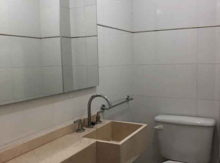 Departamento de 2 ambientes en alquiler en San Fernando, sobre la calle Perón al 600, con vista desde el 4º piso. Cuenta con living comedor con piso de porcelanato y cocina incorporada con mesada y barra desayunadora de mármol, bajo mesada y alacenas, con doble bacha de acero inoxidable. Incluye toilette totalmente azulejado, dormitorio con piso de porcelanato y vestidor con interiores, y baño completo en suite con vanitory. Dispone de balcón, terraza propia y baulera.