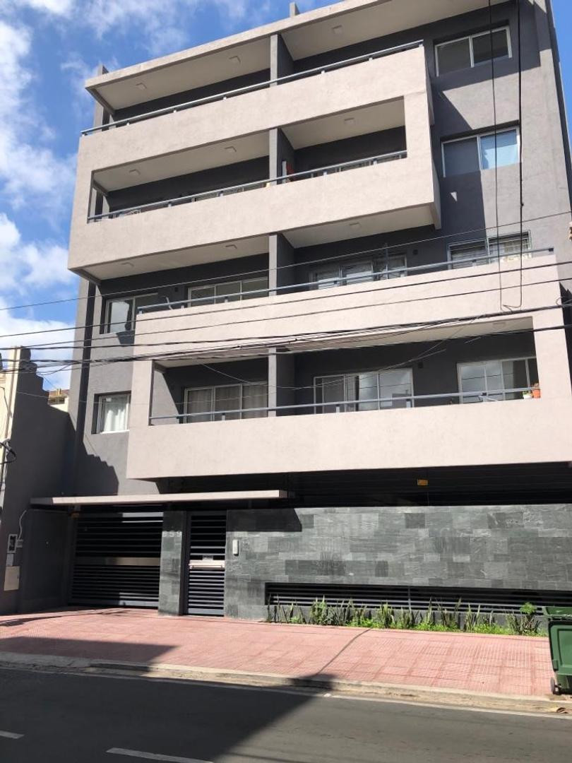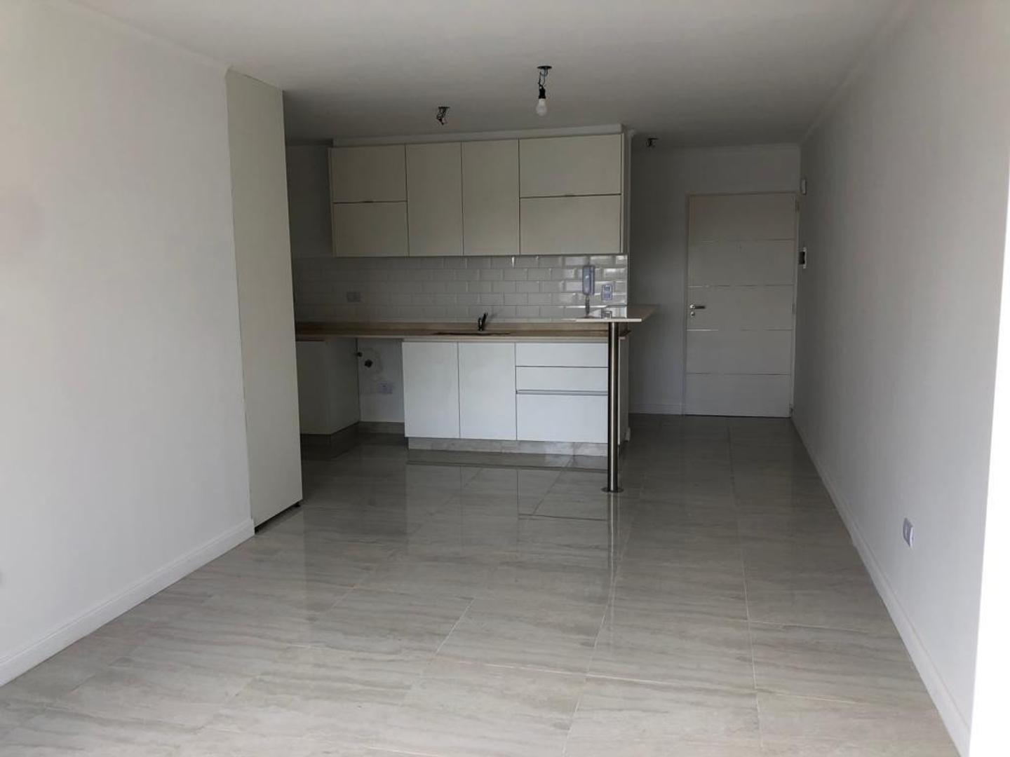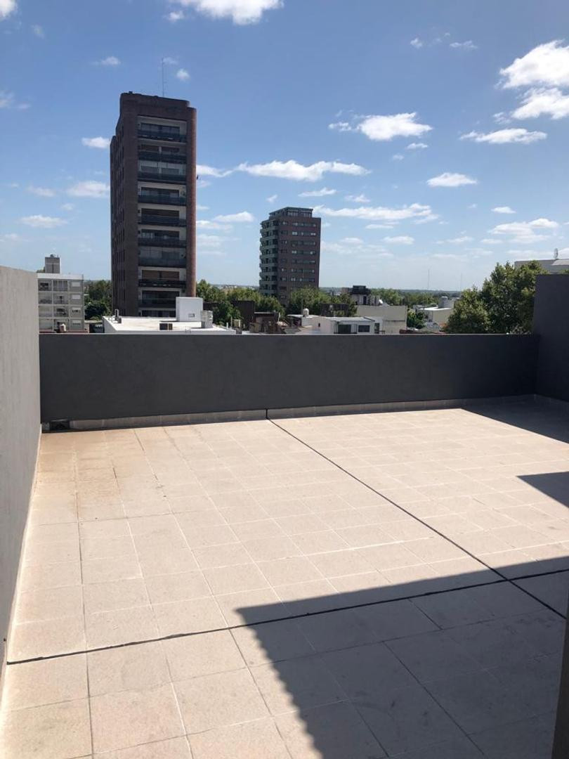 Departamento de 2 ambientes en alquiler en San Fernando, sobre la calle Perón al 600, con vista desde el 4º piso. Cuenta con living comedor con piso de porcelanato y cocina incorporada equipada con mesada, barra desayunadora de mármol, bajo mesada, alacenas y doble bacha de acero inoxidable. Incluye toilette azulejado, dormitorio con piso de porcelanato, vestidor con interiores y baño completo en suite con vanitory. Dispone de balcón, terraza propia y baulera.