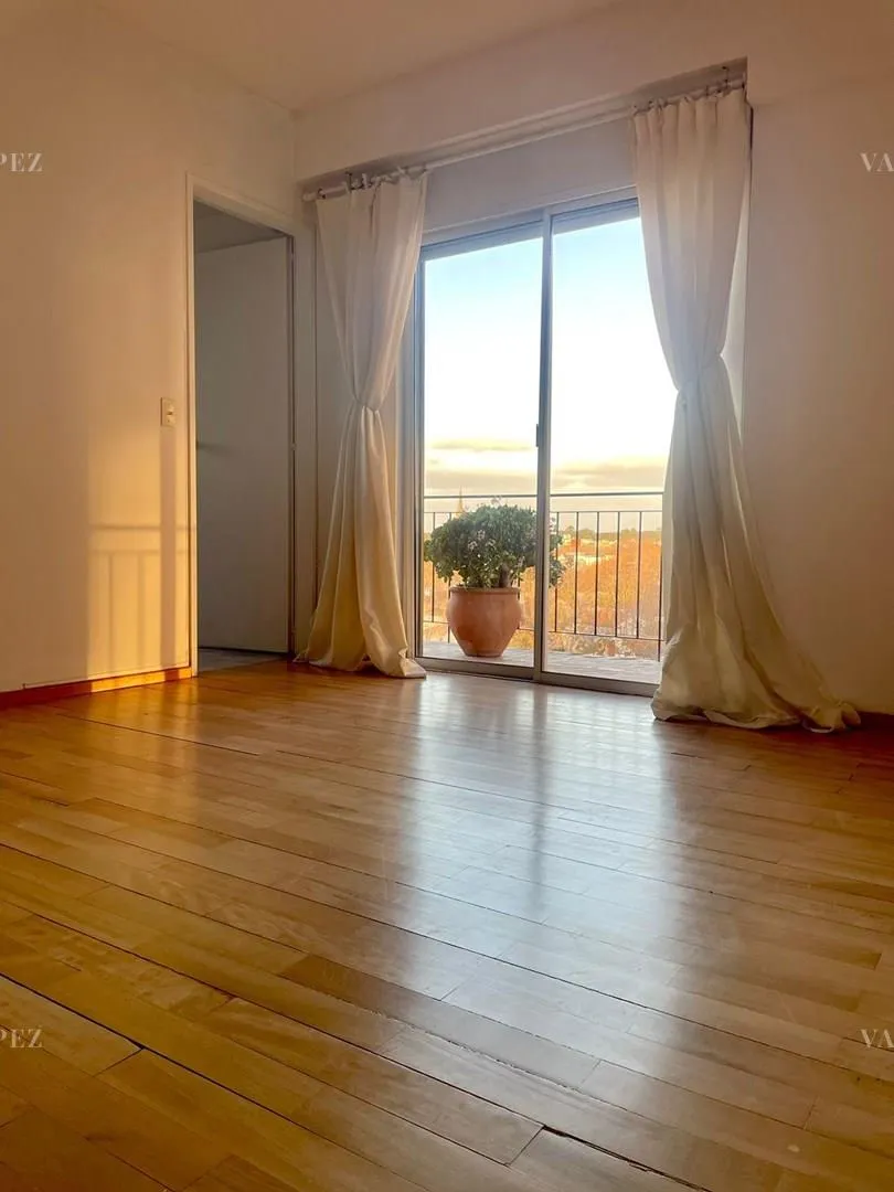 Departamento de 2 ambientes de 57 m² en el 9° piso, con vista al Río de la Plata. Piso flotante en todos los ambientes y placards de guardado. Cocina con calefón y espacio para instalar lavarropas y heladera grande; calefacción por tiro balanceado y living con ventilador. Disponible a partir del 1° de mayo de 2026; expensas de $150.000 aprox. e incluyen AYSA. Sin cochera, con alquiler ajustable trimestralmente por ICL y contrato anual.