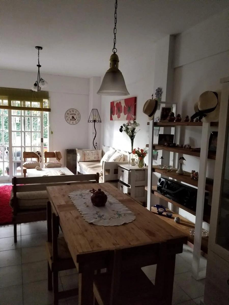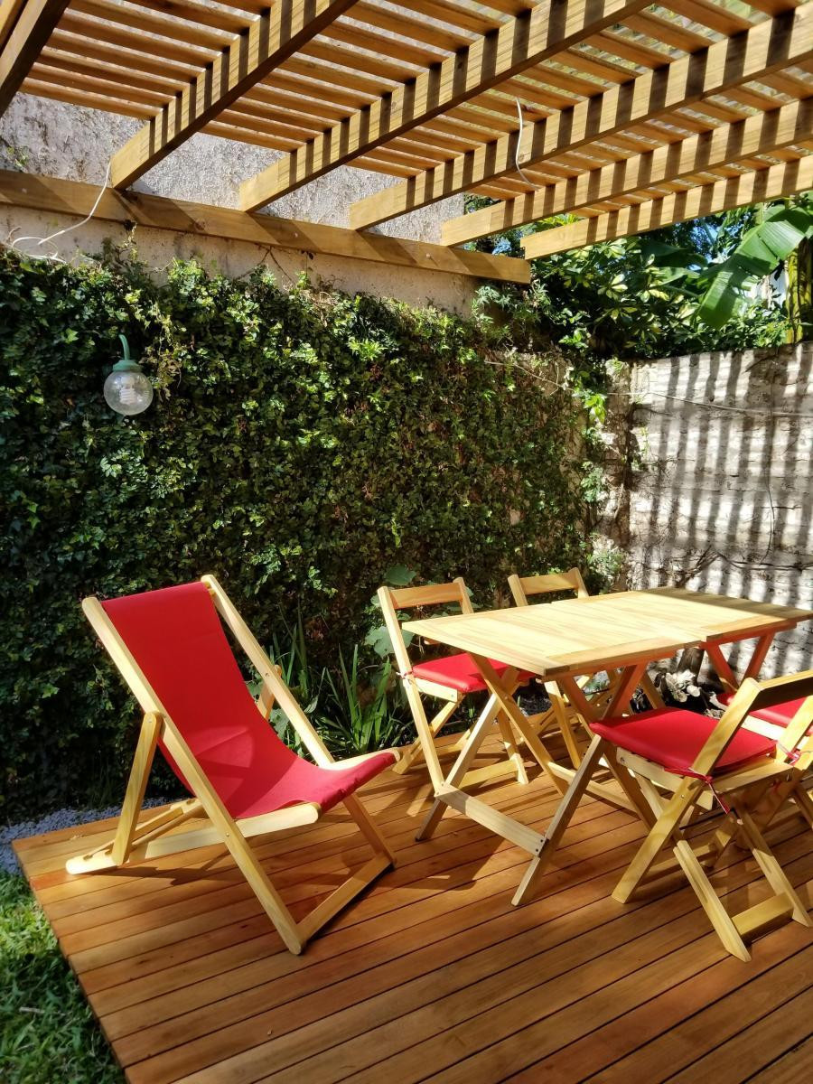 Departamento amueblado en San Isidro con 1 dormitorio. Cuenta con living-comedor con salida directa al jardín privado, y un espacio exterior con deck de madera, mesa y sillas, reposeras y pérgola. La cocina está totalmente equipada y el departamento se alquila con el mobiliario existente.