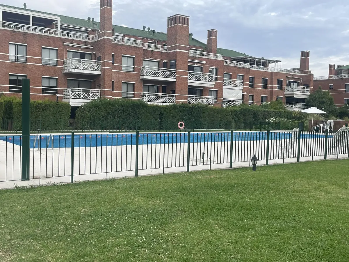 Departamento de 2 ambientes en planta baja en San Isidro, con jardín y vista al interior del complejo. Cuenta con living comedor, 1 dormitorio y 1 baño completo. Tiene cocina con lavadero, parrilla, calefacción por losa radiante y agua caliente por caldera dual. Incluye pisos de madera, aberturas de aluminio con mosquiteros y cochera cubierta en subsuelo. El Solar de San Isidro dispone de piscina con guardavidas, gimnasio, SUM, canchas de tenis y de fútbol, y cocheras subterráneas para residente
