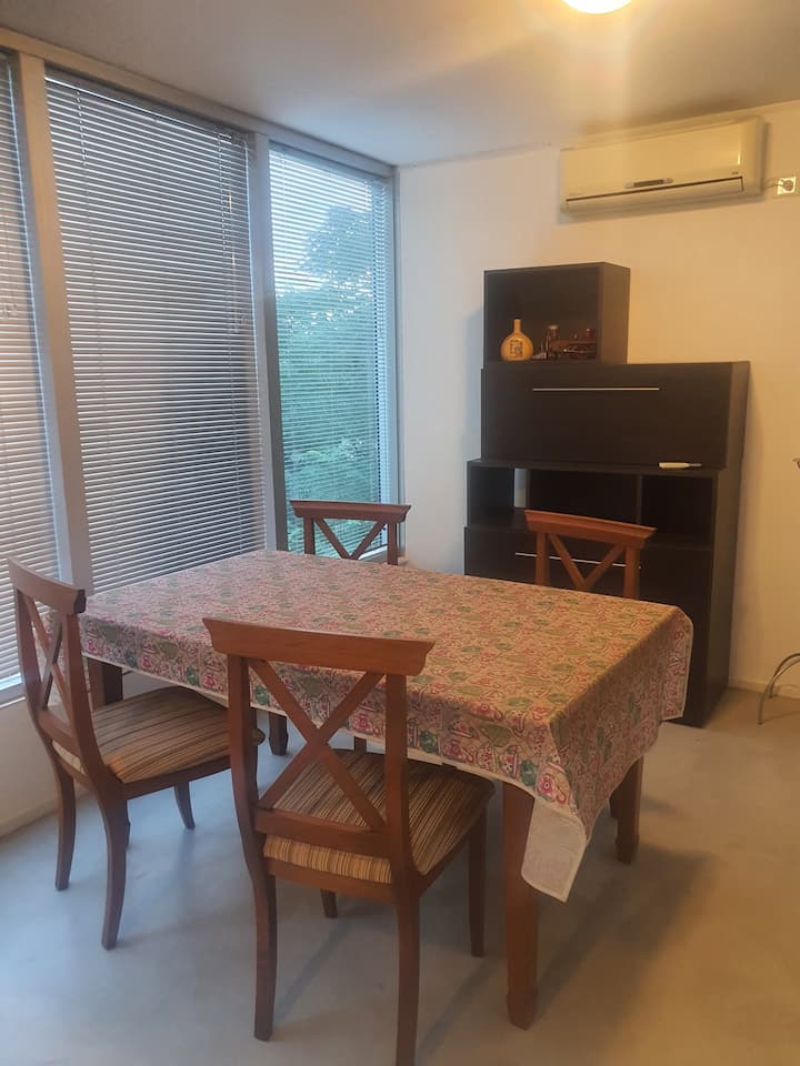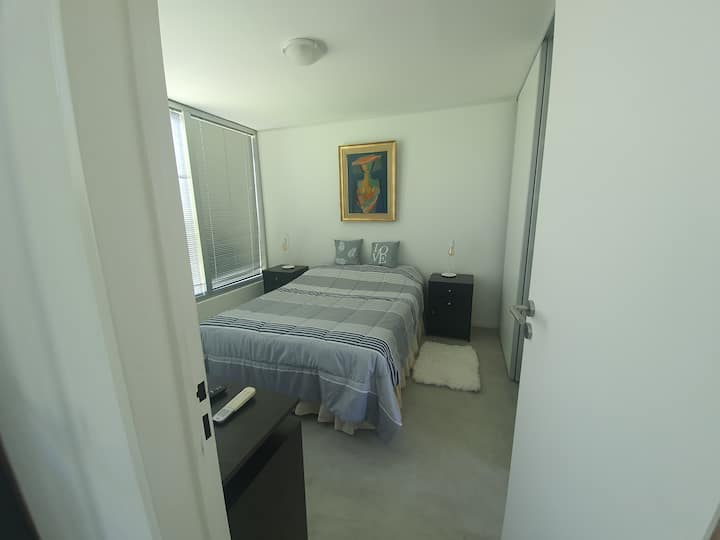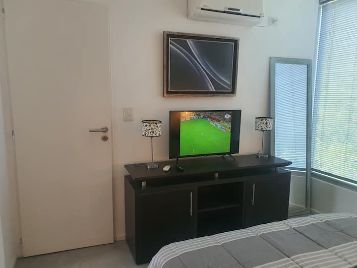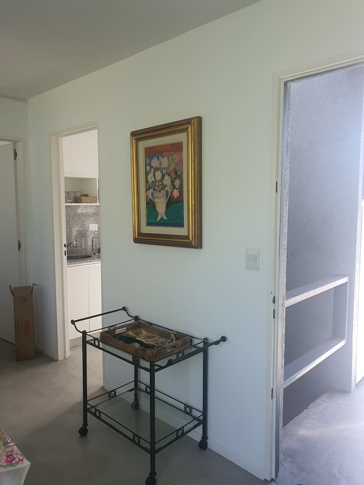 Departamento independiente de 2 ambientes de 50 m² en estilo moderno. Se describe como muy luminoso. Ubicado en San Isidro, a 5 cuadras del Hipódromo y a 3 cuadras del centro comercial.