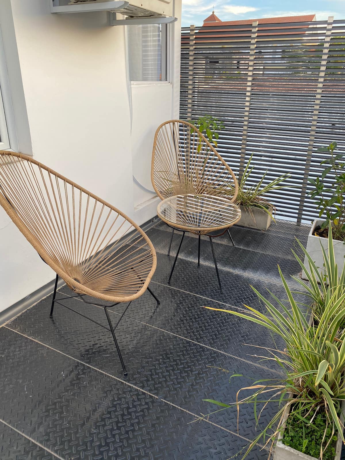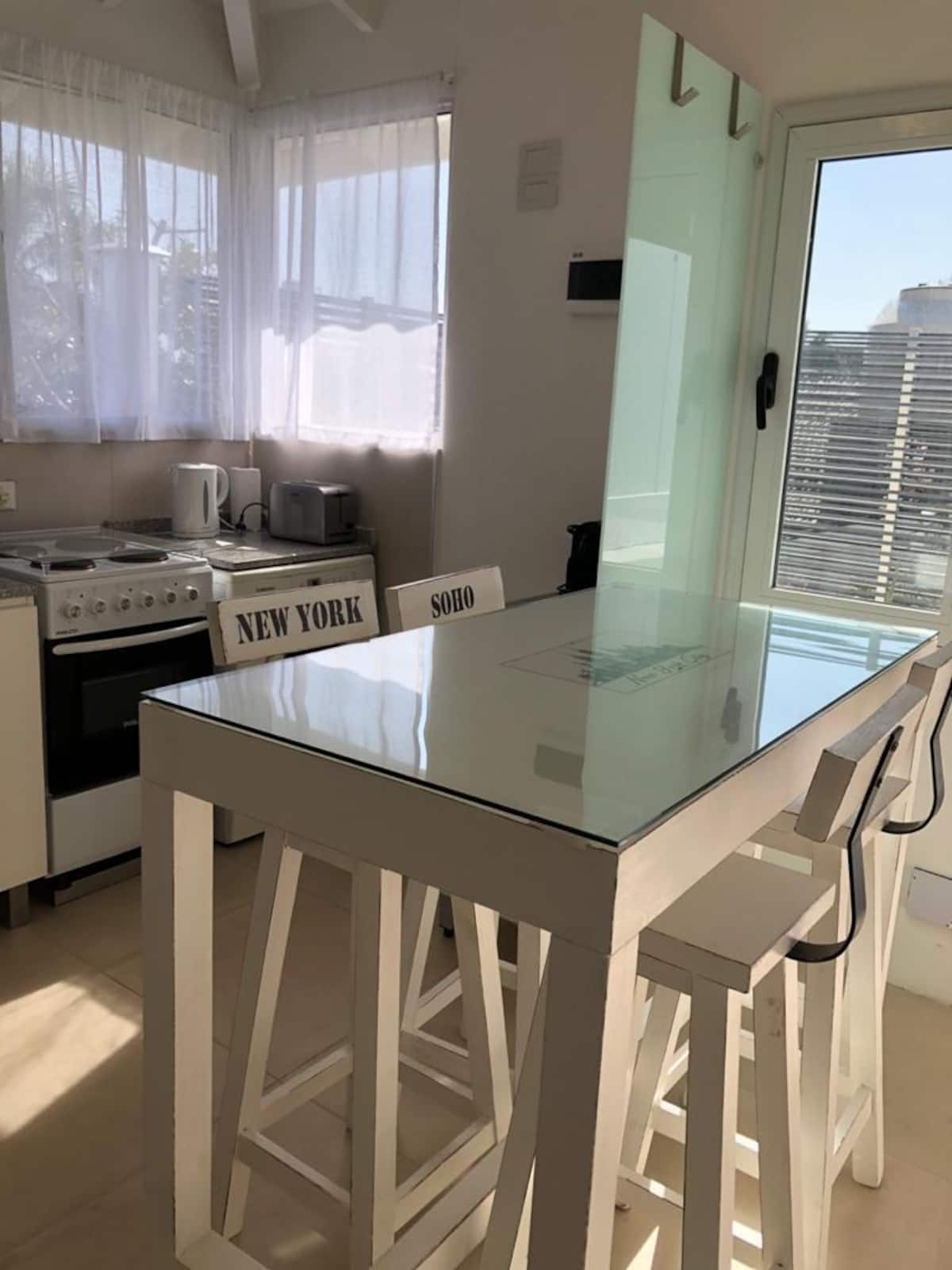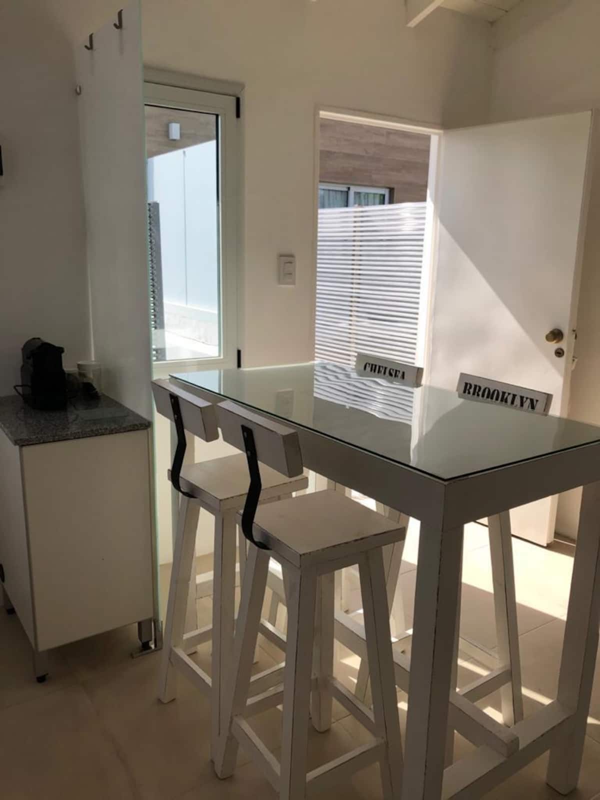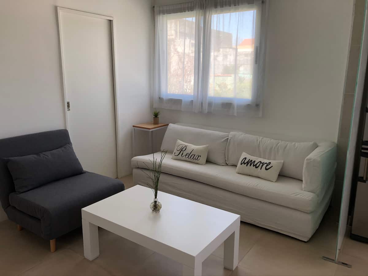 Departamento tipo penthouse en el último piso, en el barrio La Calabria, San Isidro. Tiene 2 ambientes, con ingreso privado a través de un hall propio. Cuenta con Smart TV en el living y en el dormitorio, y con WiFi; incluye sábanas y toallas. Se encuentra a 5 cuadras de Av. Centenario, Av. Rolón y Av. Marqués.