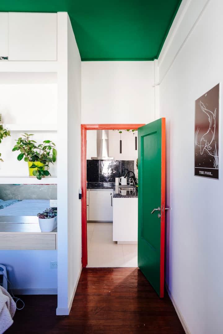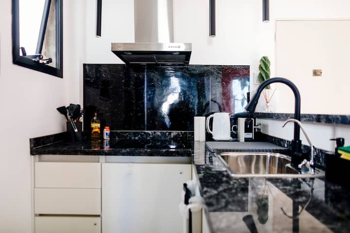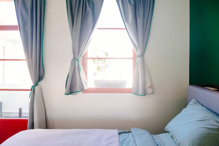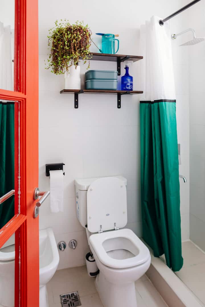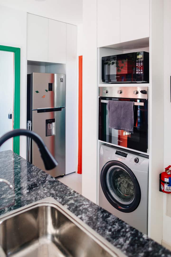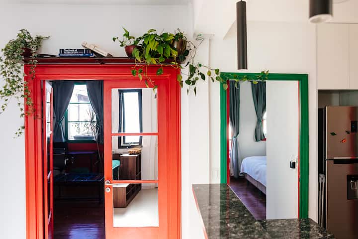 Departamento de 60 m² en el 6to piso de un edificio histórico con ascensor, en San Nicolás. Tiene 1 dormitorio privado, living conectado con cocina totalmente equipada, un home office con salida al balcón y 1 baño con ducha a ras de piso. Cuenta con cama doble en el dormitorio y dos sillones cama en el living y en el office. La cocina incluye cocina eléctrica, horno, cafetera Nespresso, microondas y utensilios de cocina. Dispone de lavarropas, 2 aires acondicionados (en el dormitorio y en el off