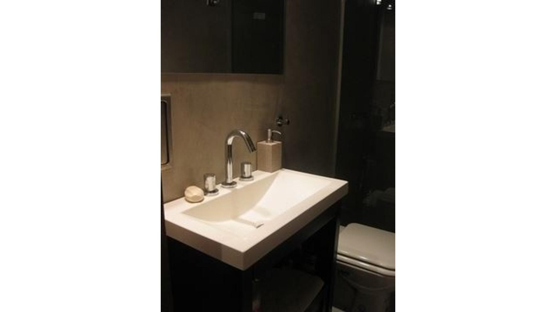 Departamento de 1 dormitorio en Microcentro, San Nicolás, en Esmeralda 740 entre Córdoba y Viamonte. Está totalmente reciclado a nuevo. Cuenta con split BGH F/C de 2250 frigorías nuevo, pisos y paredes del baño en cemento alisado, grifería Ferrum, bacha y vanitori. Incluye cocina con heladera bajo mesada, muebles de cocina, LCD Samsung de 32 pulgadas, horno eléctrico, anafe y microondas, pava eléctrica y tostadora, además de muebles de dormitorio y ropa de cama. El edificio tiene 16 pisos, 3 asc