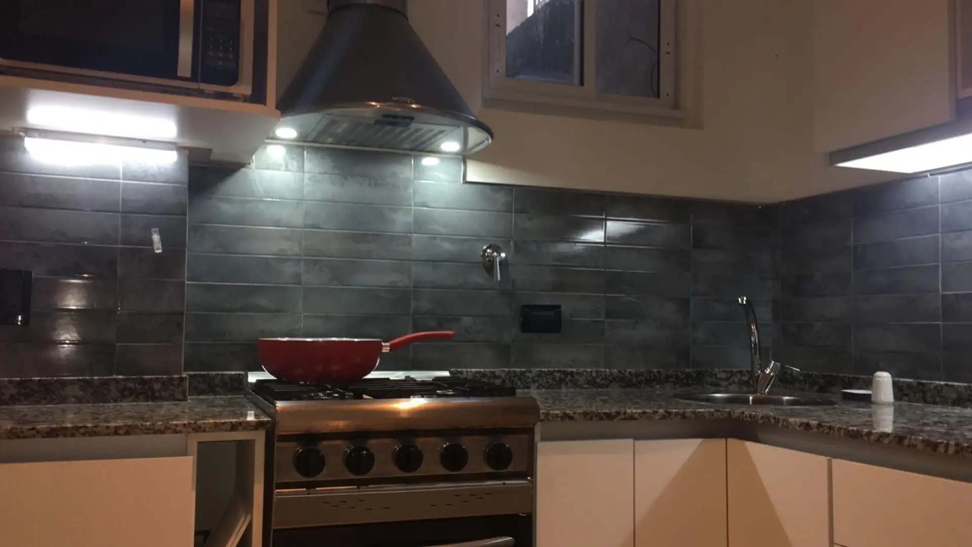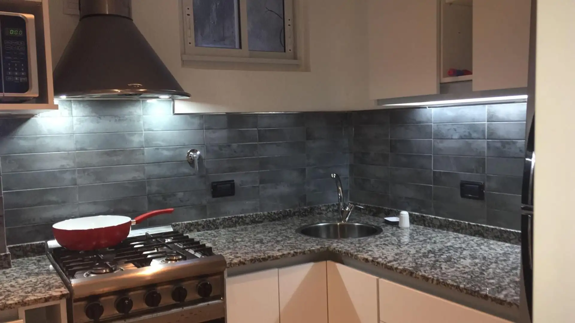 Departamento de 2 ambientes con orientación contrafrente, en excelente estado, reciclado a nuevo. Cuenta con aire acondicionado, baño completo y cocina a gas con campana, heladera grande con freezer y microondas. Incluye wifi y cable; sin muebles u$s 350, y con muebles paquete u$s 450 (incluye expensas y ABL), más servicios de luz y gas.