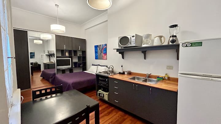 Loft en un edificio histórico de estilo francés, ubicado en San Nicolás, a metros del Obelisco. Cuenta con 1 dormitorio. La zona concentra accesos de metro, colectivos y trenes.
