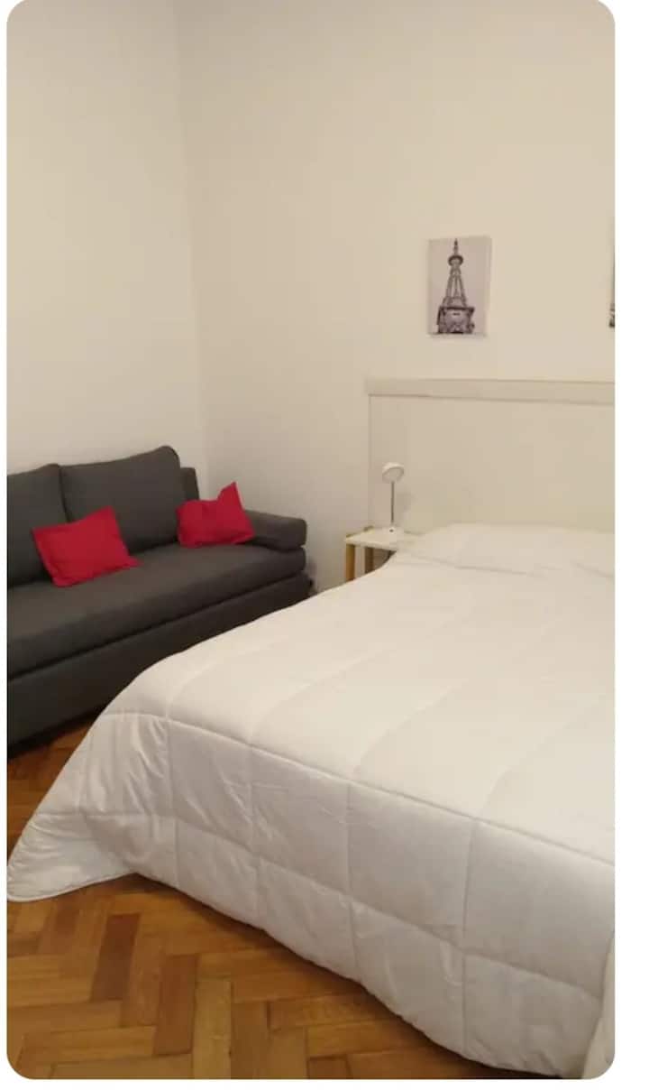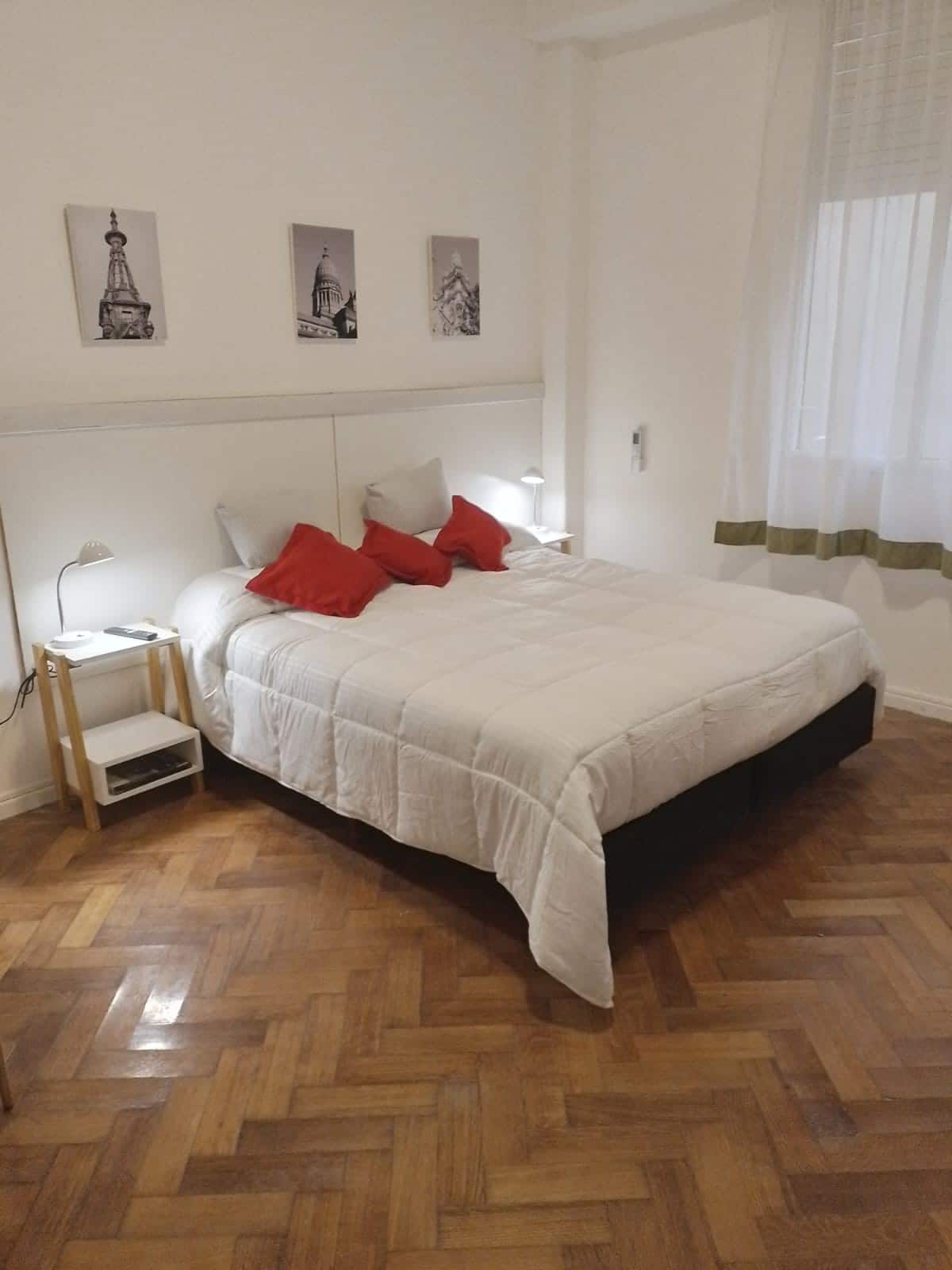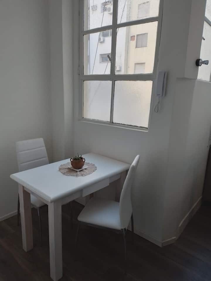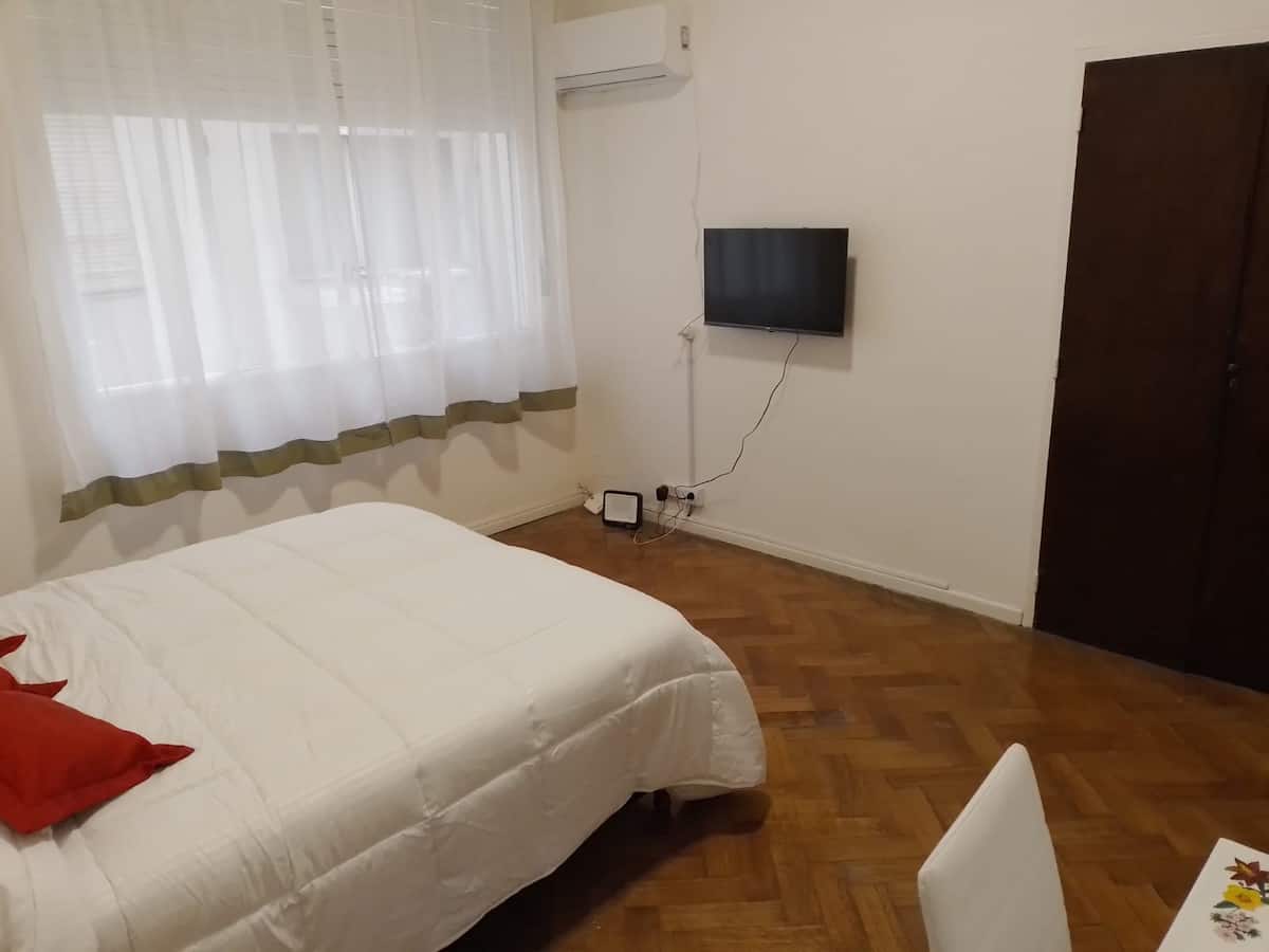 Departamento de 2 ambientes en San Nicolás, con 1 dormitorio. La unidad se encuentra a 100 metros de Av. Corrientes y a 300 metros de Av. 9 de Julio. Incluye cocina, comedor, dormitorio con opción de cama doble o 2 camas individuales, baño y hall de entrada; cuenta con cuna para bebé con pedido previo. El ingreso es autónomo y se informan instrucciones de acceso; a horas del check-in se envía la contraseña del wifi.