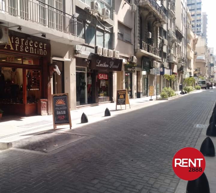 Departamento en zona céntrica de Buenos Aires con balcón. Dispone de cama doble, aire acondicionado, cocina con horno eléctrico, microondas, pava eléctrica y tostadora, y sector con sillas. Baño con ducha y bidet. Se encuentra a pie de Plaza de Mayo, Galerías Pacífico y Calle Florida.