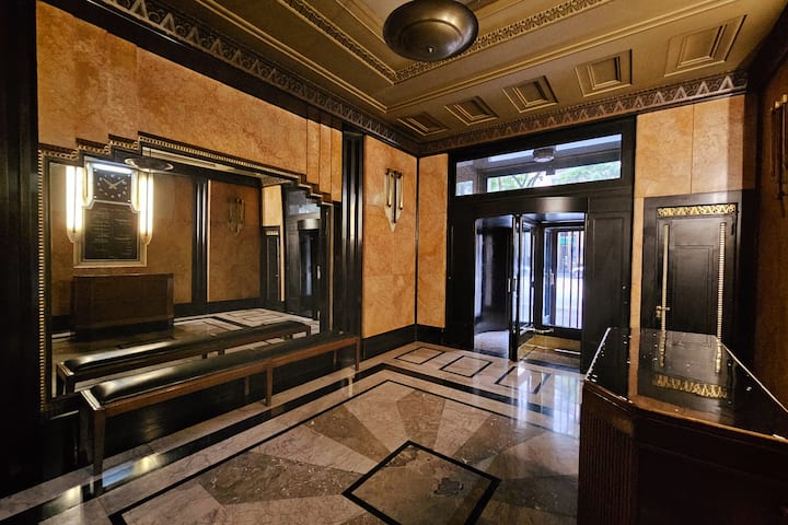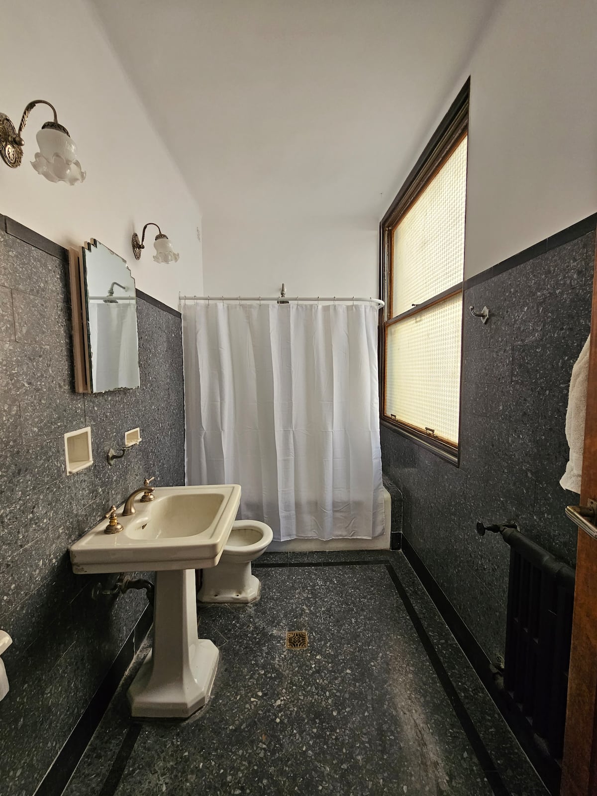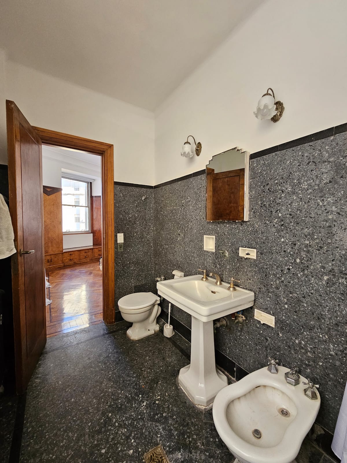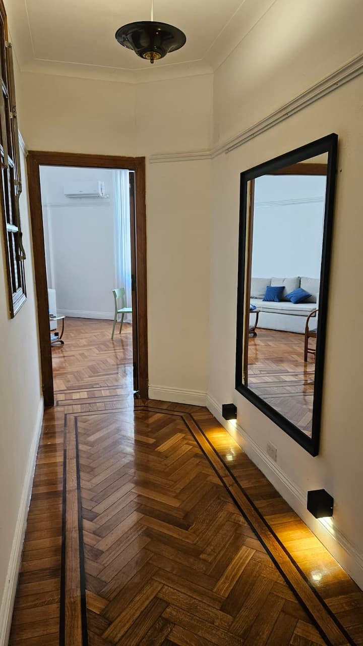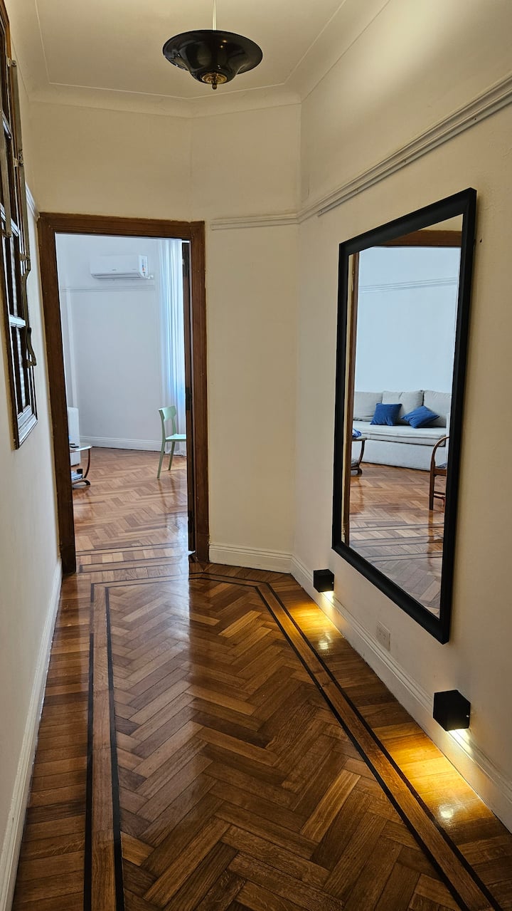 Departamento de 2 ambientes en un edificio de época en el centro de Buenos Aires, de 1933. Cuenta con techos altos y pisos de madera. Ventanales grandes con vista a la Av. Roque Sáenz Peña y al recorrido hacia Plaza de Mayo. Fue reciclado durante varios meses con una restauración que respetó elementos originales.