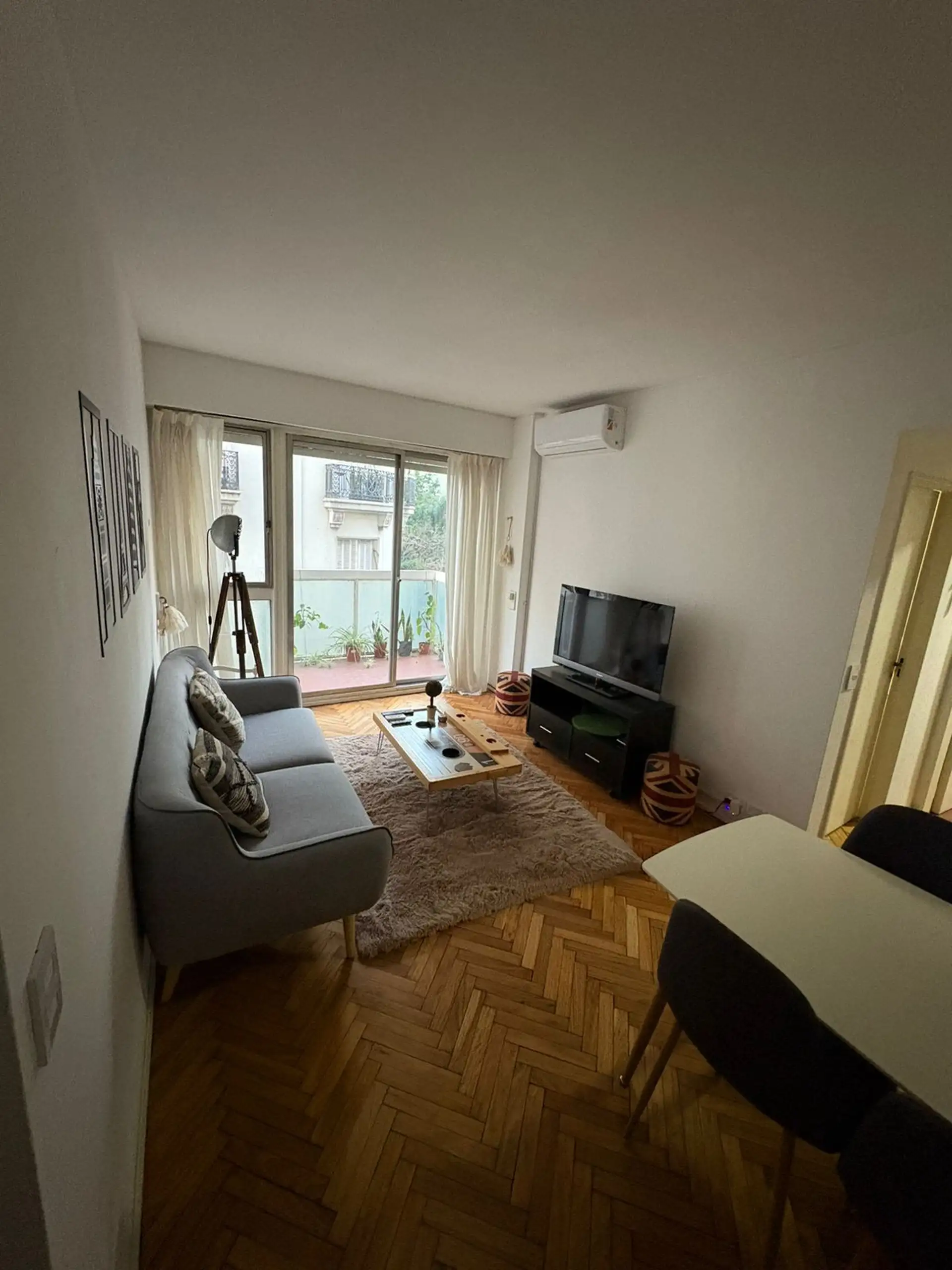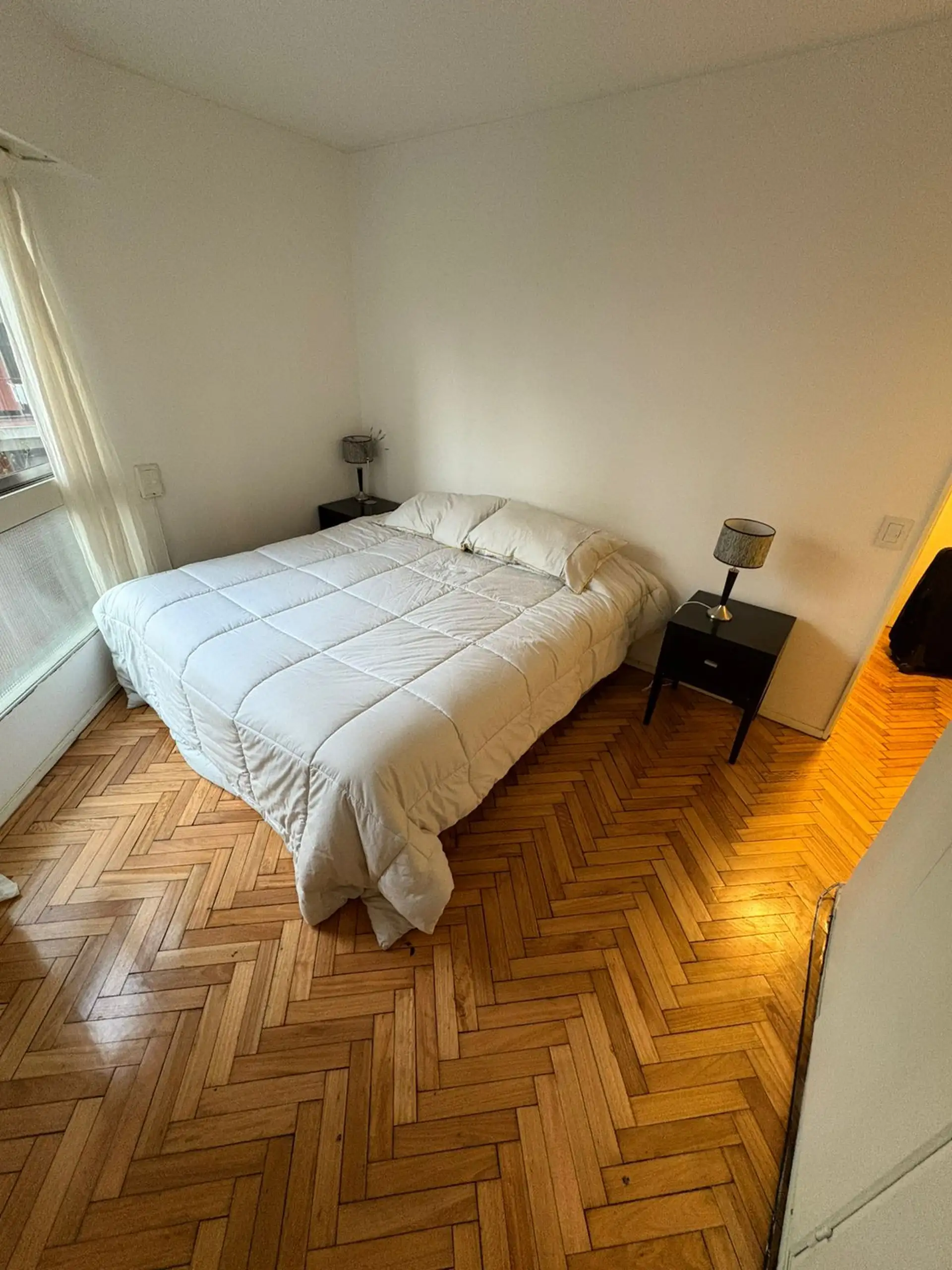 Departamento de 1 ambiente con aire acondicionado en Barrio Norte. Incluye hall de entrada, living comedor con salida a balcón al frente, hall distribuidor, dormitorio con placards y aire acondicionado, cocina y baño completo. Persianas eléctricas en living y dormitorio; se alquila sin muebles y es apto profesional. Requiere ingresos comprobables y garantía propietaria o seguro de caución.
