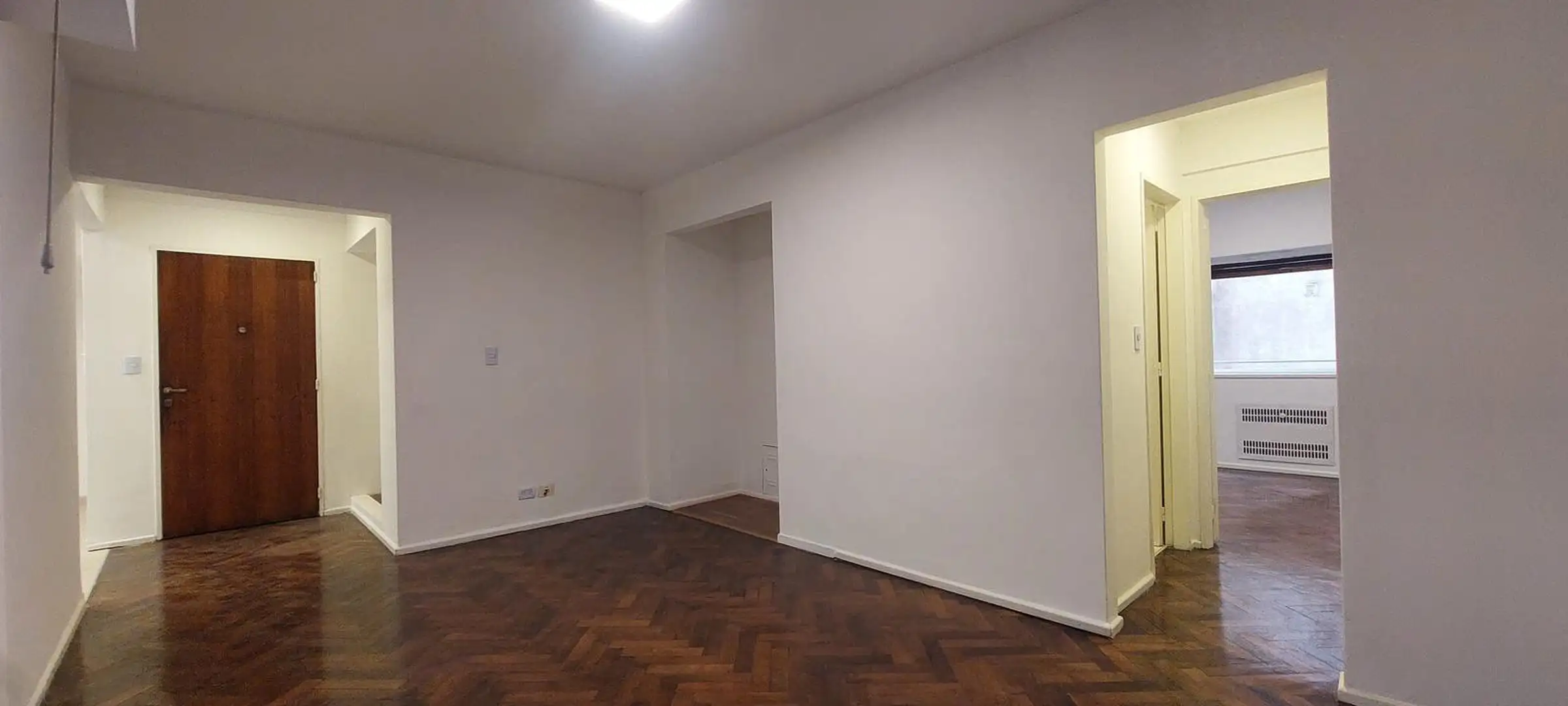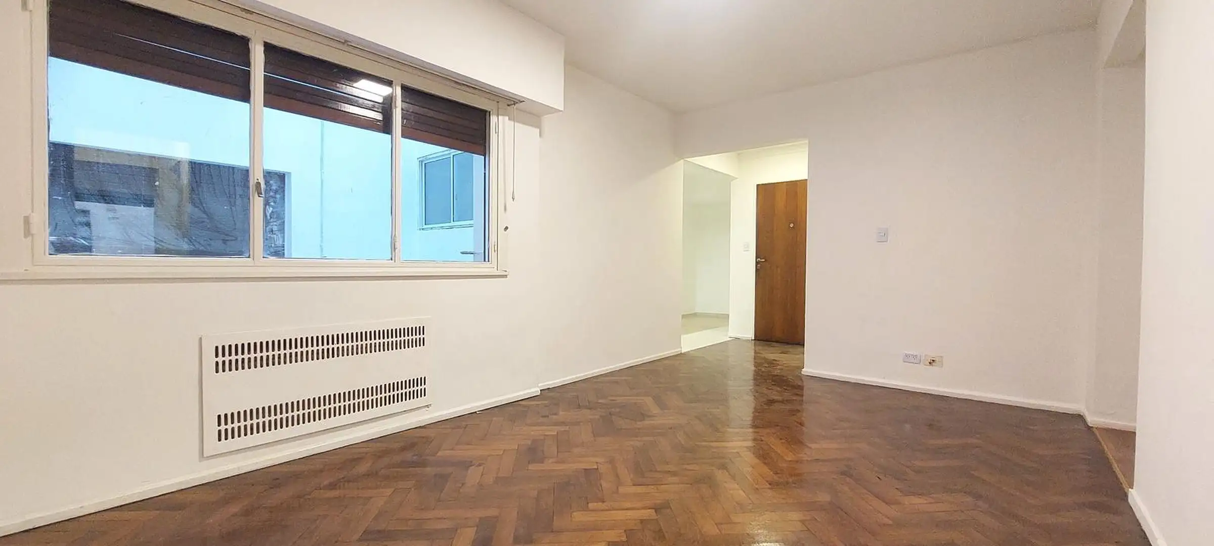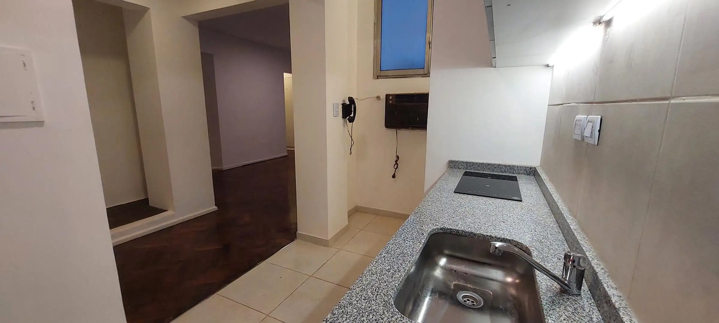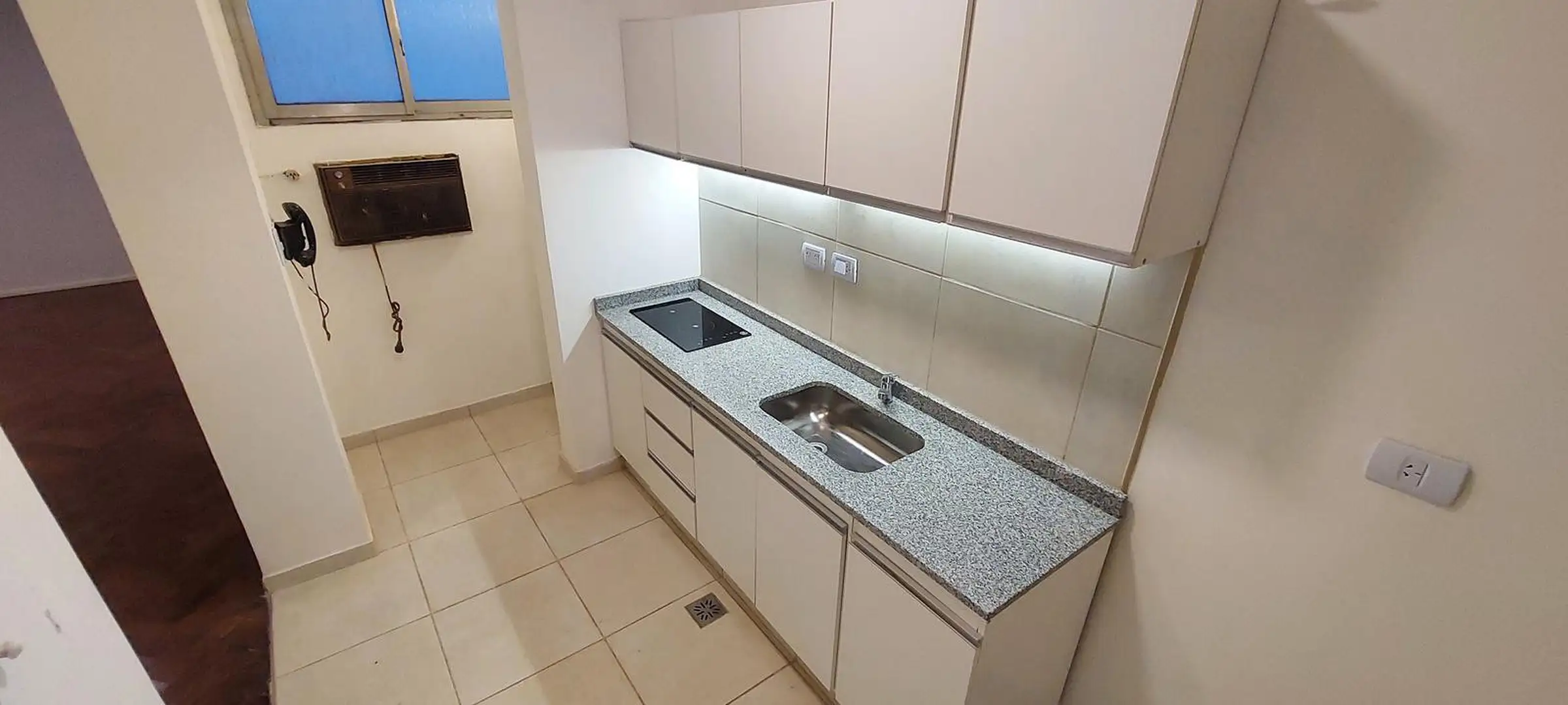 Departamento de 2 ambientes reciclado a nuevo en San Nicolás, con orientación a aire luz y gran ventana en el living. Apto profesional, totalmente eléctrico, con instalación nueva y anafe eléctrico sin horno. Incluye cocina con muebles bajo mesada y alacena, espacio para comedor diario, lavadero independiente con espacio para lavarropas, baño con ducha y vanitory, y dormitorio con ventana a aire luz, placard empotrado y pasillo de acceso. El edificio tiene aproximadamente 59 años, 3 ascensores,