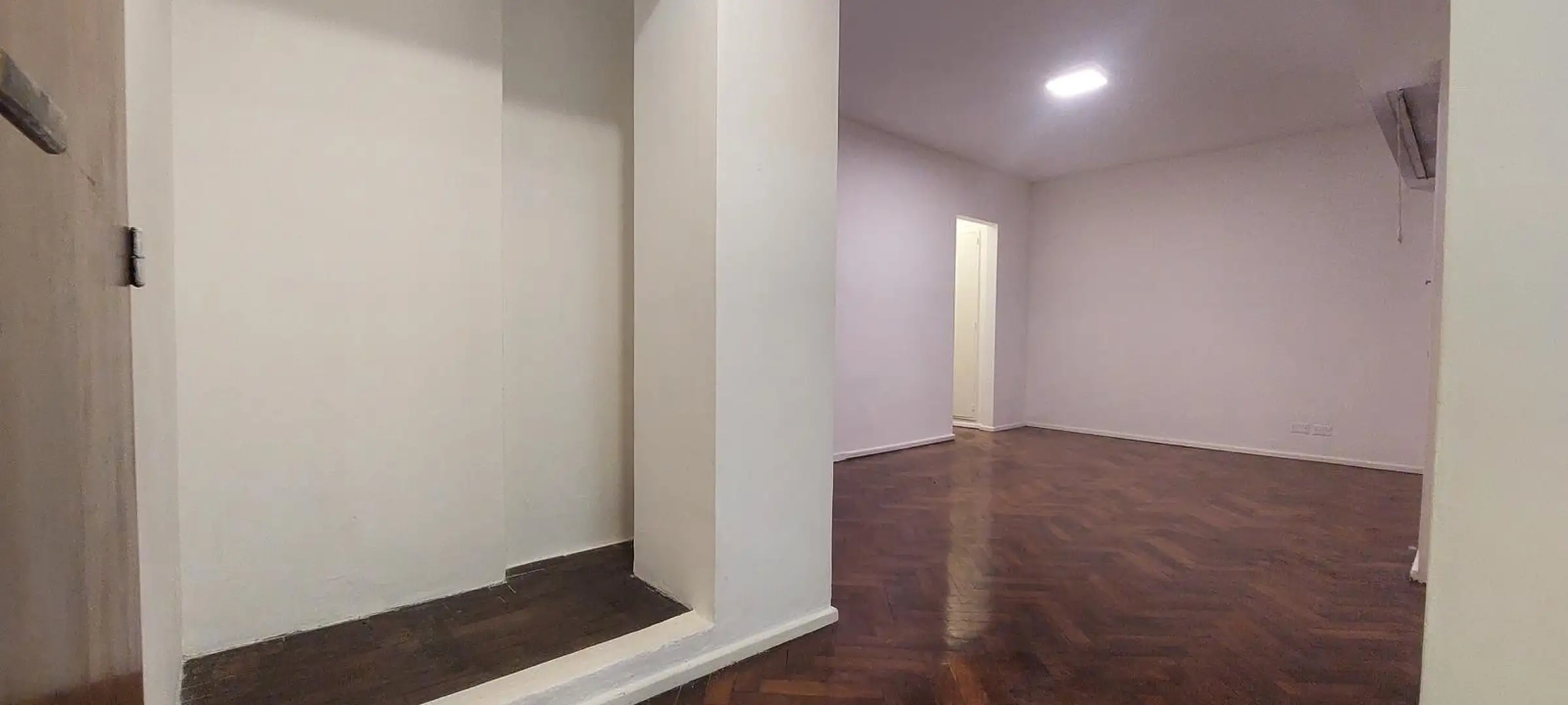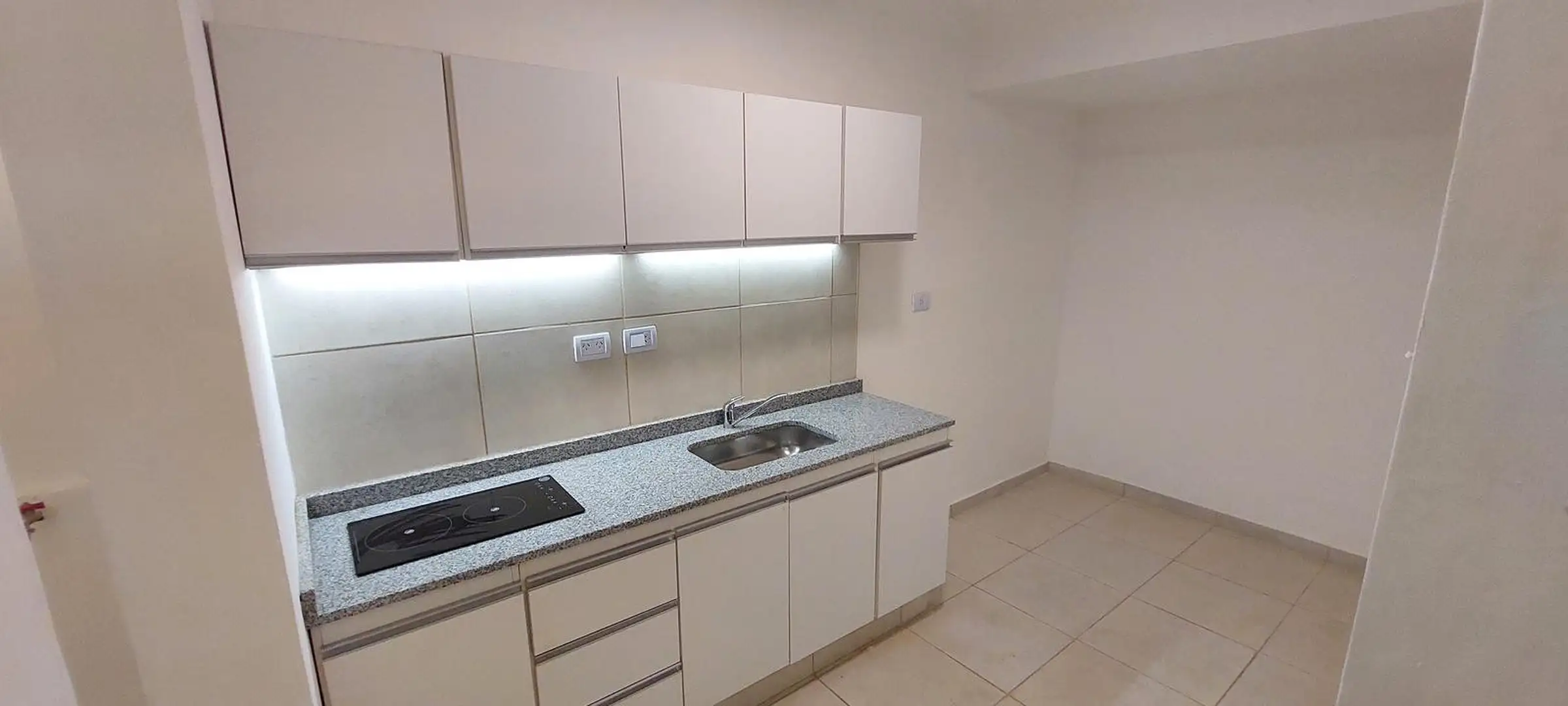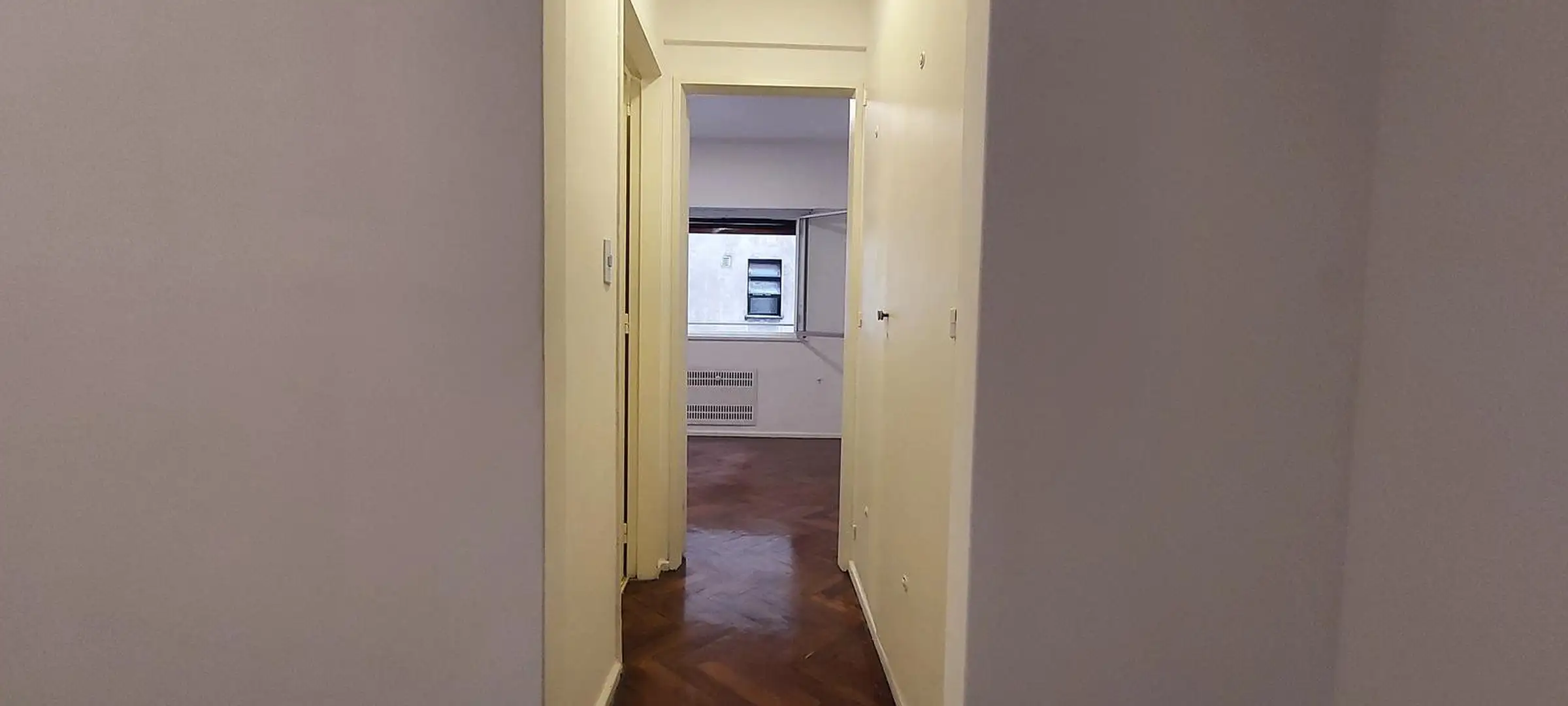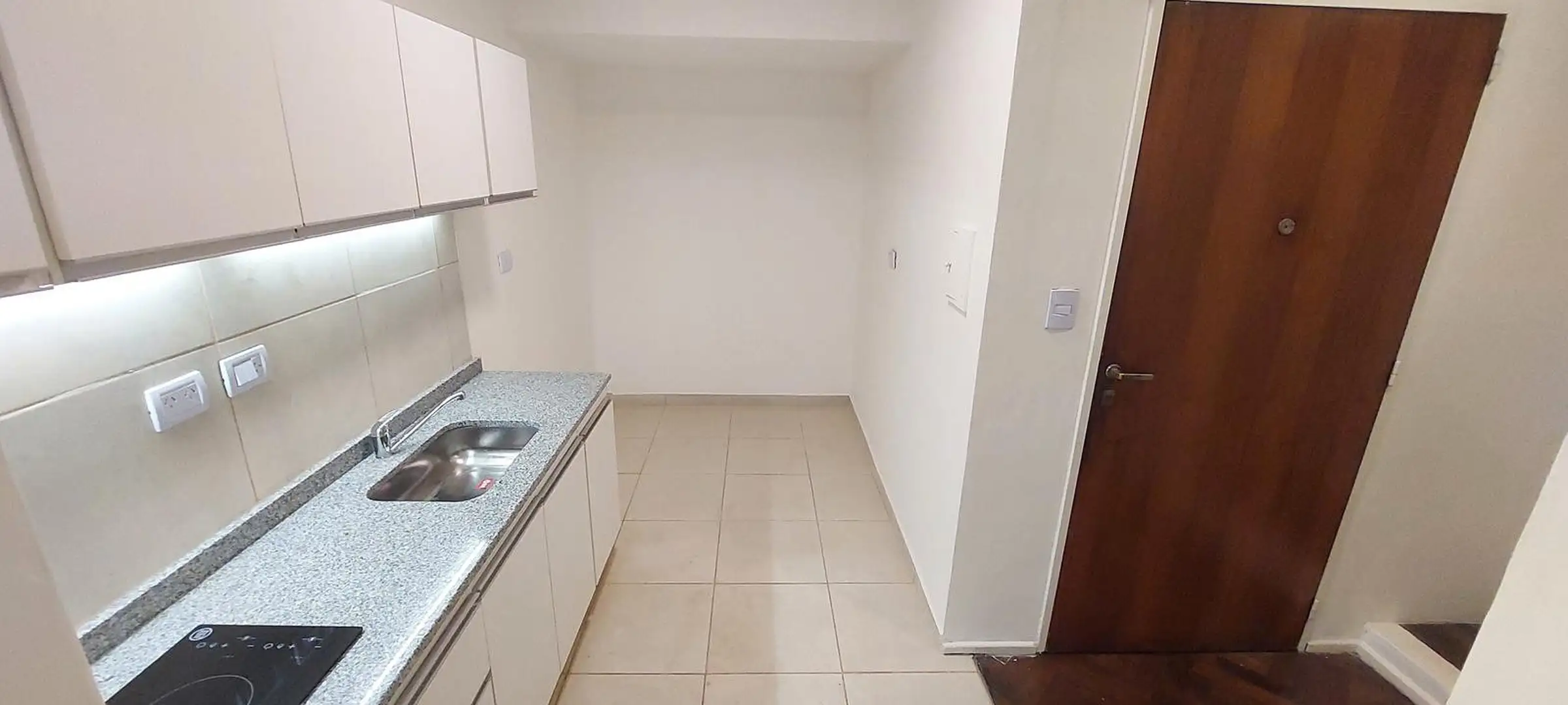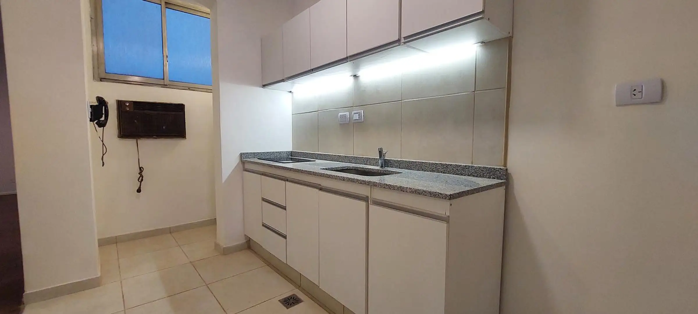 Departamento de 2 ambientes reciclado a nuevo en San Nicolás, con orientación a aire luz y gran ventana en el living. Apto profesional, totalmente eléctrico, con instalación nueva y anafe eléctrico sin horno. Incluye cocina con muebles bajo mesada y alacena, espacio para comedor diario, lavadero independiente con espacio para lavarropas, baño con ducha y vanitory, y dormitorio con ventana a aire luz, placard empotrado y pasillo de acceso. El edificio tiene aproximadamente 59 años, 3 ascensores,