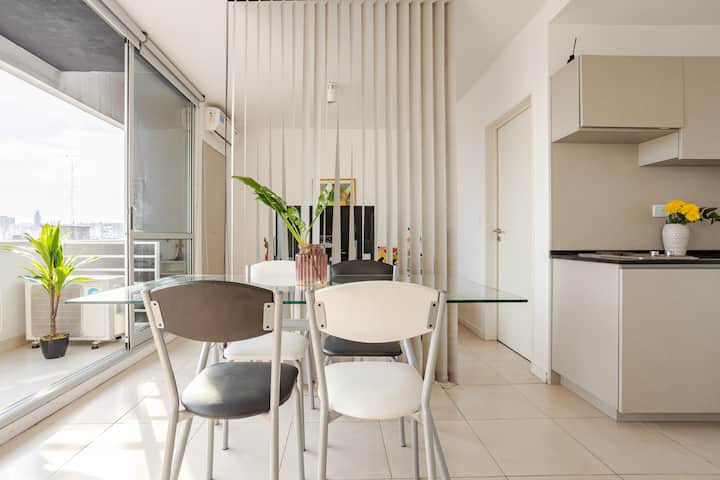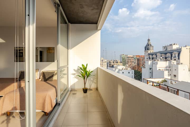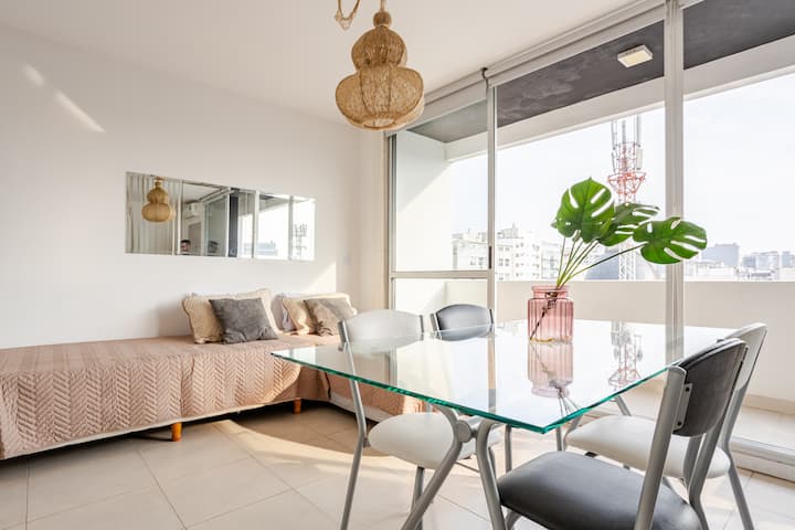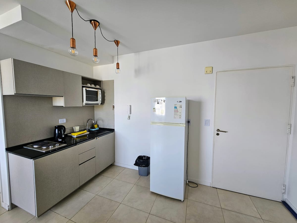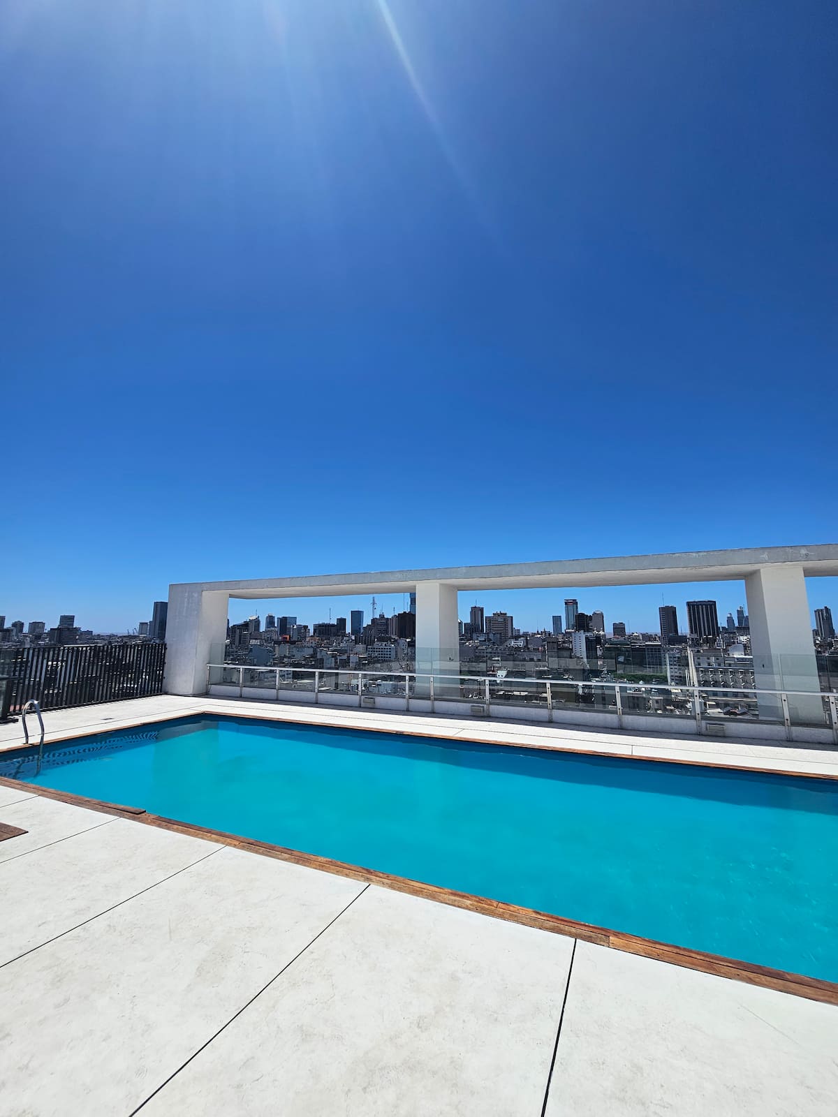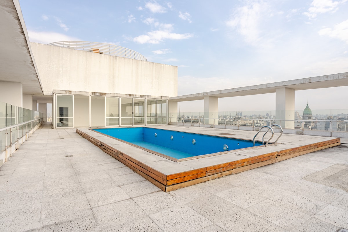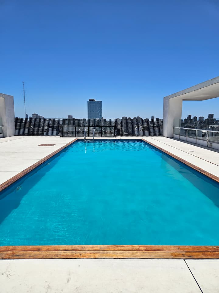 Departamento de 1 dormitorio en un piso 11 con vista abierta a edificios de Buenos Aires. Se ofrece amoblado y cuenta con cocina integrada equipada con anafe, microondas, heladera y utensilios de cocina. Dispone de lavadero con lavarropas y baño con ducha, bidet y toilettes, además de TV de pantalla plana. El edificio tiene laundry, recepción en el lobby, seguridad 24 h, 4 ascensores, pileta, solárium y parrillas, SUM, gimnasio, restaurante o bar y galería de arte.