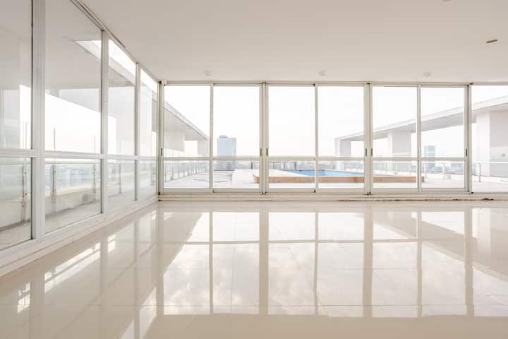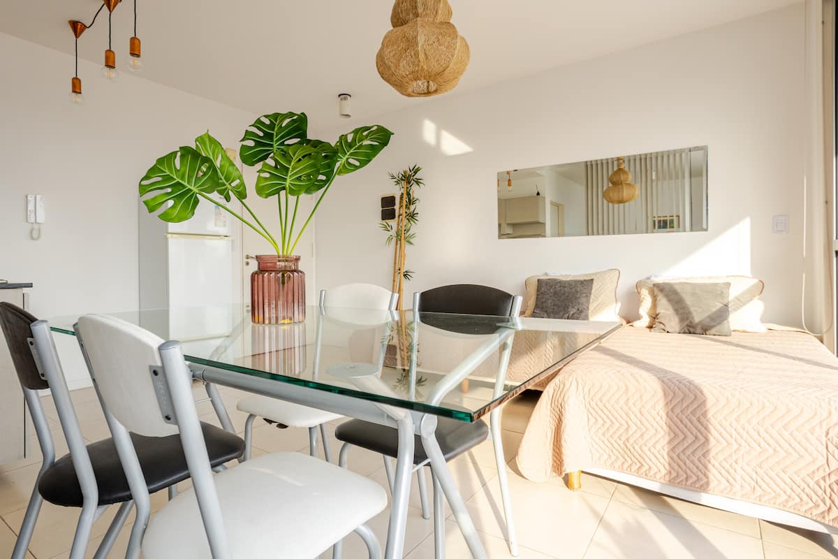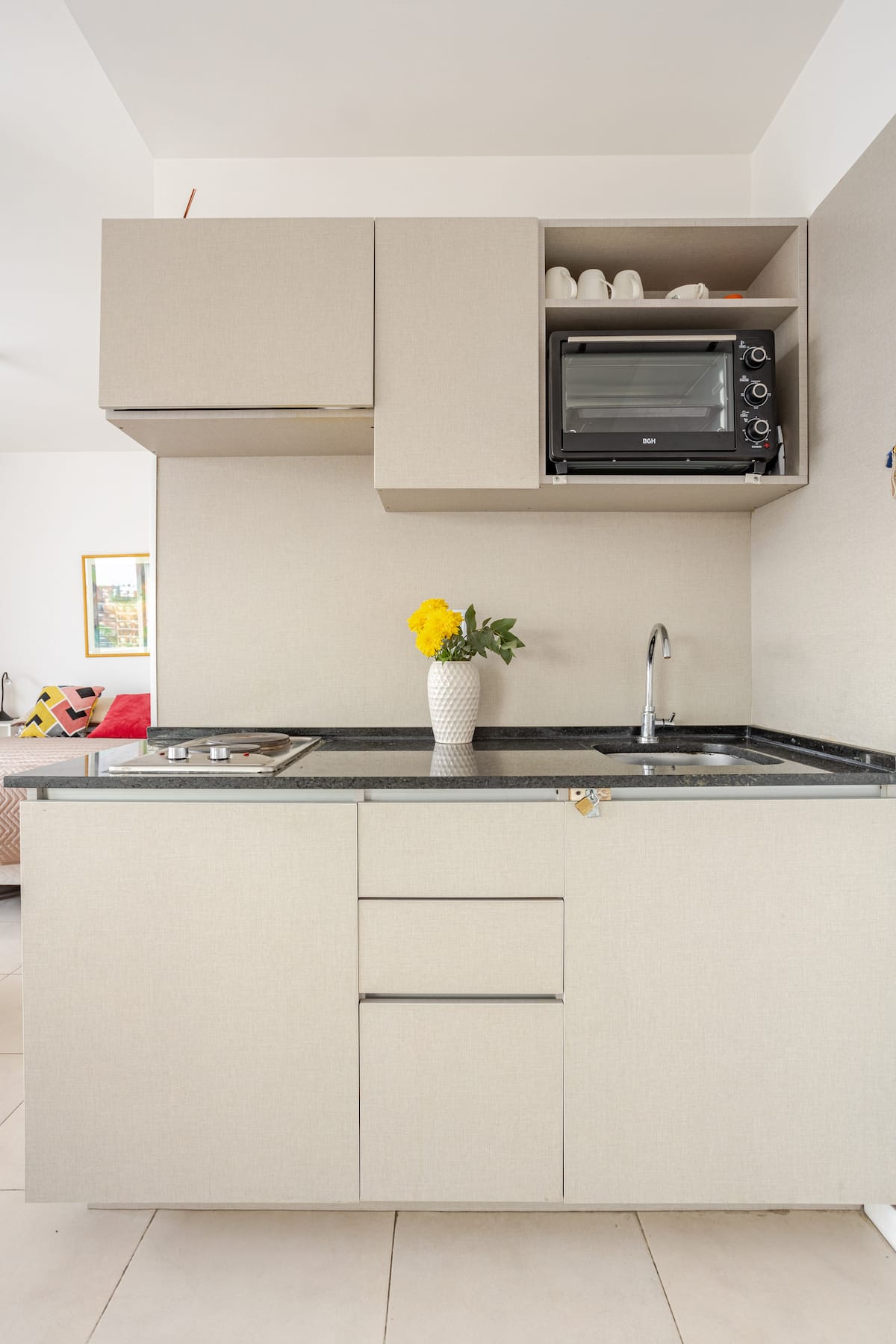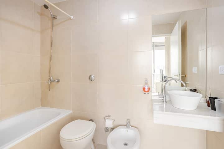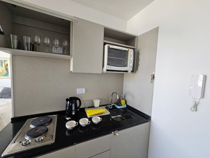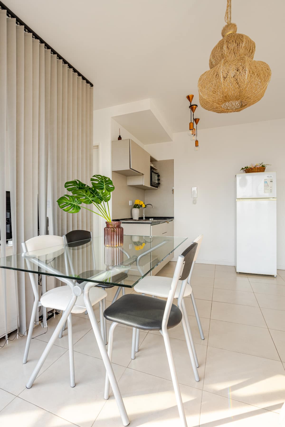 Departamento de 1 dormitorio en un piso 11 con vista abierta a edificios de Buenos Aires. Se ofrece amoblado y cuenta con cocina integrada equipada con anafe, microondas, heladera y utensilios de cocina. Dispone de lavadero con lavarropas y baño con ducha, bidet y toilettes, además de TV de pantalla plana. El edificio tiene laundry, recepción en el lobby, seguridad 24 h, 4 ascensores, pileta, solárium y parrillas, SUM, gimnasio, restaurante o bar y galería de arte.