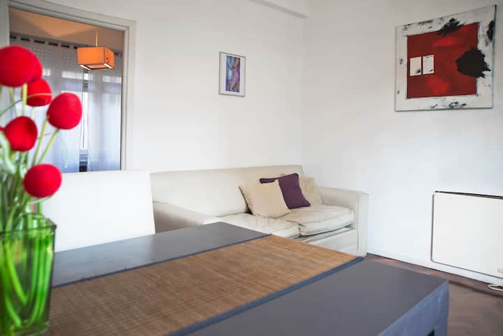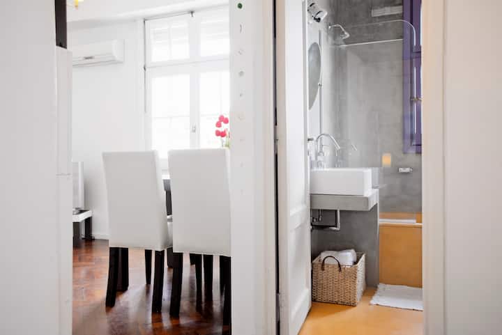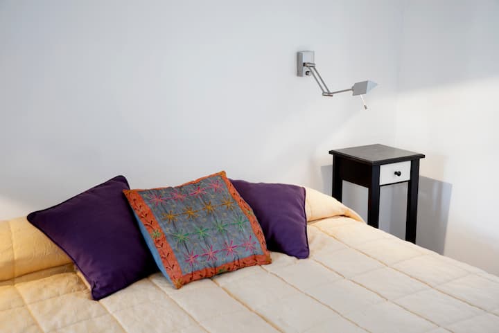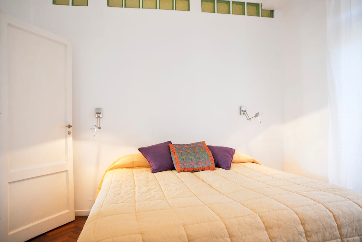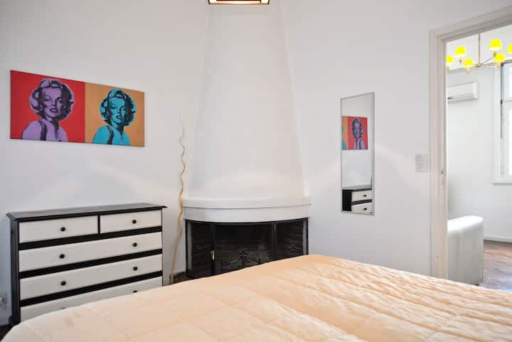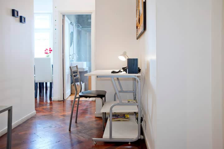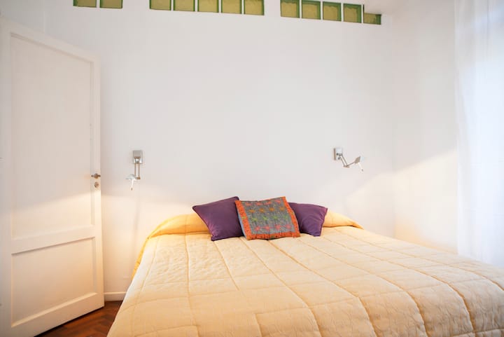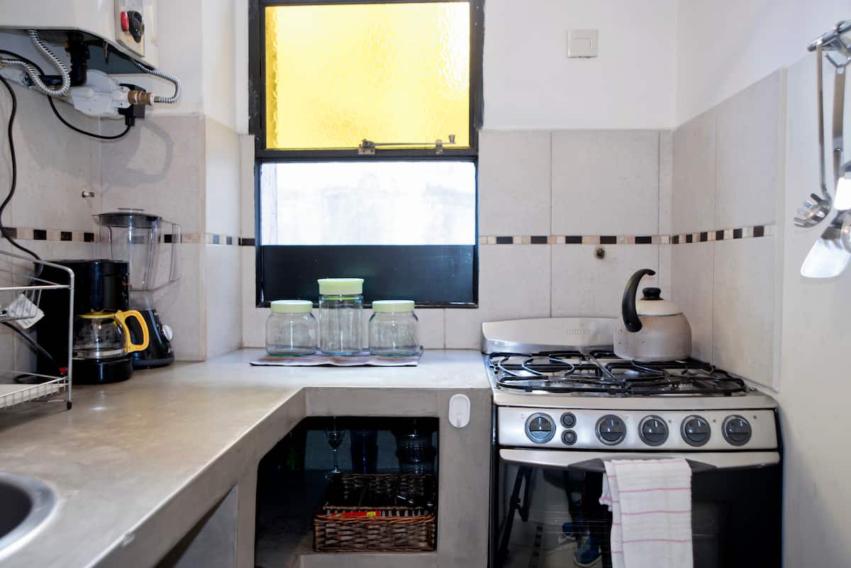 Departamento en San Telmo, con dormitorio interno y vista a la calle desde el living. Cuenta con cocina equipada con microondas, licuadora, cocina, tostadora y cafetera, baño con bañera y placard. Incluye Wi-Fi, escritorio y sector de lectura, y el dormitorio tiene 1 cama doble o 2 camas simples. Está cerca de la estación Independencia y de Av. 9 de Julio, y a pocos minutos a pie de Plaza de Mayo, Av. Florida, Obelisco y Puerto Madero. El servicio de mucama es semanal y está incluido; el check-i