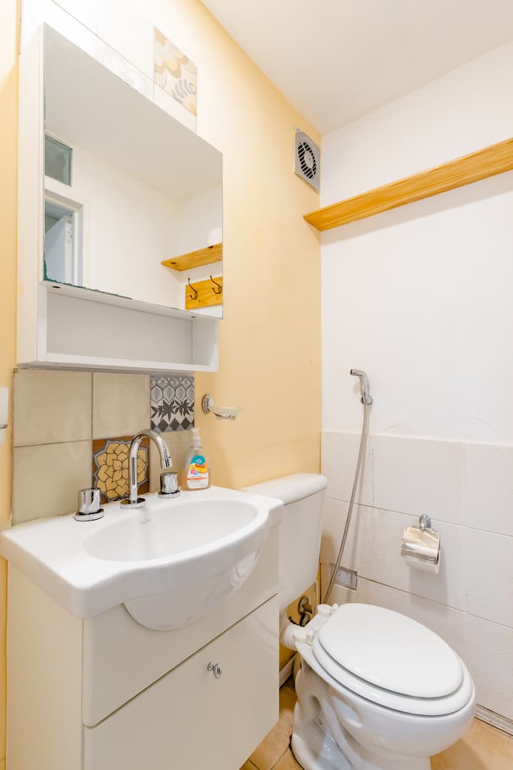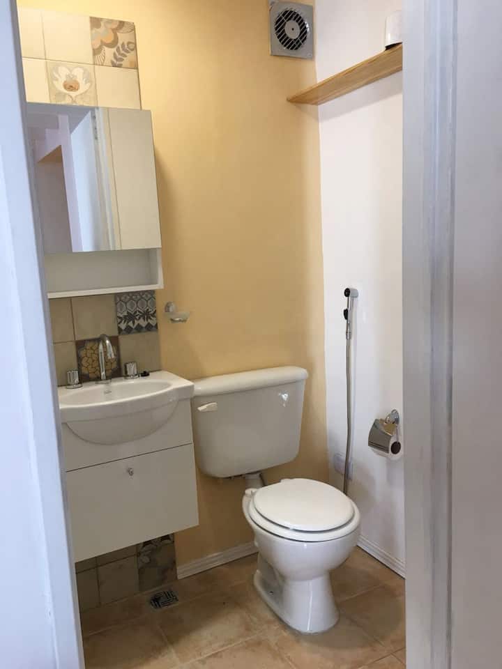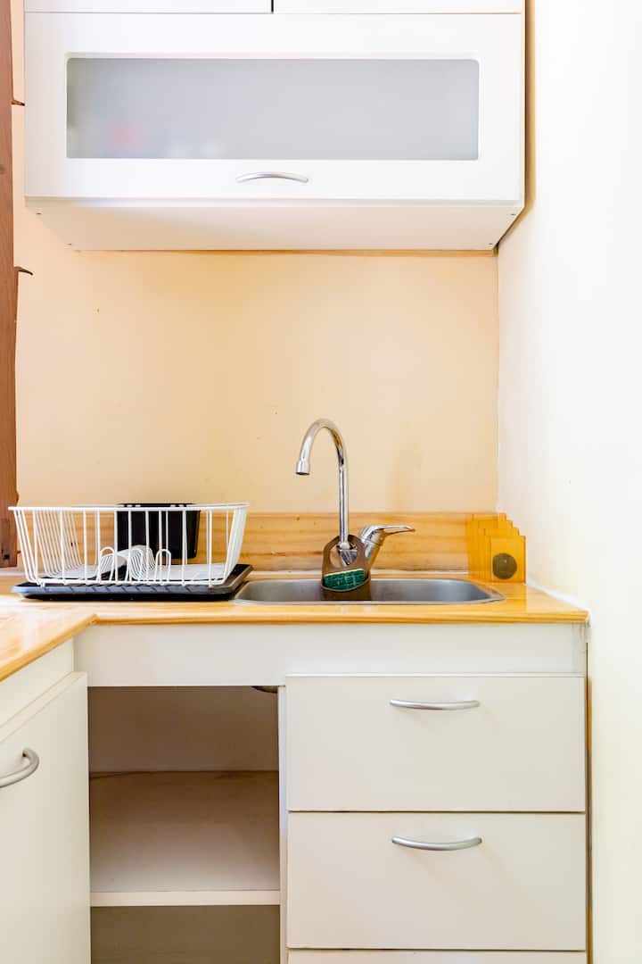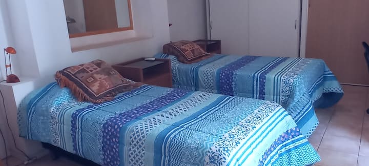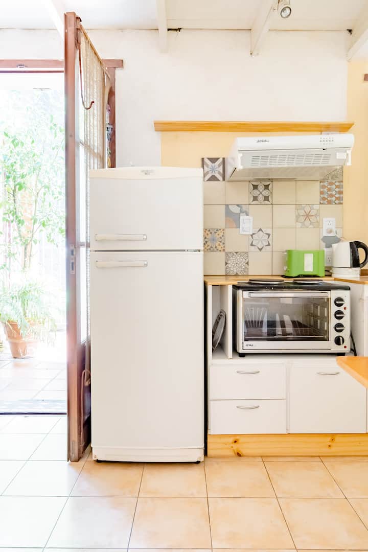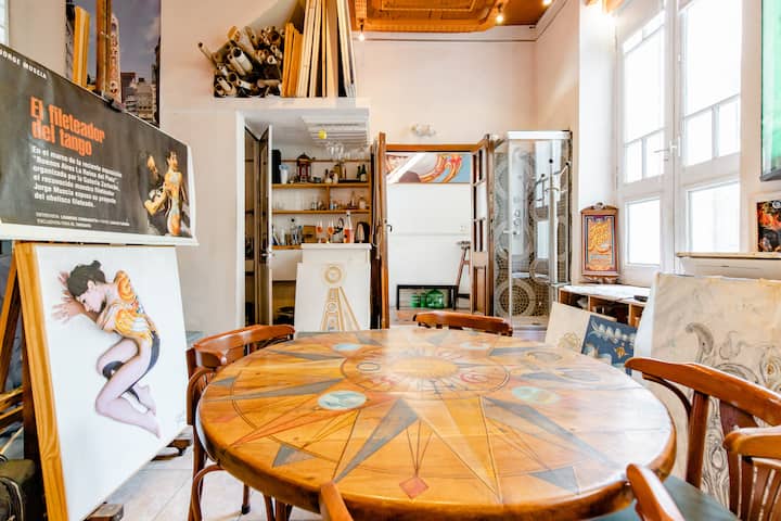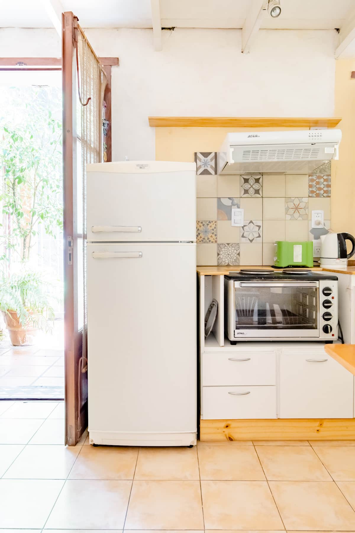 Departamento tipo mini en San Telmo para 2 personas, recientemente reciclado. Habitación con vista al patio, con ventilador, y entrada independiente. Baño privado con ducha y cocina completa con microondas, horno eléctrico y anafe, heladera, tostadora, pava eléctrica y cafetera. Incluye utensilios de comida y limpieza y WIFI. Se cobra $5 por día por el uso del aire acondicionado. No tiene servicio de lavandería ni de secado; no se permite colgar ropa en el patio.