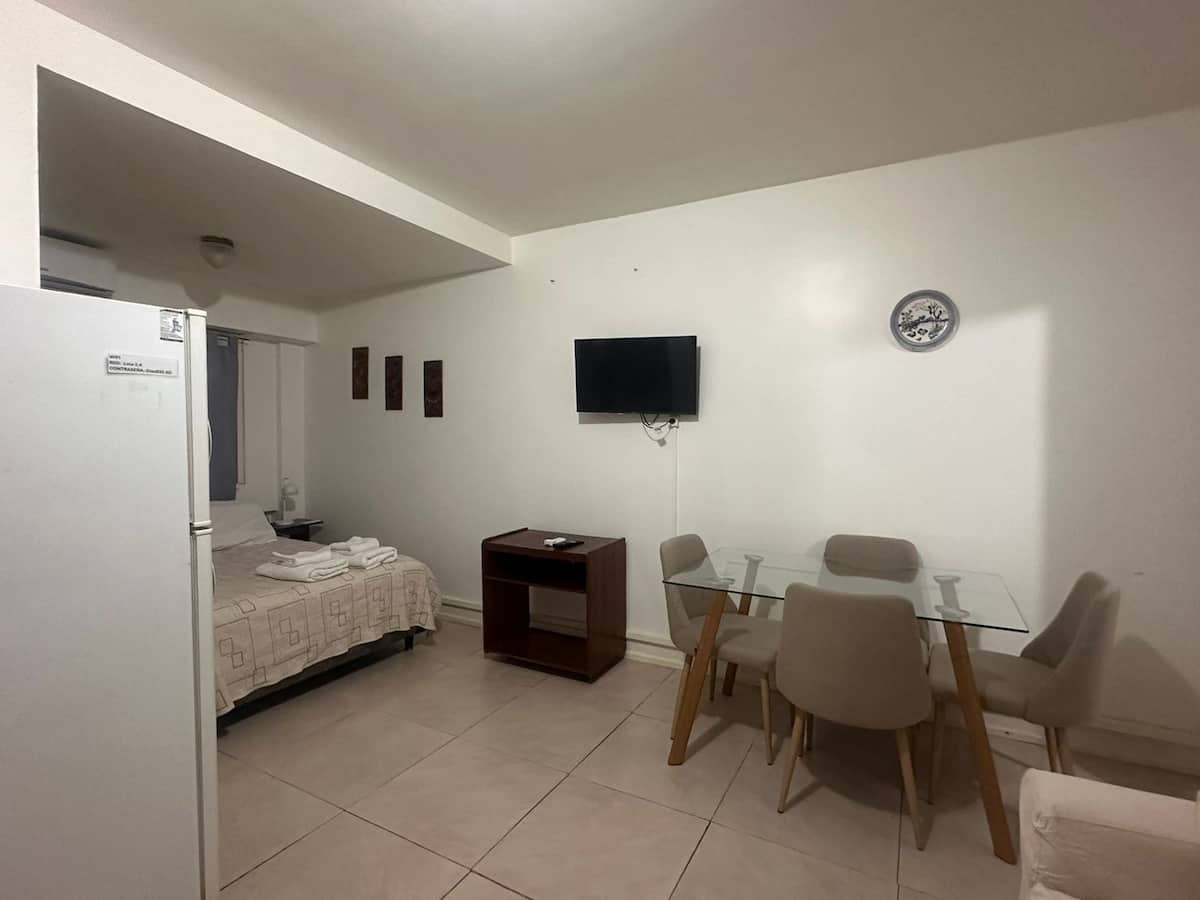 Departamento en San Telmo en edificio moderno, con 1 dormitorio. Cuenta con cocina totalmente equipada, baño privado, cama doble y sofá cama para 1 persona. Dispone de WiFi, TV LED y aire acondicionado. Ventanales amplios y el departamento se ubica a pocos metros de subte y Metrobus.