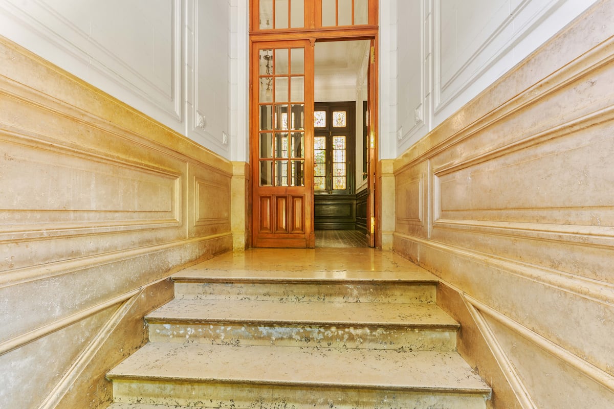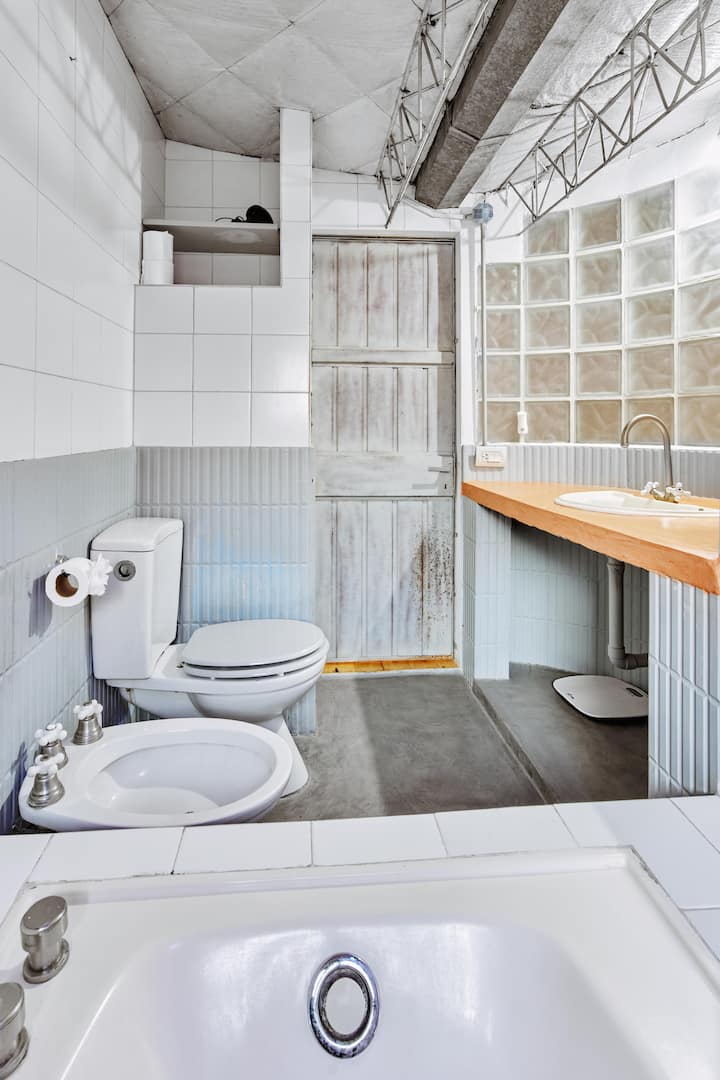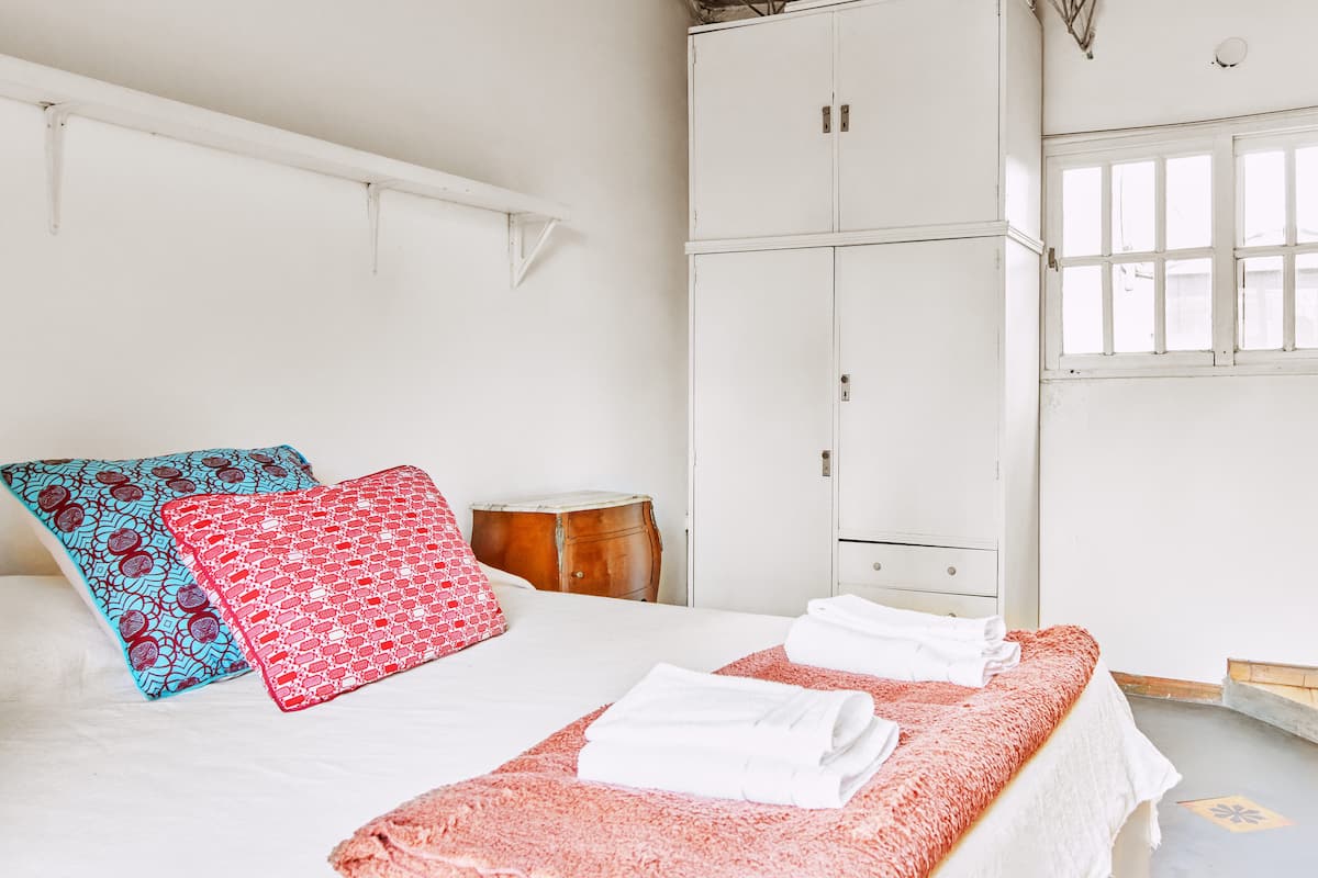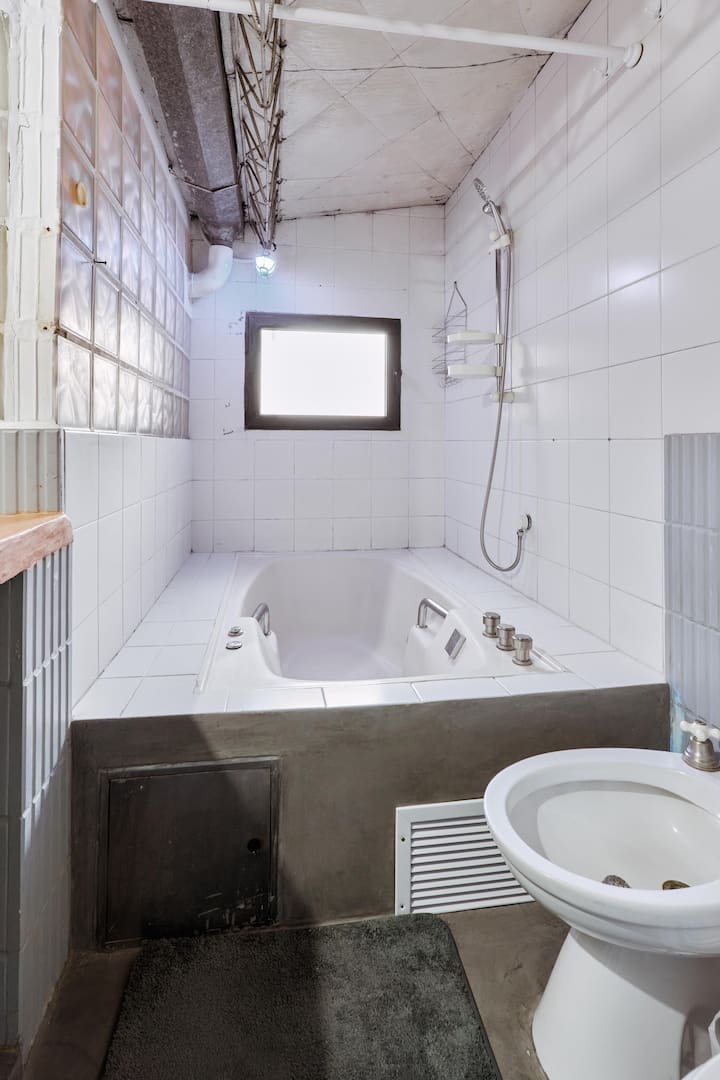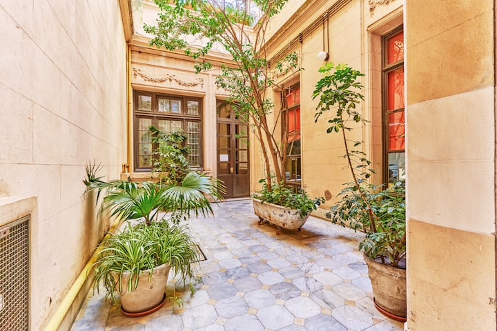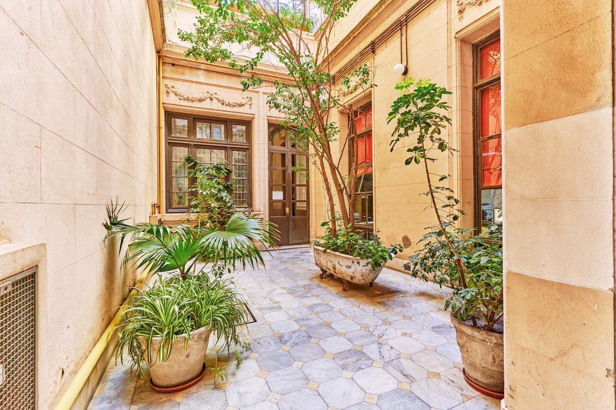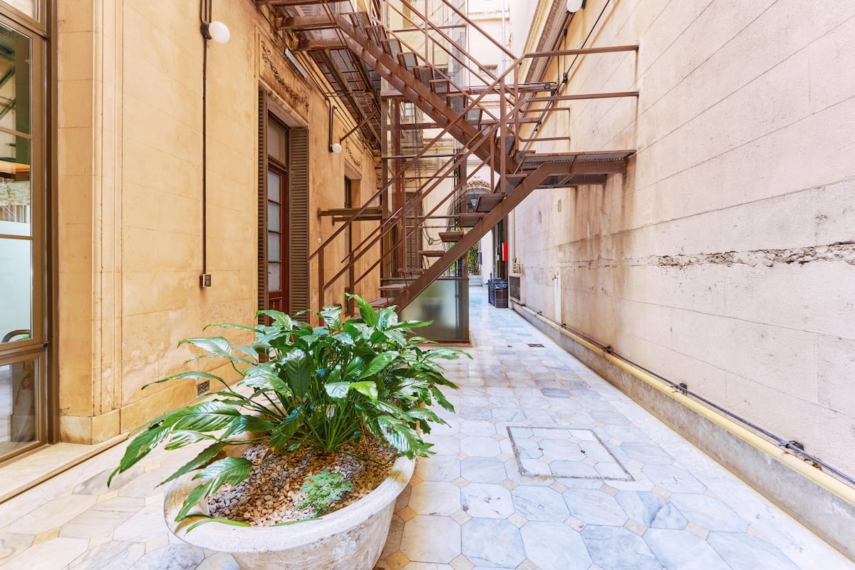 Loft em edifício reformado, de 1900, em San Telmo, com dois andares. No primeiro piso, cozinha no acesso, área com piso de madeira, sala com poltrona, plantas e televisão, além de varanda ampla com vista para o jardim. A escada espiral leva ao segundo piso, onde ficam área de escritório, banheiro e quarto. O apartamento funciona como unidade inteira.