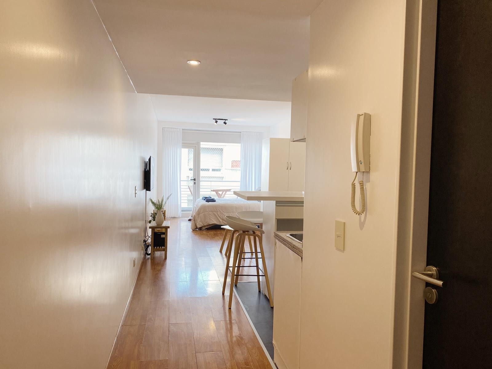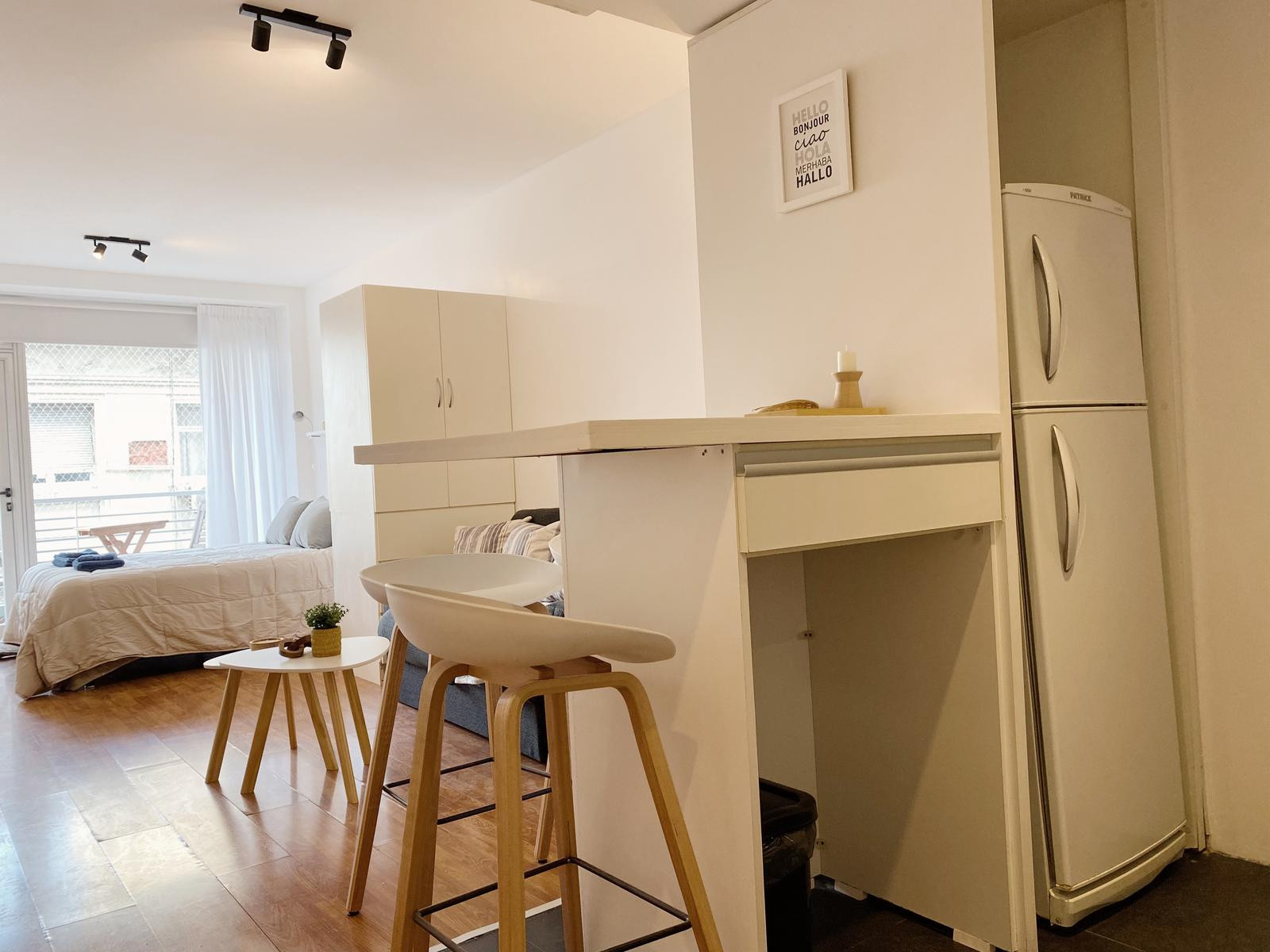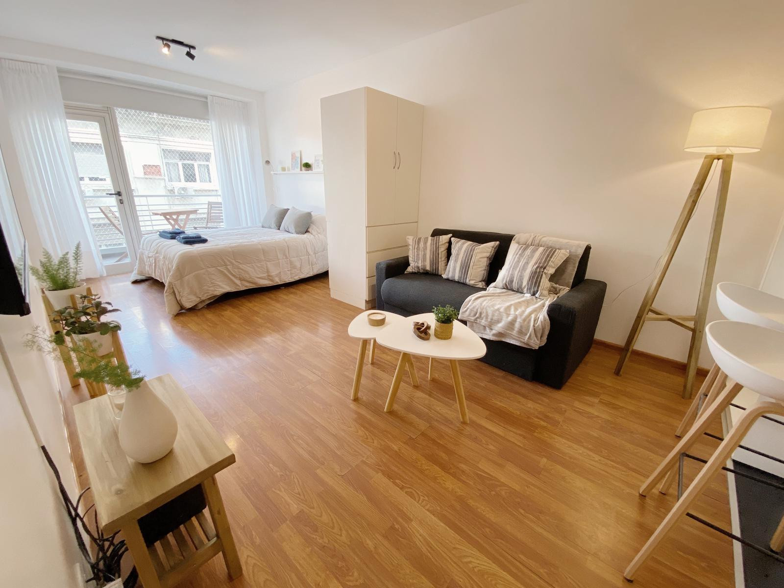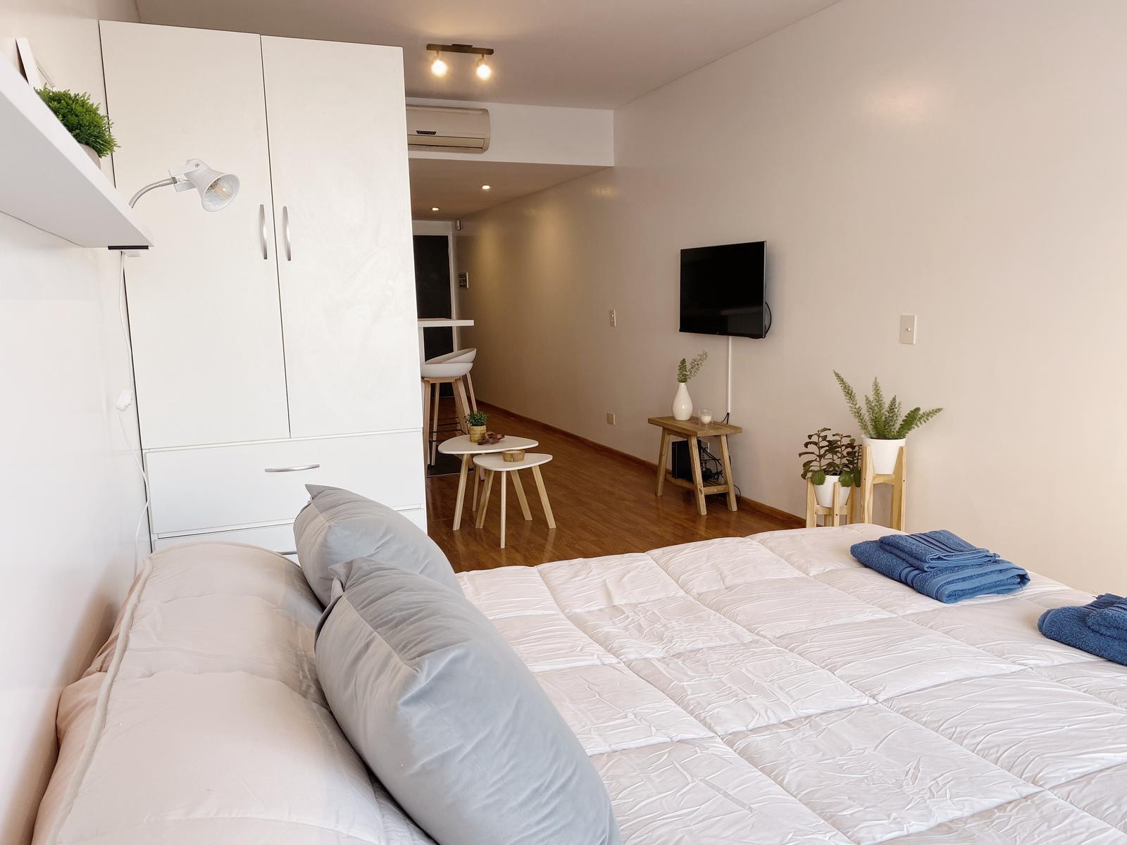 Departamento de 1 dormitorio amoblado, ubicado sobre la calle Chacabuco, a 3 cuadras de Av. 9 de Julio. Cuenta con balcón con sillas y mesita, gran ventanal y aire acondicionado frío/calor. La cocina está equipada con cafetera, tostadora, pava eléctrica, microondas, heladera con freezer, horno y hornallas eléctricas; incluye vajilla y utensillos. La sala tiene sillón cama para un tercer huésped y Smart TV. El contrato requiere pago mensual de luz, ABL, Internet y expensas, cuyo total informado e