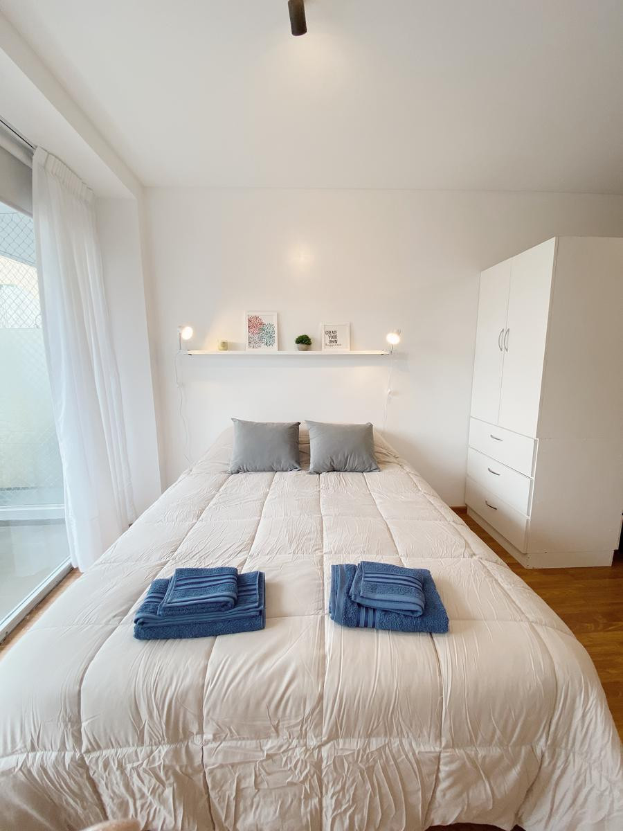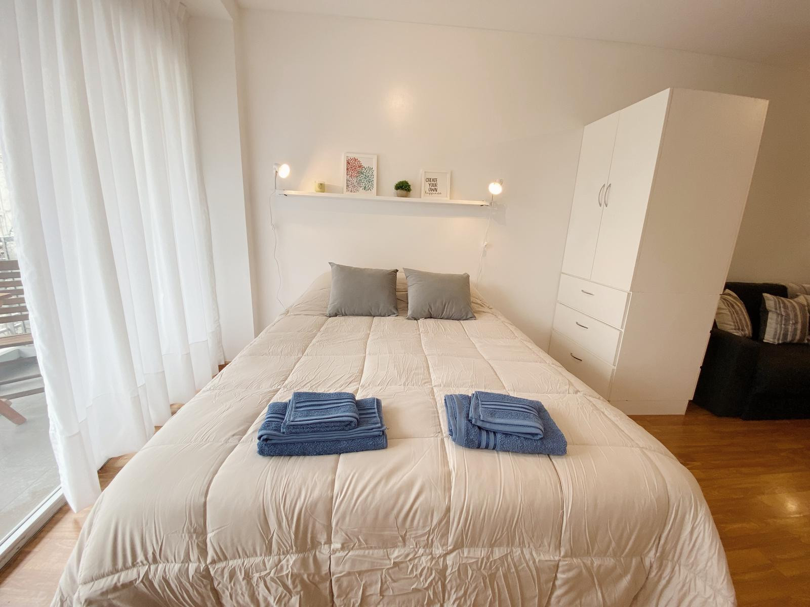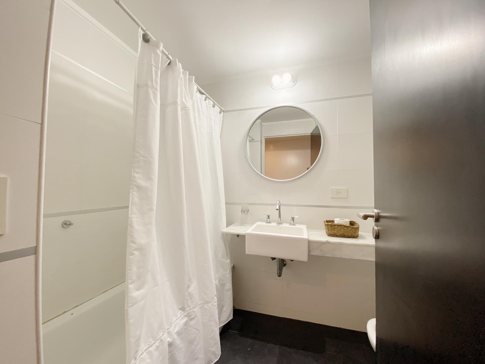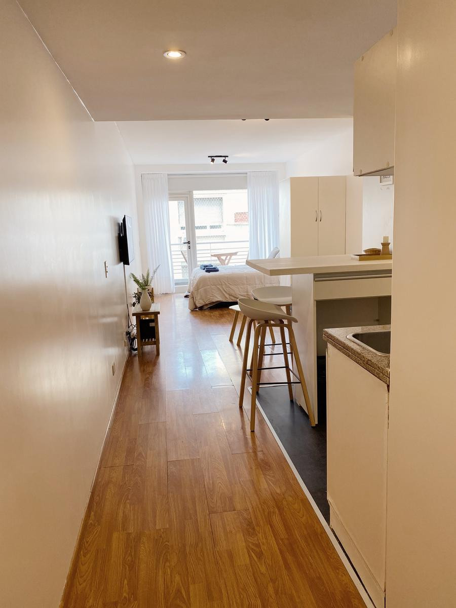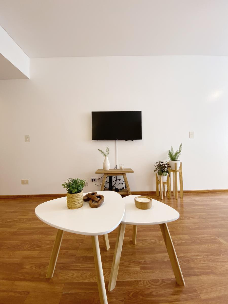 Departamento de 1 dormitorio amoblado, ubicado sobre la calle Chacabuco, a 3 cuadras de Av. 9 de Julio. Cuenta con balcón con sillas y mesita, gran ventanal y aire acondicionado frío/calor. La cocina está equipada con cafetera, tostadora, pava eléctrica, microondas, heladera con freezer, horno y hornallas eléctricas; incluye vajilla y utensillos. La sala tiene sillón cama para un tercer huésped y Smart TV. El contrato requiere pago mensual de luz, ABL, Internet y expensas, cuyo total informado e