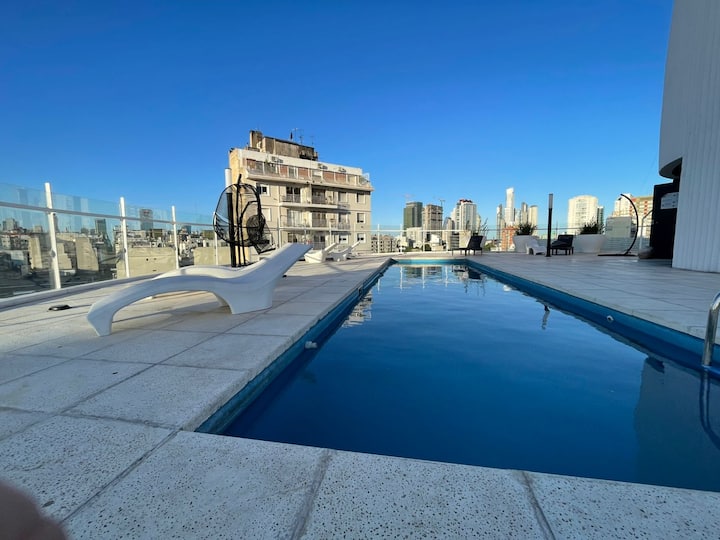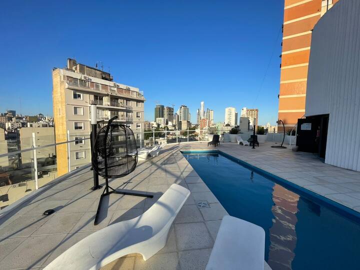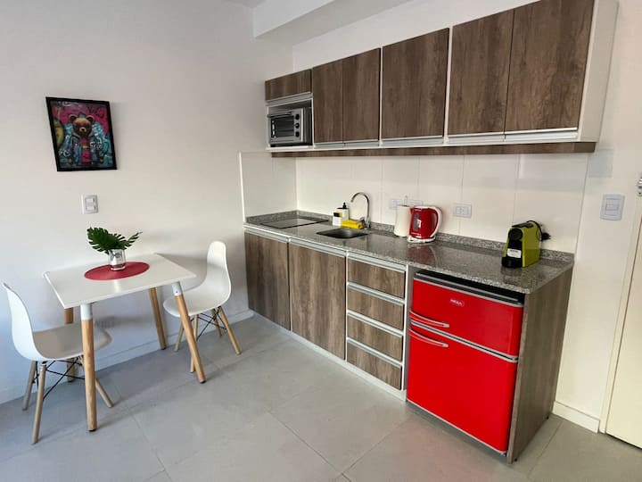 Departamento en San Telmo. La publicación indica que se ubica a 15 minutos a pie de Puerto Madero. Se menciona además que está a 6 cuadras de la UADE y de Av. 9 de Julio, con accesos mediante colectivos y subtes.