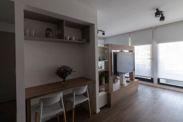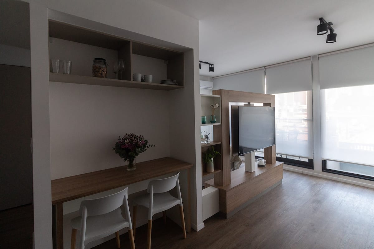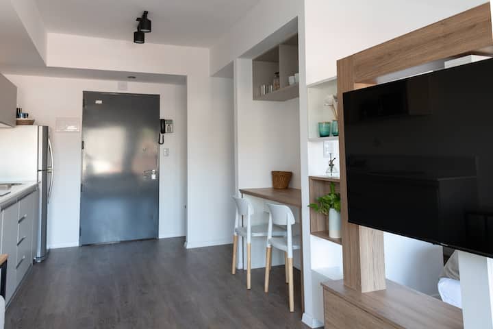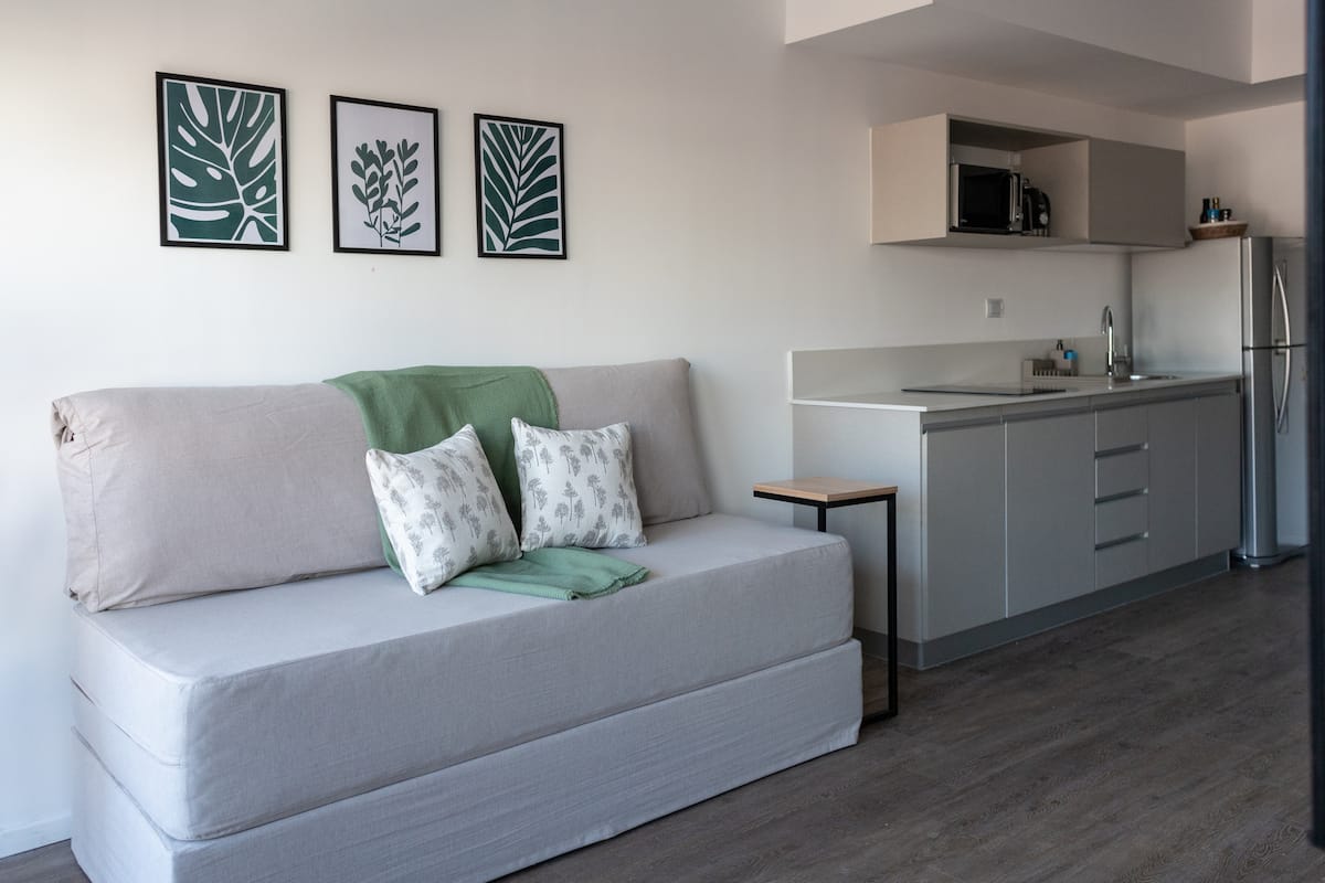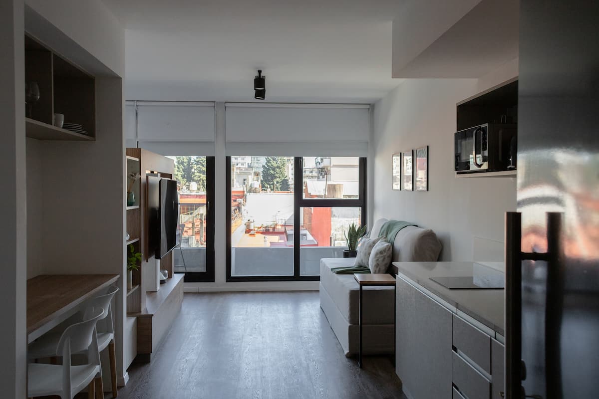 Departamento en San Telmo. El aviso no especifica m², piso, orientación ni estado de amueblamiento. Se menciona un diseño minimalista y una capacidad para 3 personas.