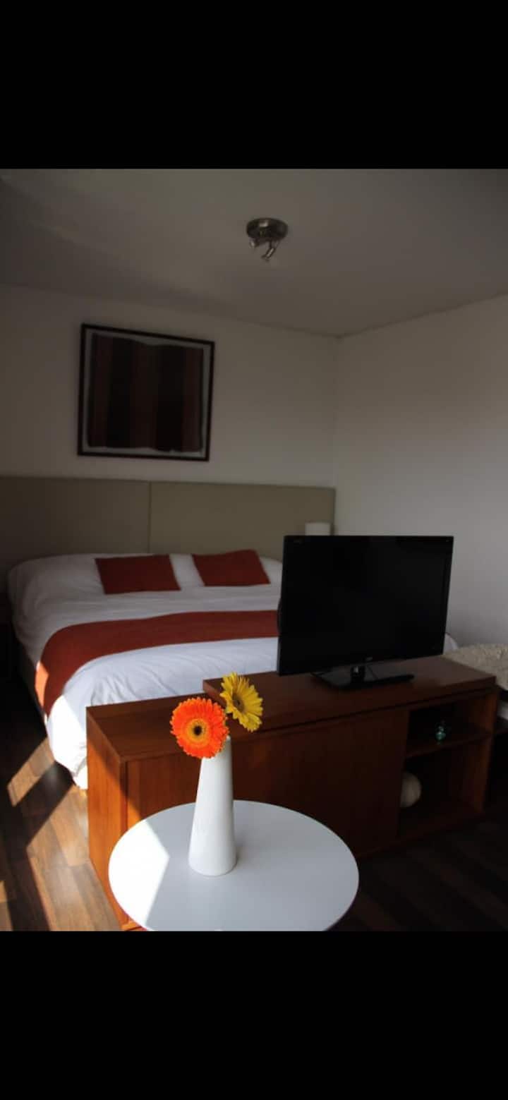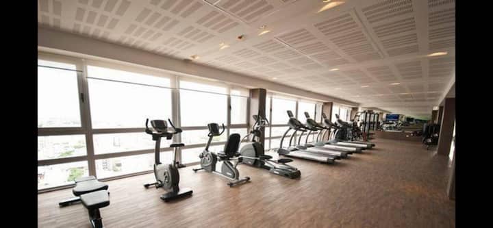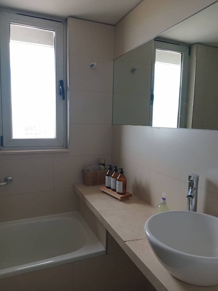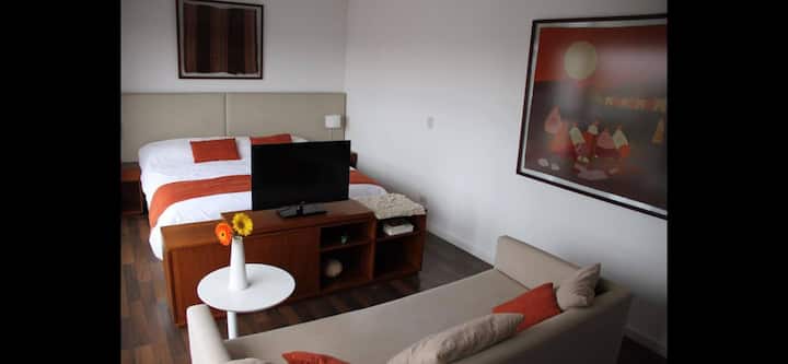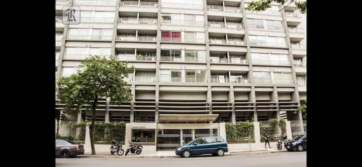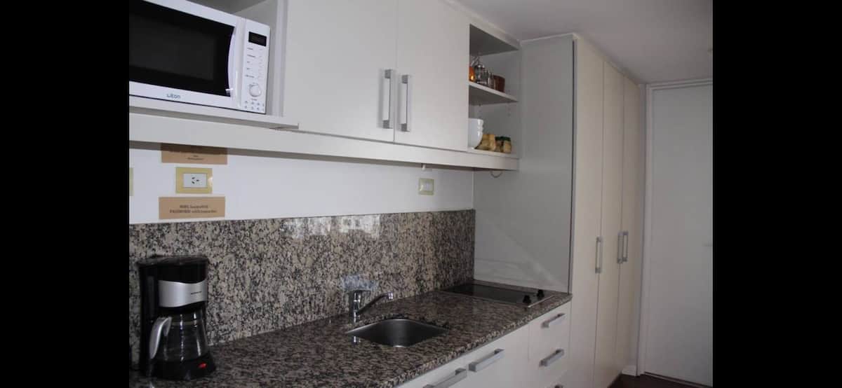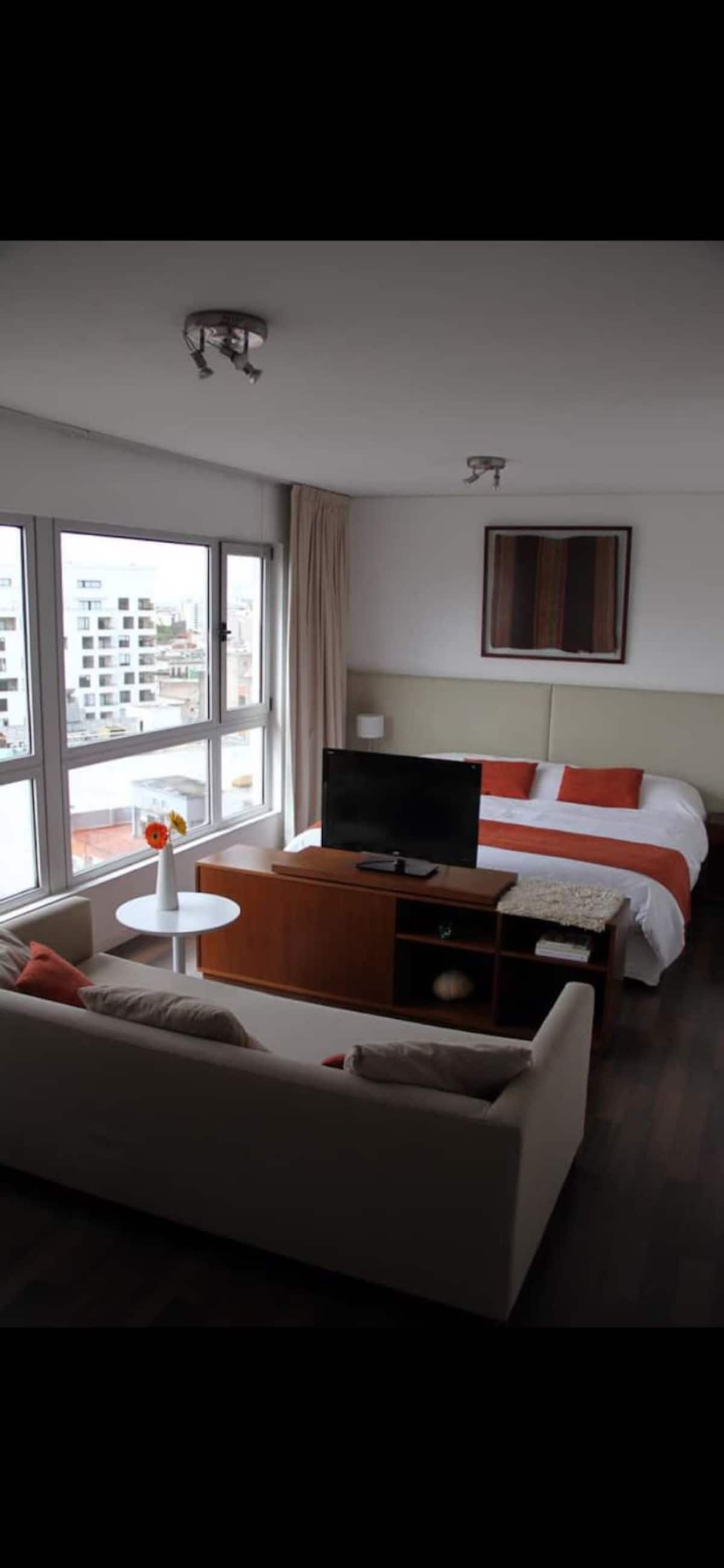 Monoambiente en Torre Quartier San Telmo, amoblado y equipado. Cuenta con aire acondicionado frío/calor, cable y WiFi de 50 MB. El edificio dispone de pileta climatizada, jacuzzi, sauna, gimnasio, laundry y áreas de trabajo. La disponibilidad de pileta climatizada, sauna y spa es para mayores de 16 años, y los niños mayores de 3 años sin pañal pueden ingresar a la pileta exterior.