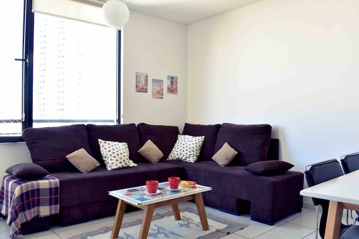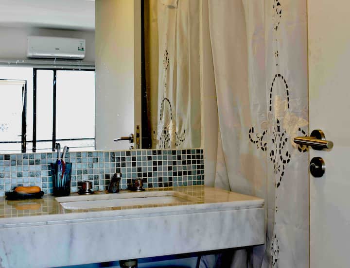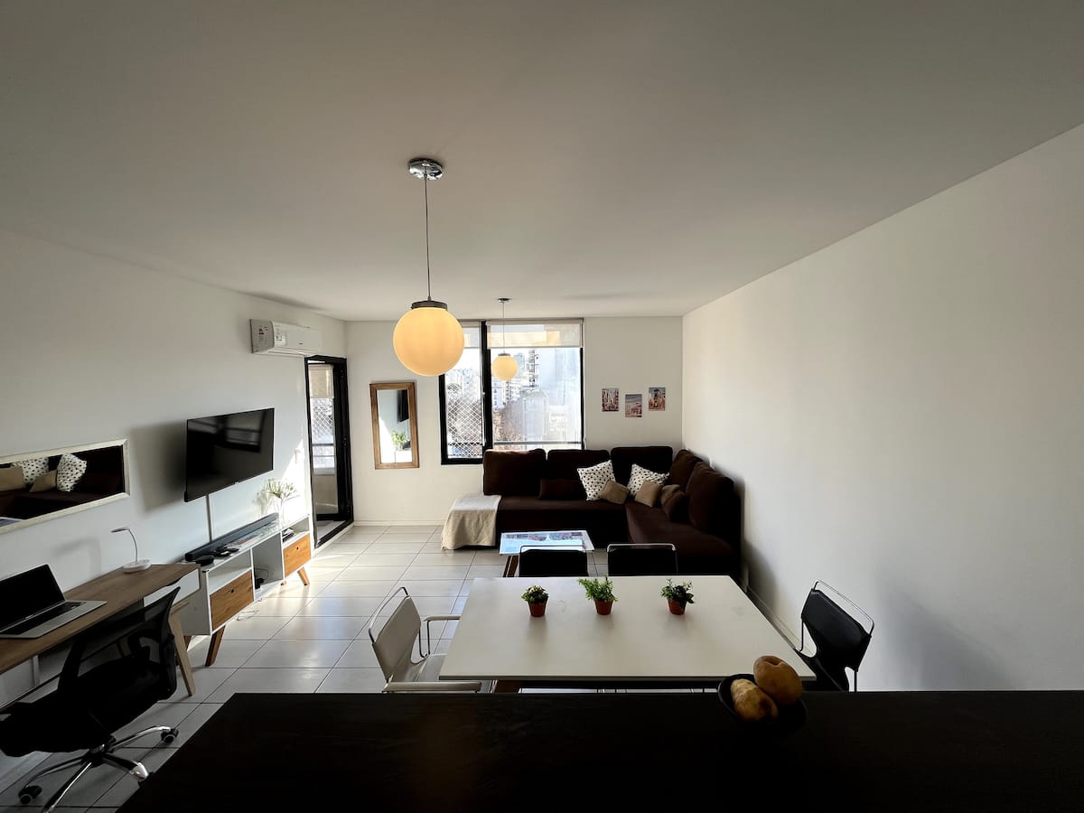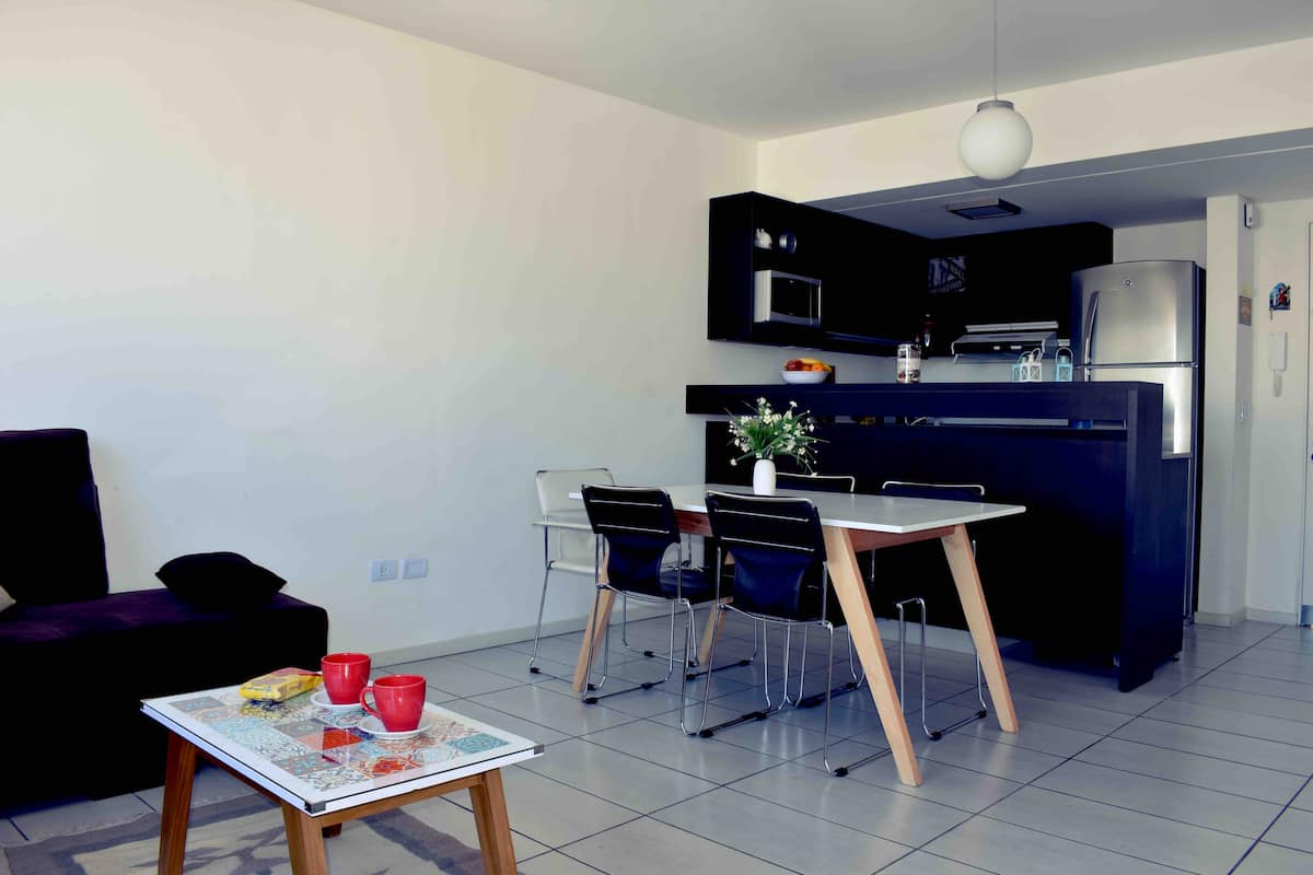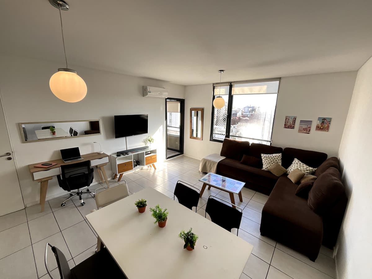 Apartamento de 1 quarto em San Telmo. O imóvel conta com cozinha totalmente equipada, ar-condicionado e Wi-Fi, além de Netflix. Há piscina no prédio.