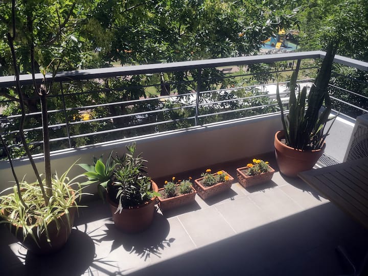 Departamento en San Telmo con balcón terraza frente a Parque Lezama. El texto no especifica m², planta ni estado de equipamiento. Está ubicado frente a Parque Lezama y a pocos metros de la zona gastronómica de Av. Caseros, con bares y restaurantes, y a algunas cuadras de la Feria de San Telmo.