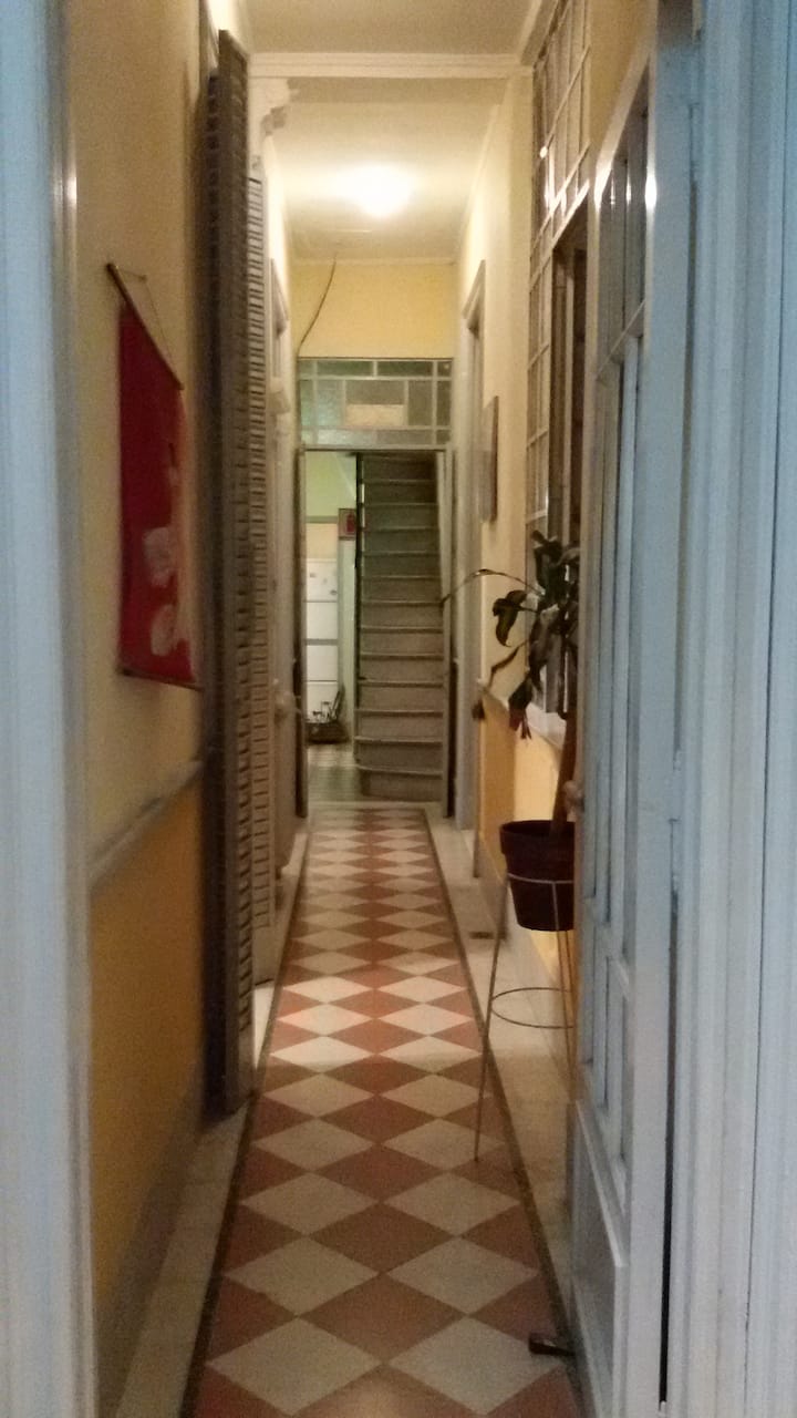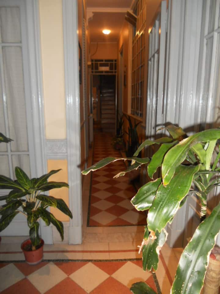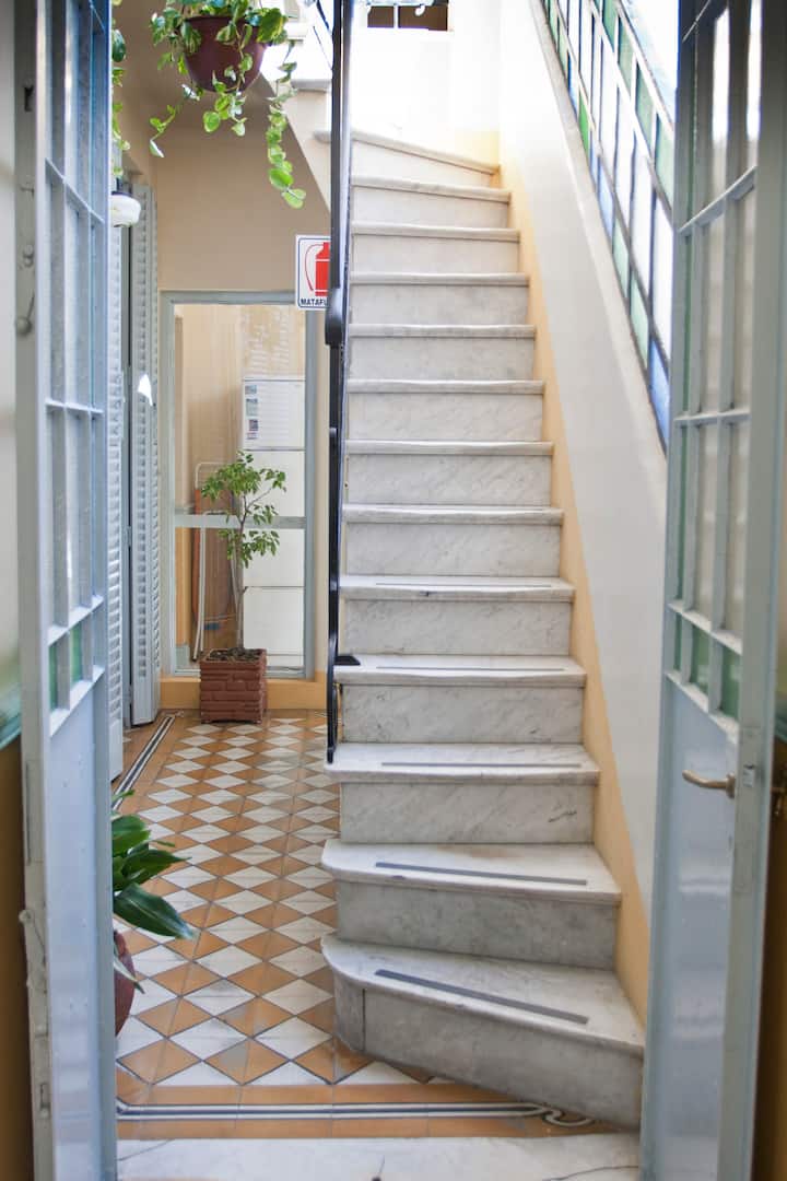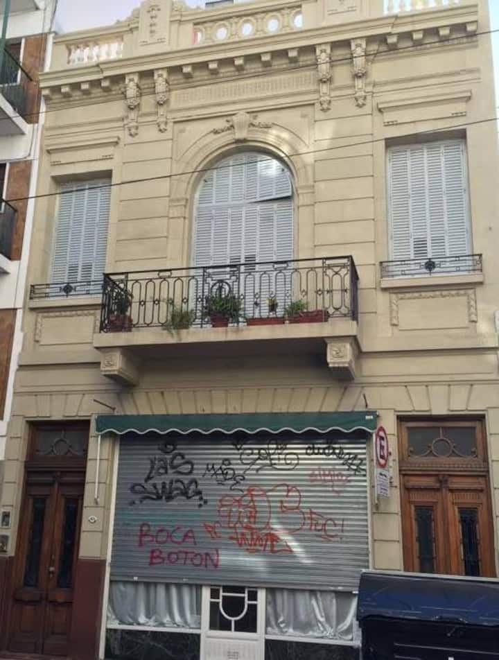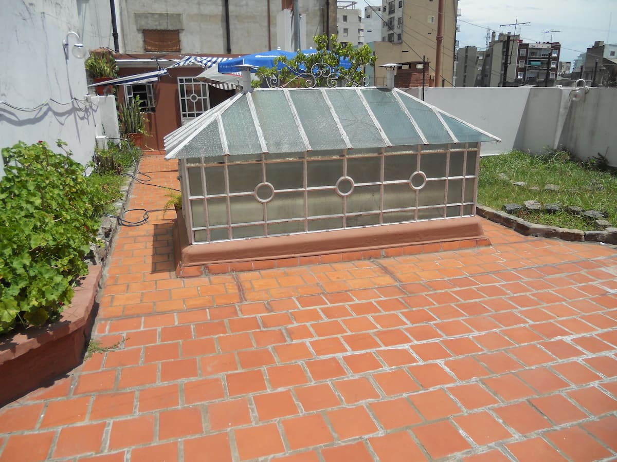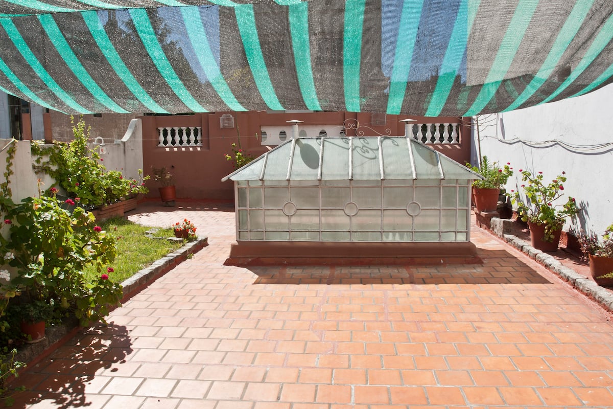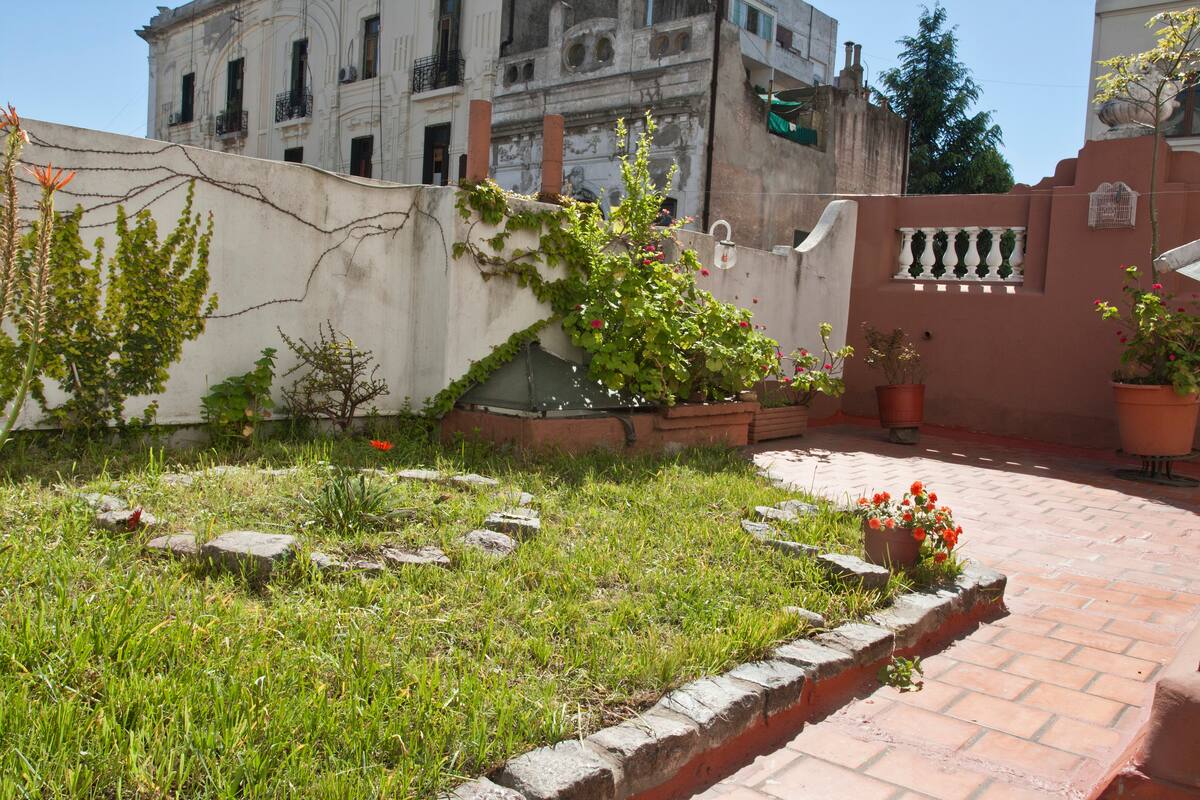 Casa en el centro histórico de Buenos Aires, en el barrio de San Telmo. Data de 1919 y conserva ornamentación original, con un vitral en el techo del acceso para aportar luz. Está distribuida en 2 plantas, con varias habitaciones y 3 baños. Cuenta con una terraza de 140 m² con jardín, parrilla y un horno para preparar pizza o pan.