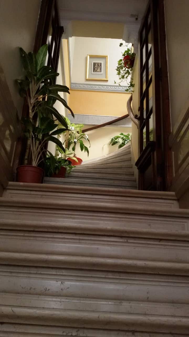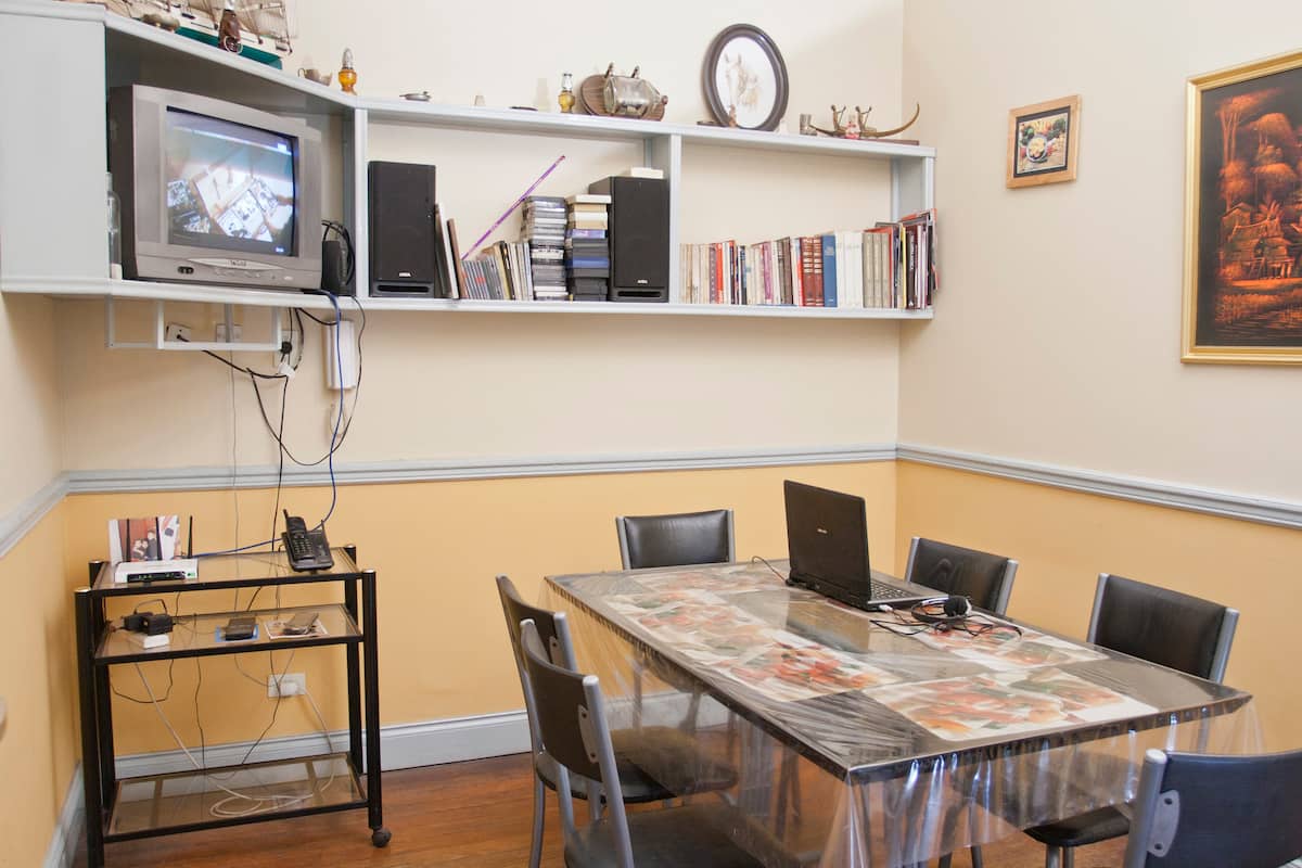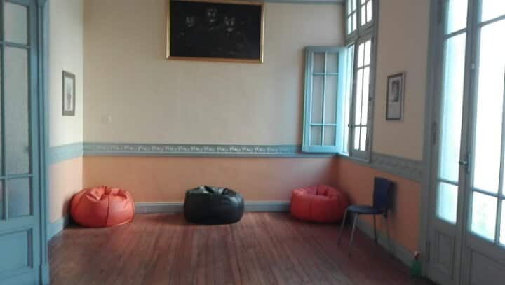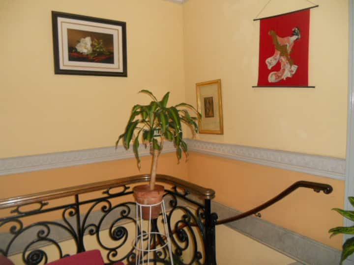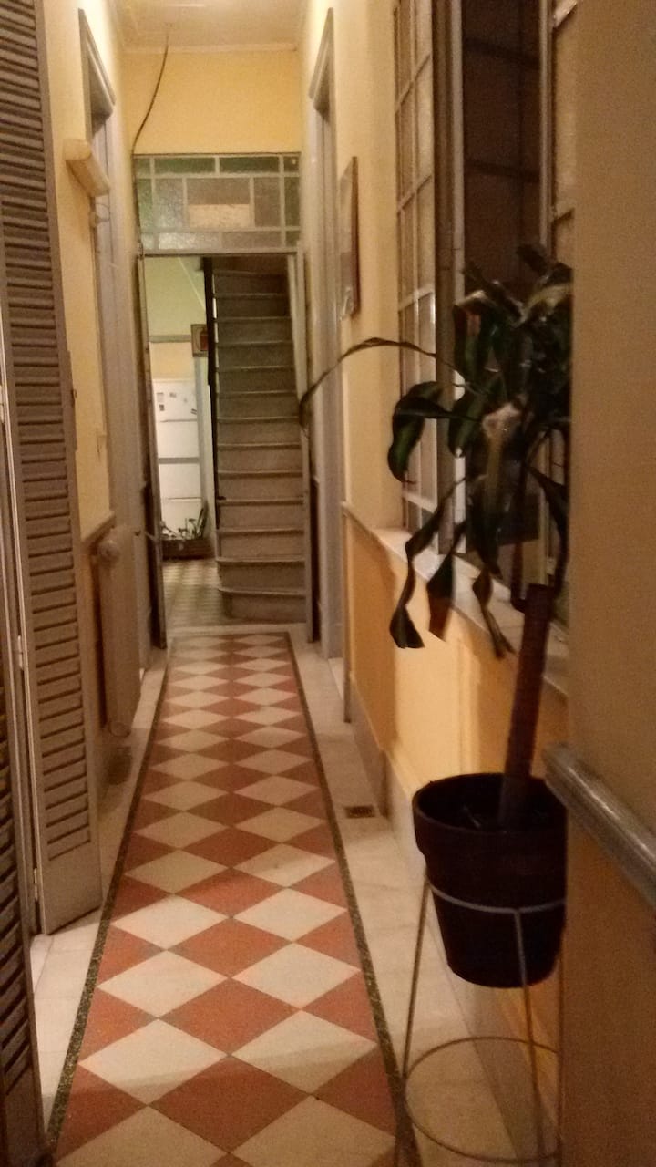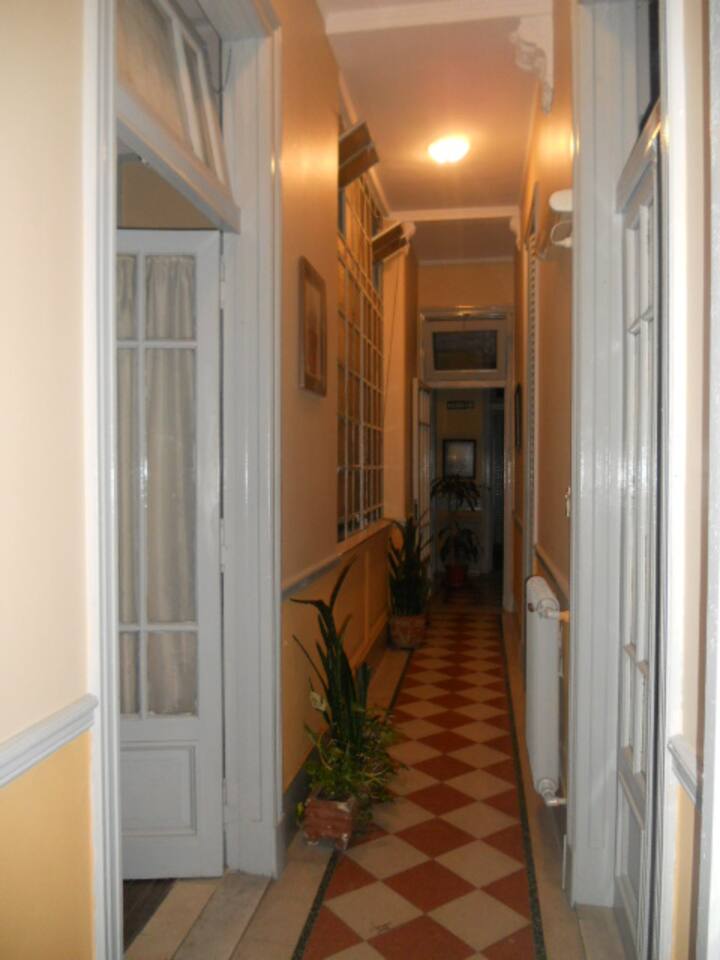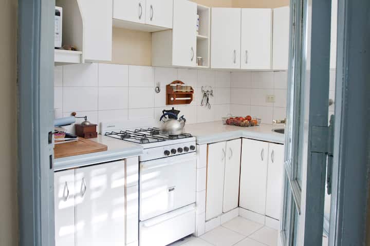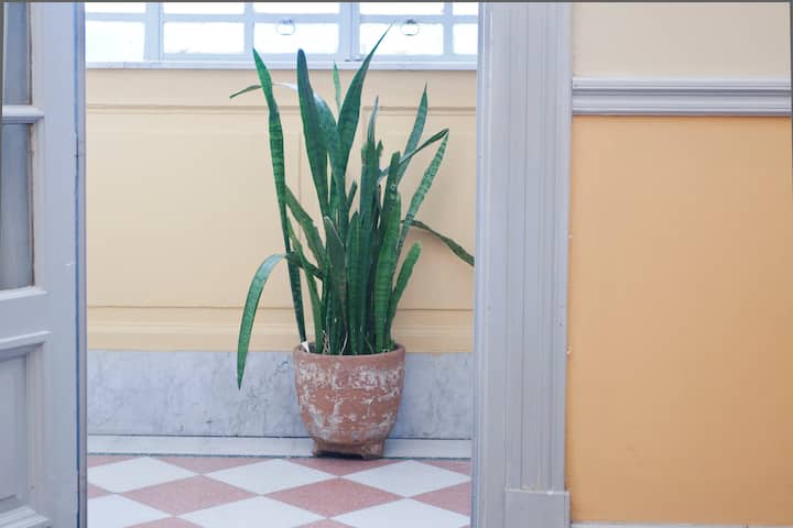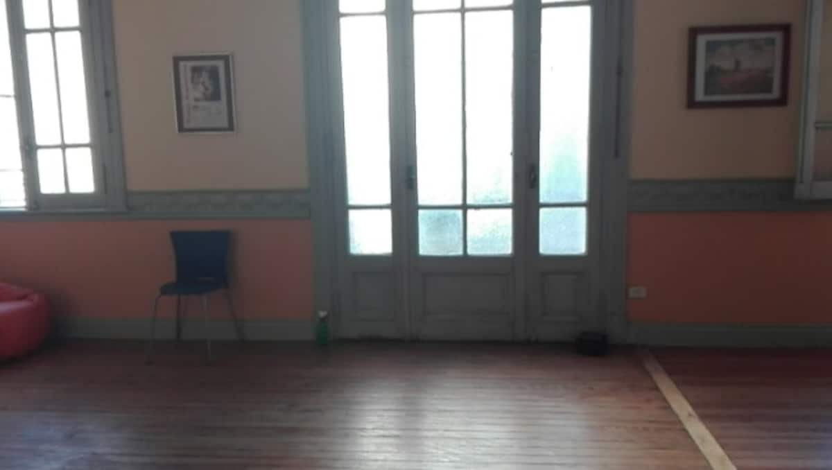 Casa en el centro histórico de Buenos Aires, en el barrio de San Telmo. Data de 1919 y conserva ornamentación original, con un vitral en el techo del acceso para aportar luz. Está distribuida en 2 plantas, con varias habitaciones y 3 baños. Cuenta con una terraza de 140 m² con jardín, parrilla y un horno para preparar pizza o pan.