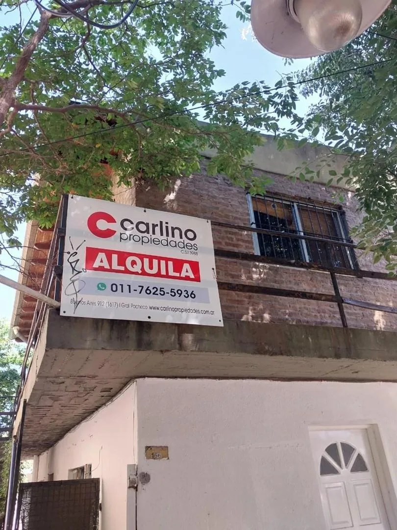 Departamento de 2 ambientes en planta alta, en General Pacheco. Cuenta con 1 dormitorio, cocina-comedor integrada y 1 baño completo. Dispone de patio y balcón. Tiene energía eléctrica y gas envasado.
