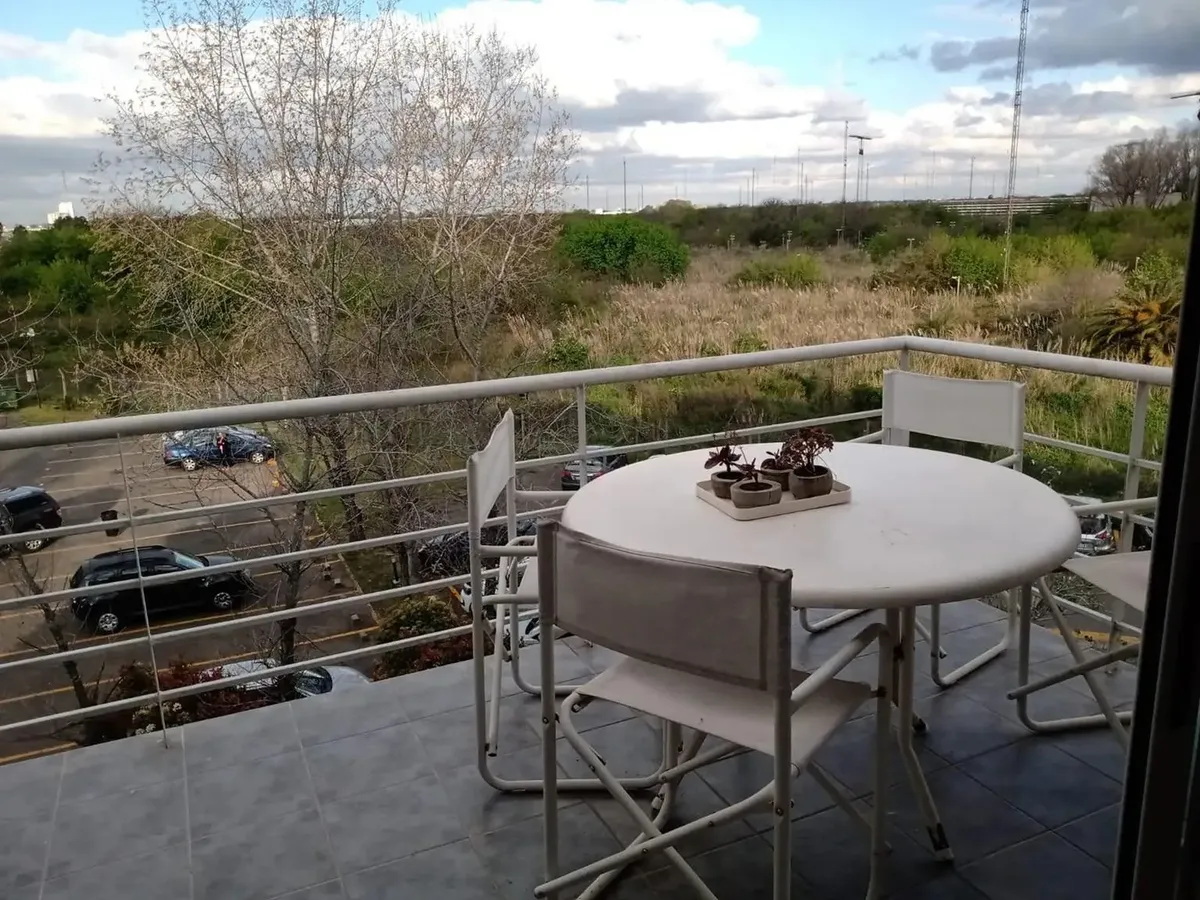 Departamento de 2 ambientes en dúplex, totalmente amoblado, con vista abierta. La cocina está integrada al living comedor mediante una barra desayunadora y tiene salida a un doble balcón aterrazado con parrilla. En el bajo escalera cuenta con baulera o despensa. En la planta alta se encuentra el dormitorio, con somier que permite disponerlo como 2 camas, y balcón. La calefacción es por radiadores con caldera individual y la refrigeración por AA. Incluye cochera descubierta y laundry en el edific