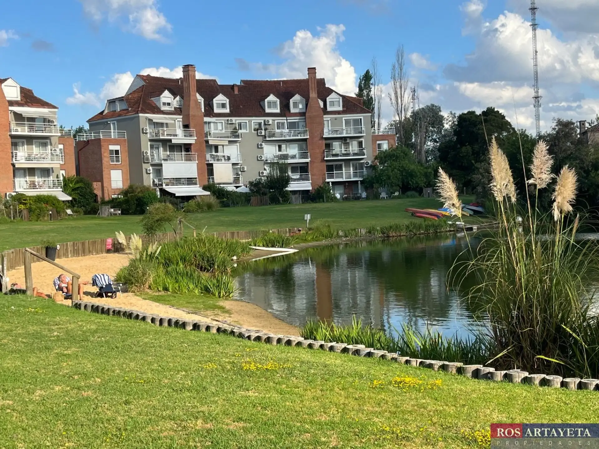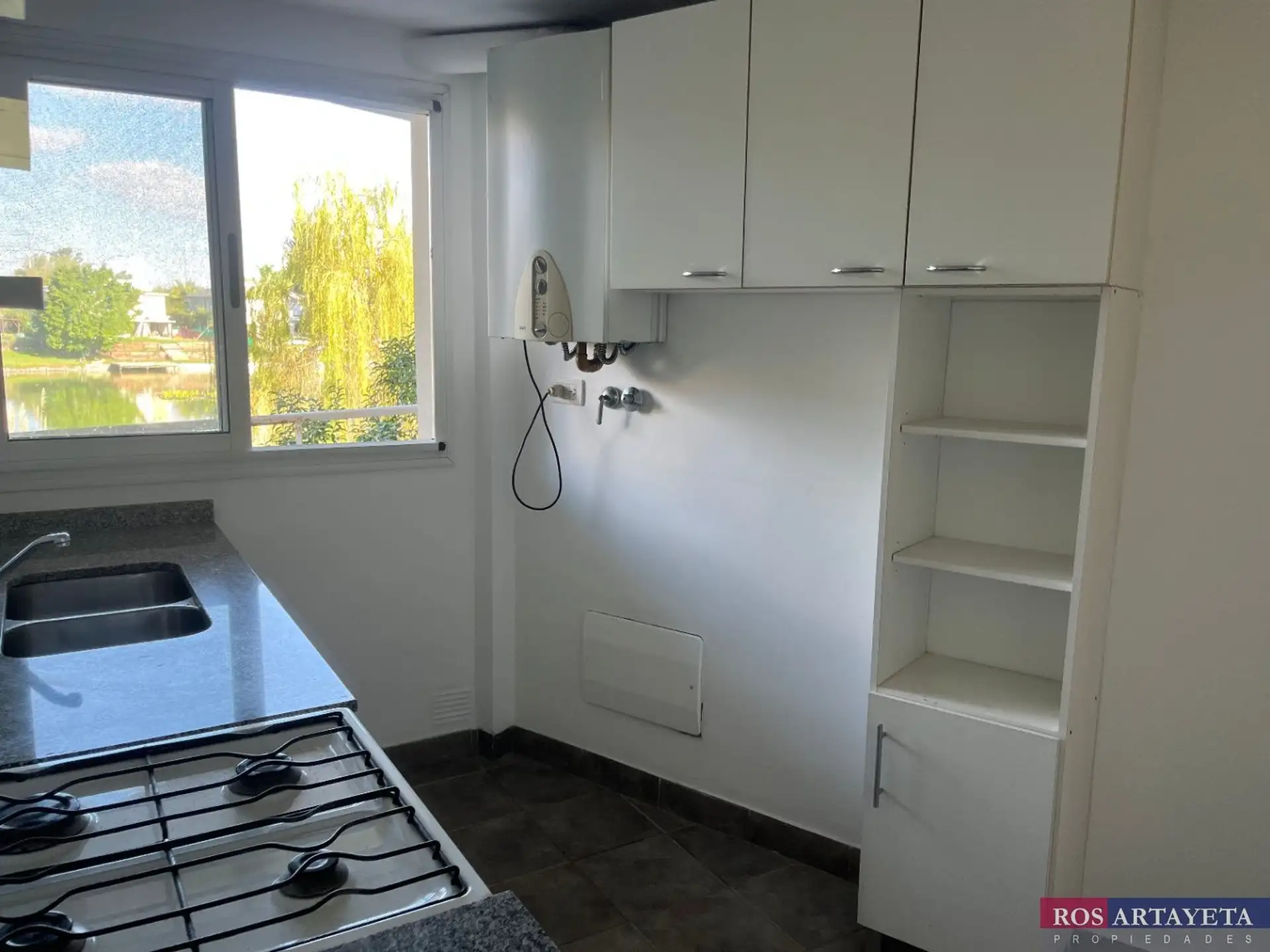 Departamento en Barrio Cerrado Santa Bárbara, anexo Laguna 1, en Benavídez. Cuenta con 1 dormitorio, living comedor con puerta ventana y balcón corrido con parrilla, cocina independiente y baño completo. Tiene vista a la laguna. Incluye caldera dual para agua caliente y calefacción por radiadores, aire acondicionado en el living y ascensor. La unidad posee cochera doble descubierta. El consorcio informa que el balcón y su baranda están siendo pintados a cargo de la administración. Entre las amen