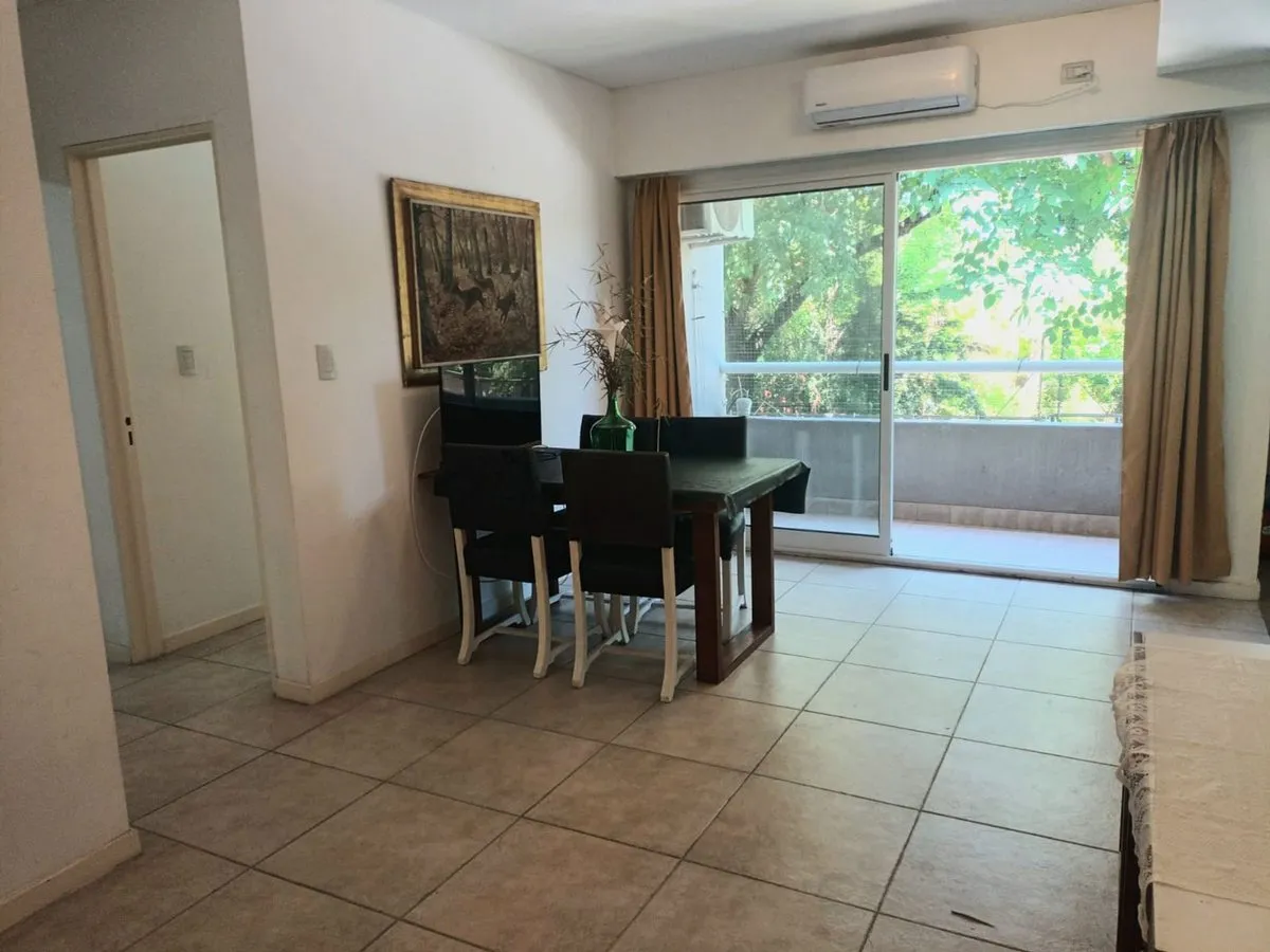 Departamento de 2 ambientes en La Mora, Tigre, en primer piso con vista abierta a espacio verde. Incluye wifi, agua y gas en el valor de alquiler. Cuenta con dormitorio con TV y placard espejado, cocina equipada y baño completo, más aire acondicionado. El complejo ofrece pileta olímpica, jardín con parrillas de uso libre de lunes a lunes, juego para niños y SUM, con seguridad 24 hs.