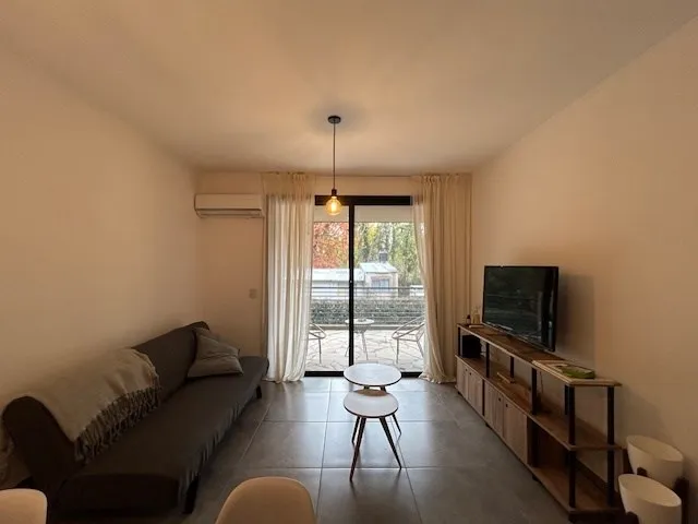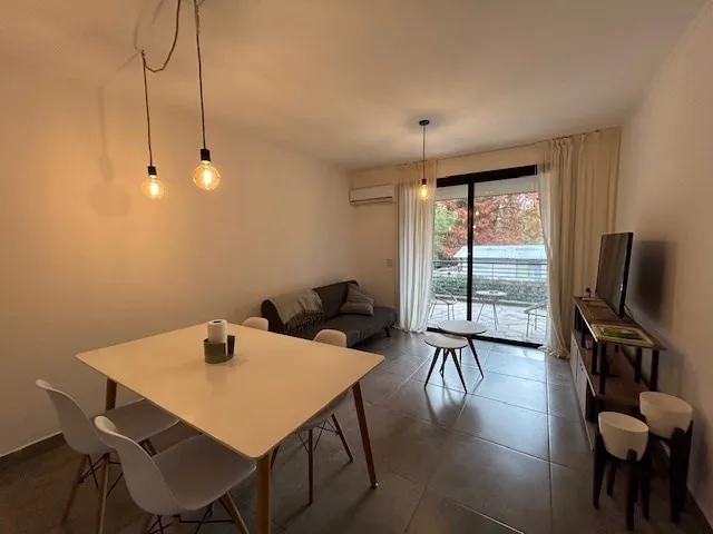 Departamento de 2 ambientes en Tigre, zona de Rincón de Milberg, con vista al río Reconquista. Cuenta con living-comedor y cocina, dormitorio con placard y cortinas black out, baño con bañadera, y balcón terraza con parrilla. Incluye anafe y horno eléctrico, cochera descubierta y pileta en el edificio, junto al río. El alquiler se ofrece por 24 meses o por 1 año; el valor es de $800.000 más expensas y servicio municipal.