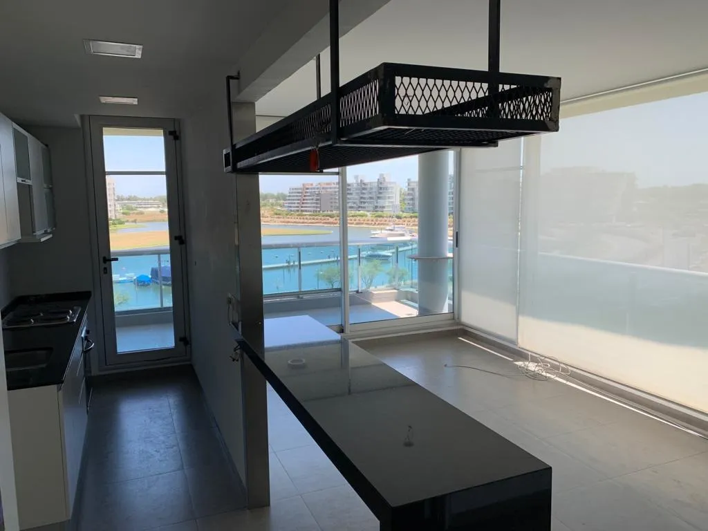 Departamento de 2 ambientes en el edificio Delta 8, en Puerto Escondido (Nordelta), con doble frente y vista al río. Está en el 3er piso, con 2 baños y orientación de esquina. Se alquila con opción de venta; disponible a partir del 1ro de abril. Aptro profesional.