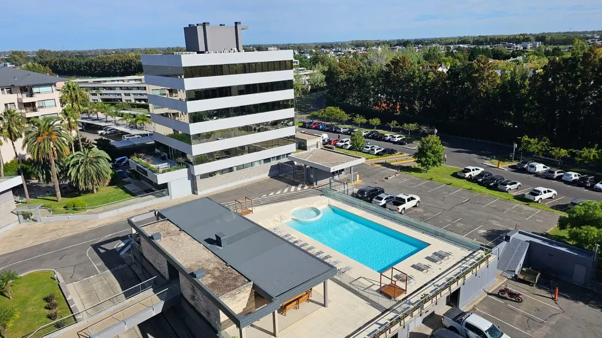 Departamento dúplex de 2 ambientes en complejo Vista Bahía, en la bahía de Nordelta. En PB cuenta con hall, cocina americana, living, dormitorio con baño en suite y toilette; ambos ambientes tienen vista a la piscina del complejo. En PA tiene terraza con jacuzzi, parrilla, mesada con bacha y conexión para lavarropas. Se entrega amoblado y totalmente equipado: cortinas black out, iluminación LED, aire acondicionado en ambos ambientes, heladera y microondas. Incluye calefacción por piso radiante c