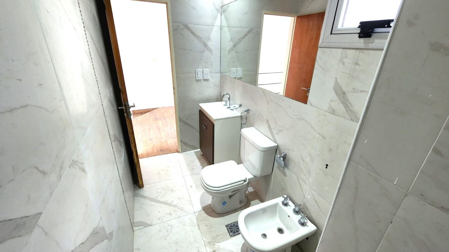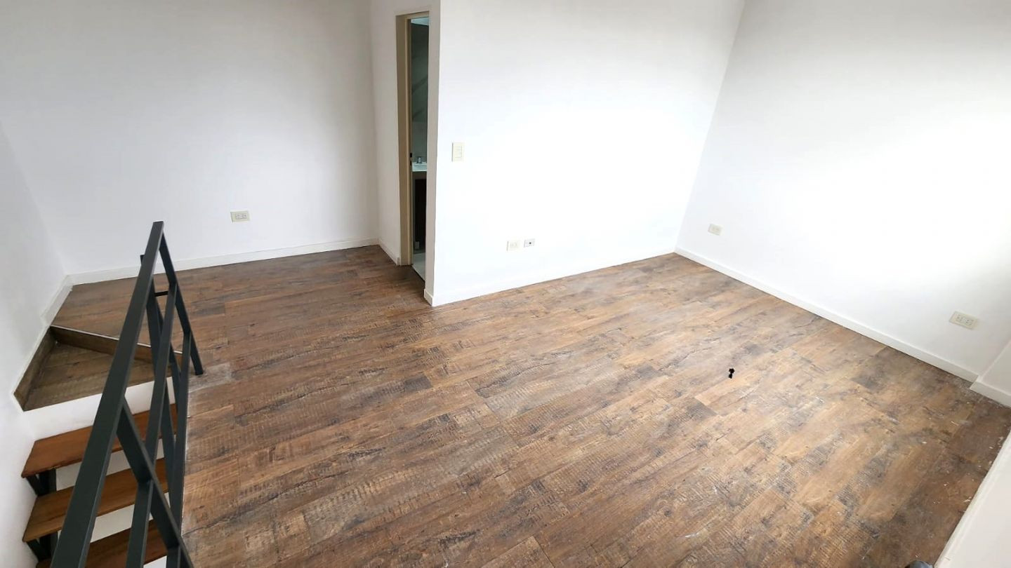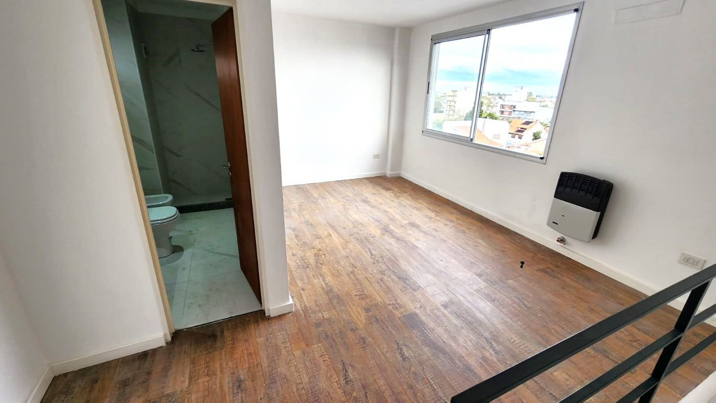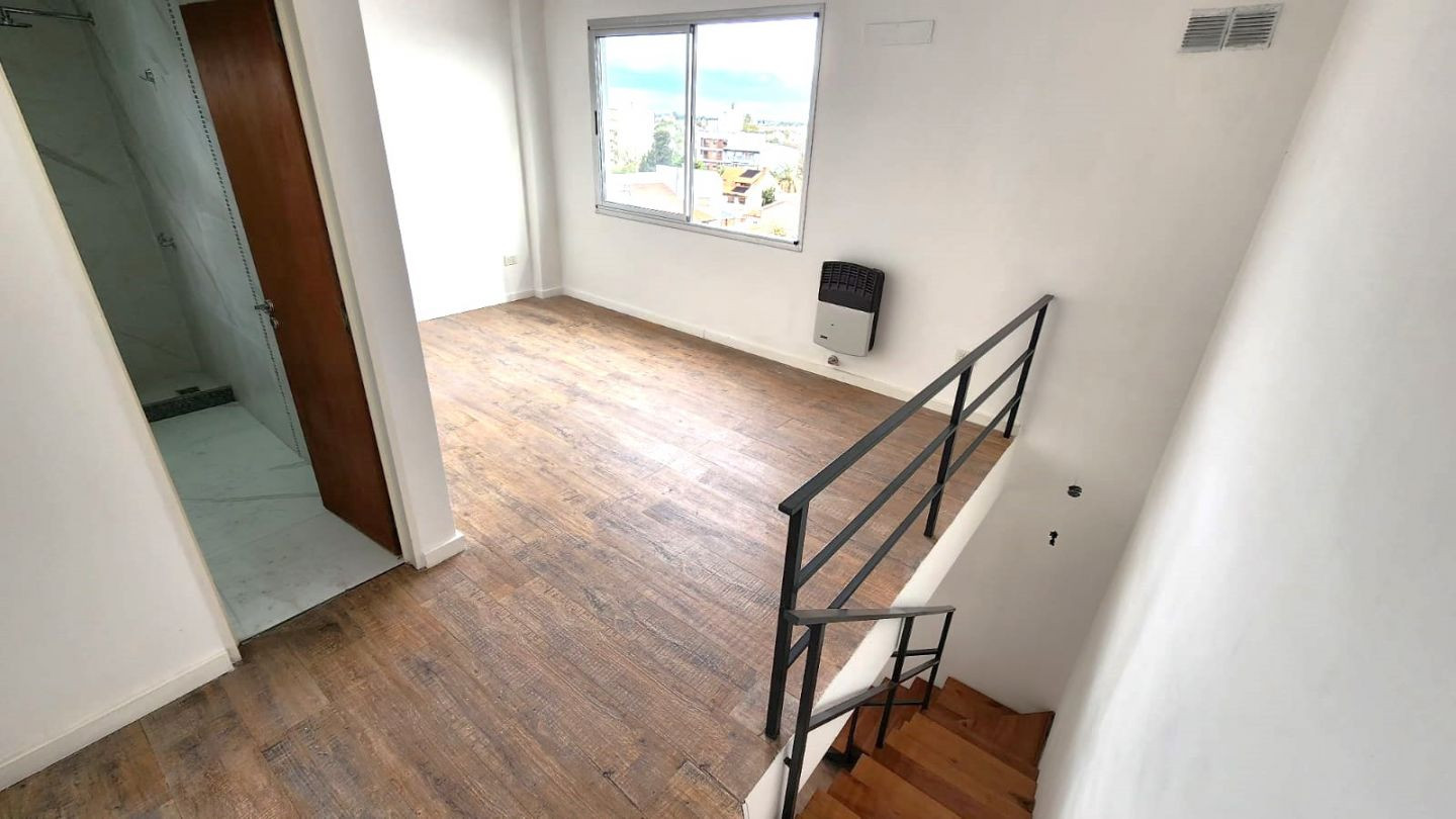 Departamento tipo dúplex de 2 ambientes a estrenar al frente, con balcón. En la 1º planta cuenta con estar comedor con cocina con mesada de granito y mueble bajo mesada, salida a balcón con lavadero y toilette de recepción con ventana al exterior. En la 2º planta tiene dormitorio con baño en suite y ventilación al exterior, con pisos de porcelanato simil madera. Incluye estufa de tiro balanceado en todos los ambientes. Las griferías son FV, los artefactos son Ferrum y las aberturas son de alumin